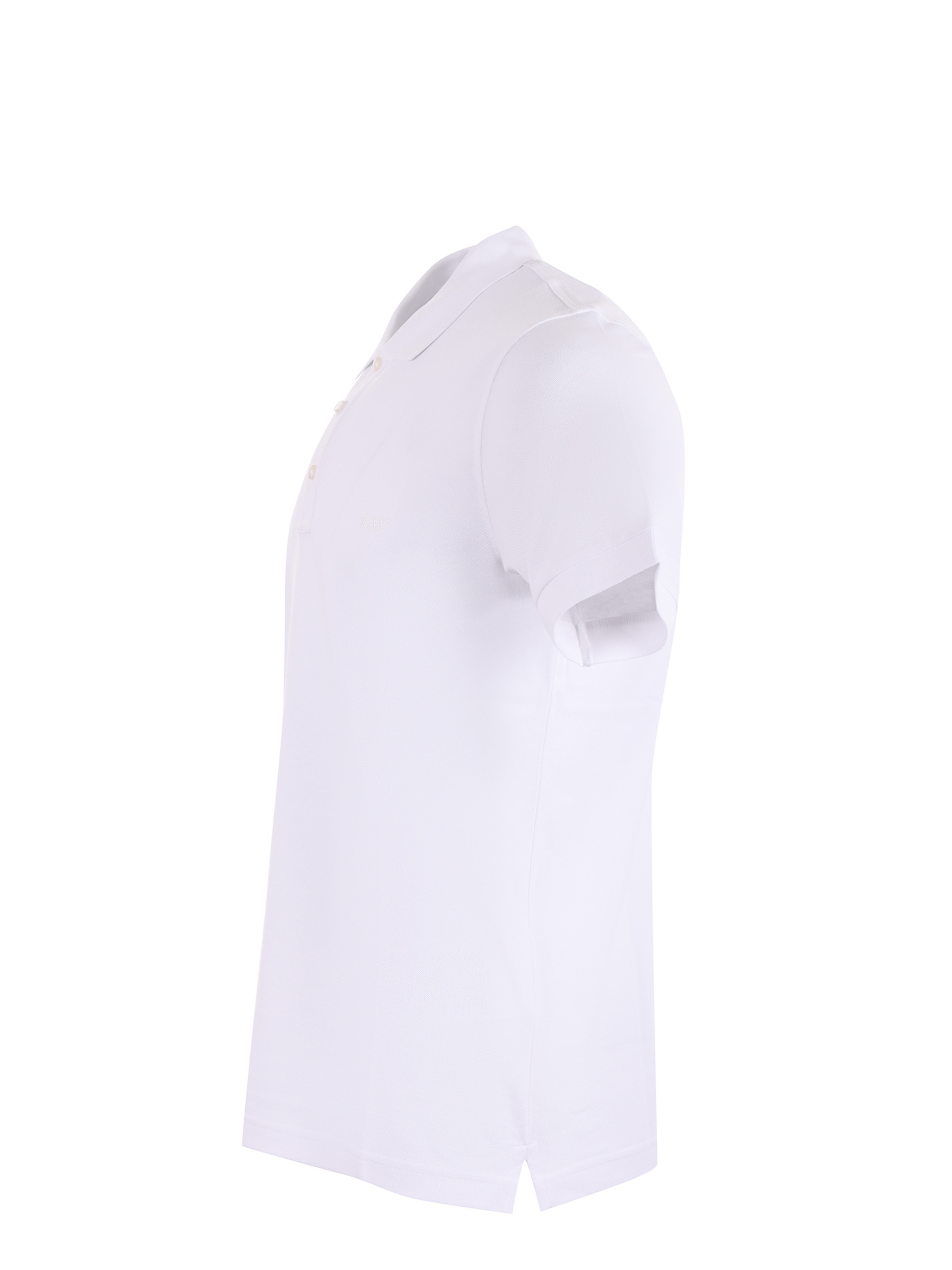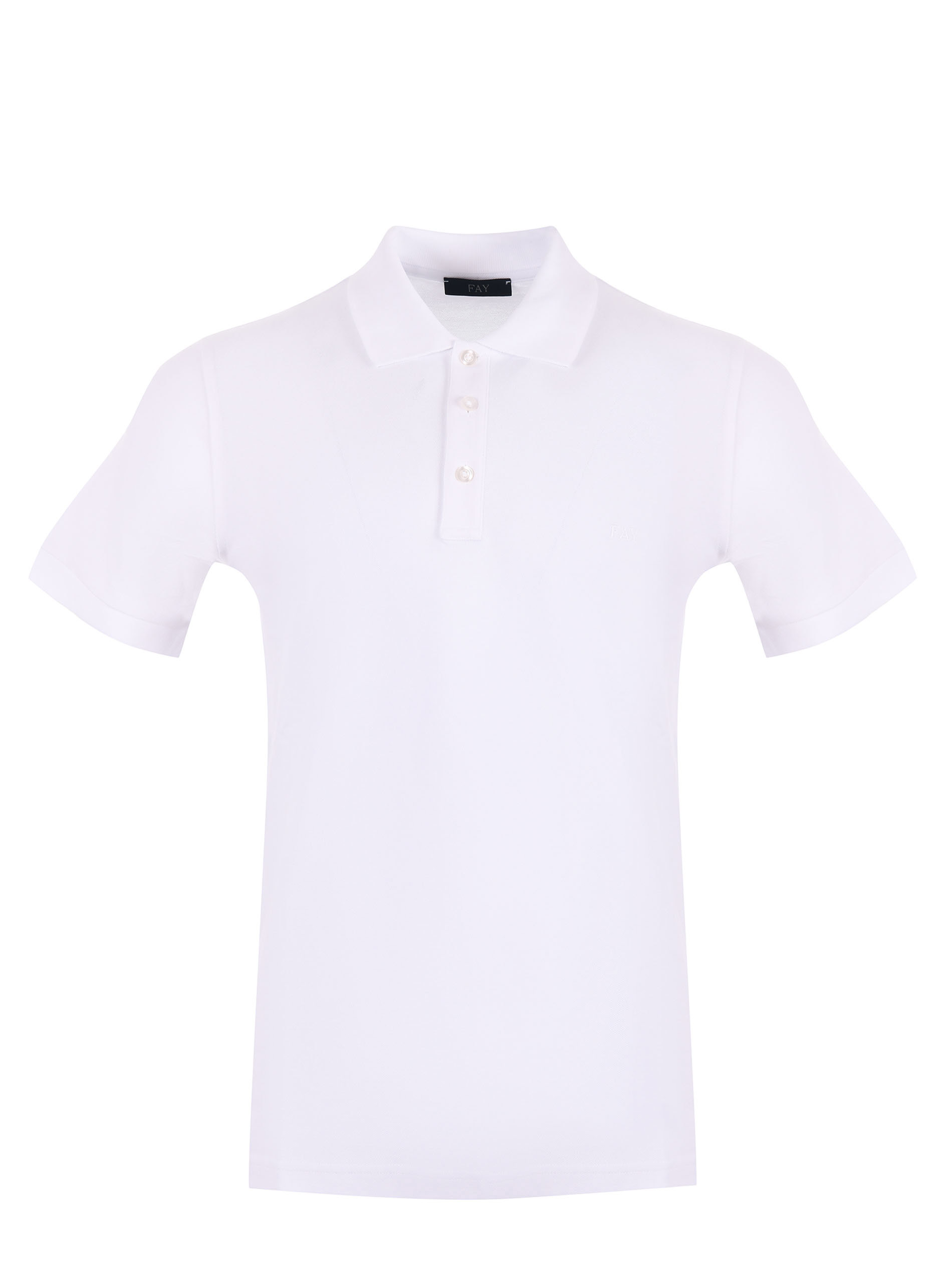 Polo Fay in piquet stretch Bianco. Colletto a costine. Logo frontale ricamato. Chiusura con 3 bottoni. Manica corta. Spacchetti al fondo.