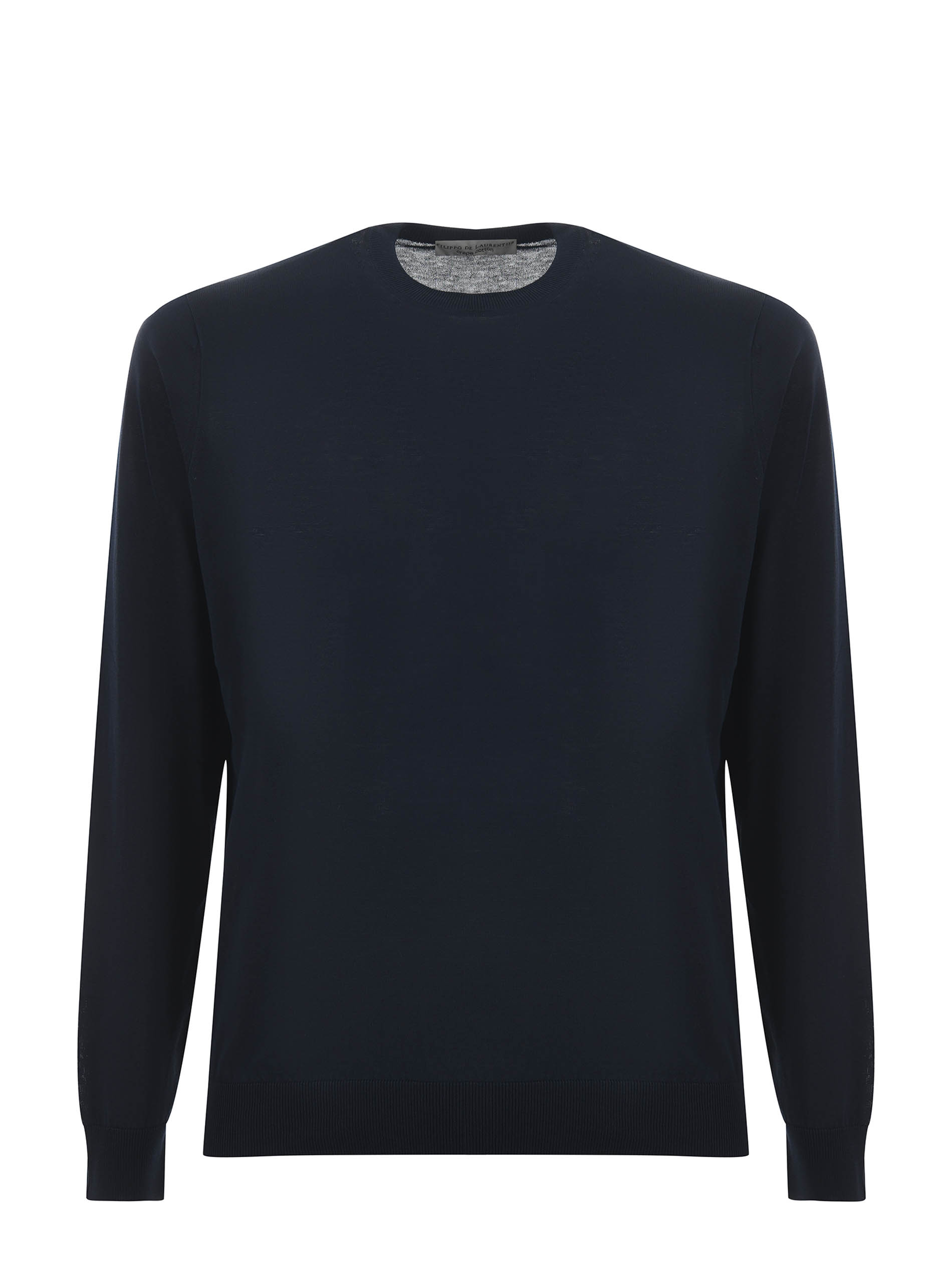 Maglia Filippo de Laurentiis in crepe di cotone Blu notte. Girocollo a costine. Maniche lunghe. Polsi e fondo a costine.