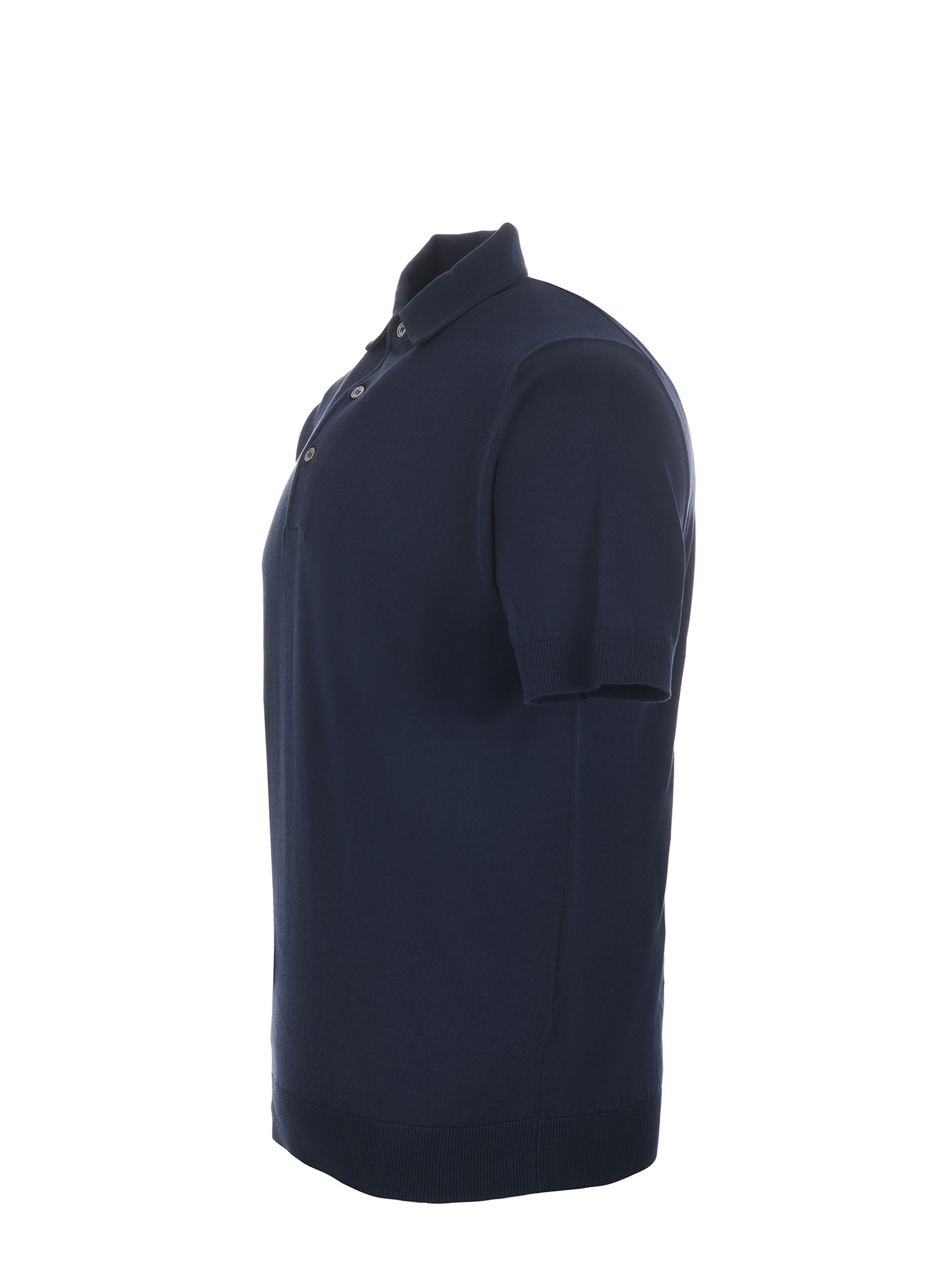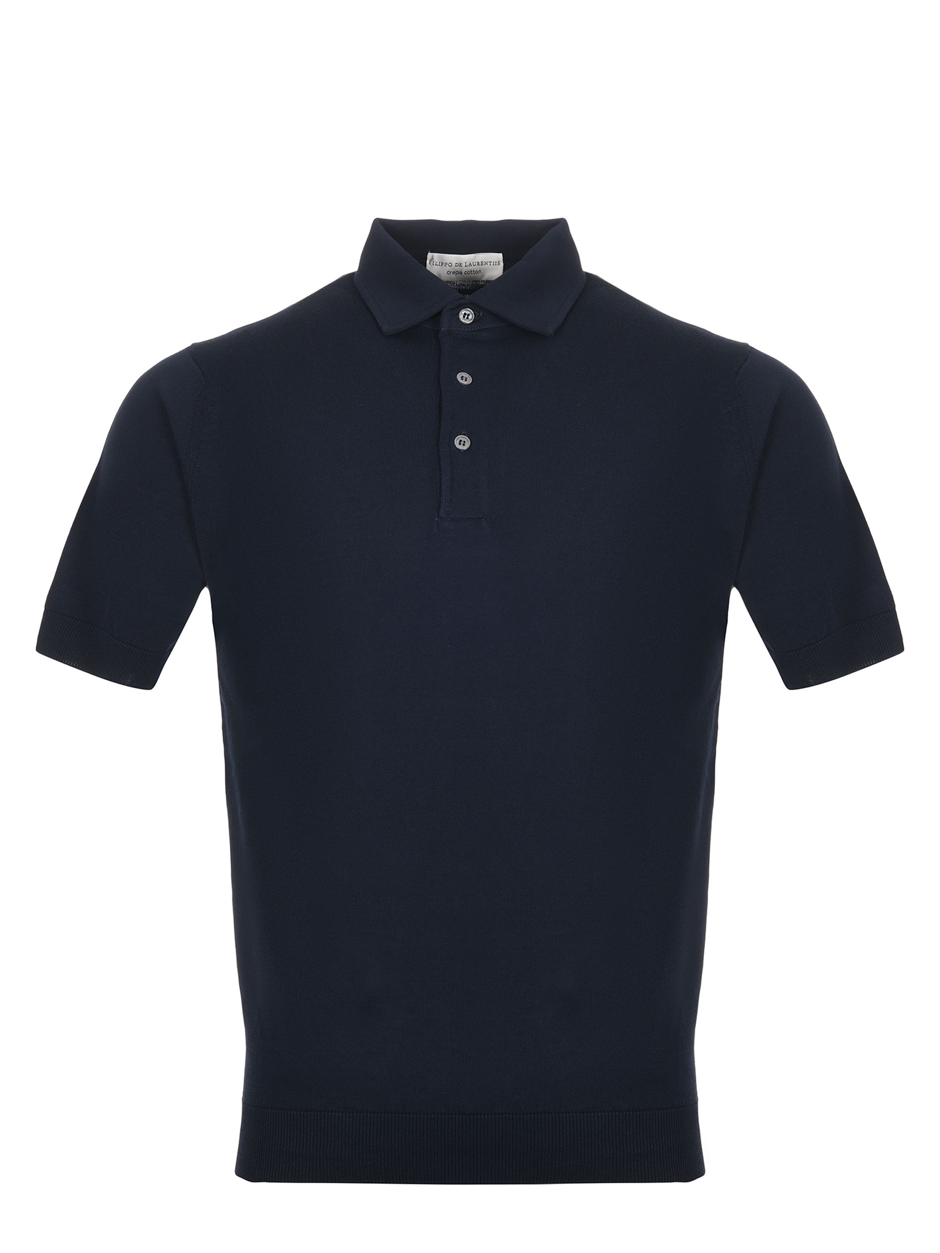 Polo Filippo De Laurentiis in filo di cotone Blu notte. Colletto classico a costine. Chiusura con 3 bottoni. Manica corta. Fondo a costine.