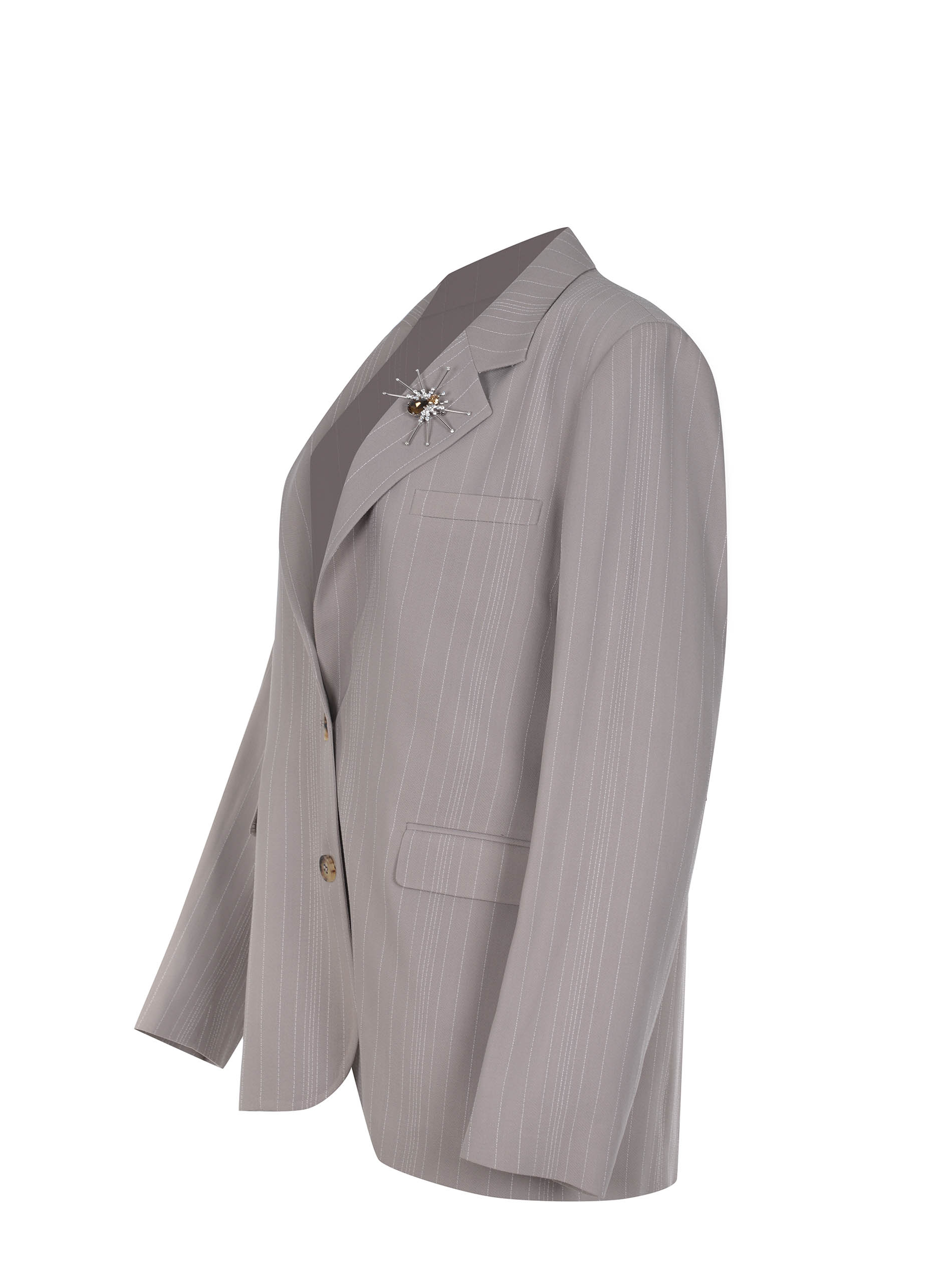 Spilla applicata sul petto removibile.