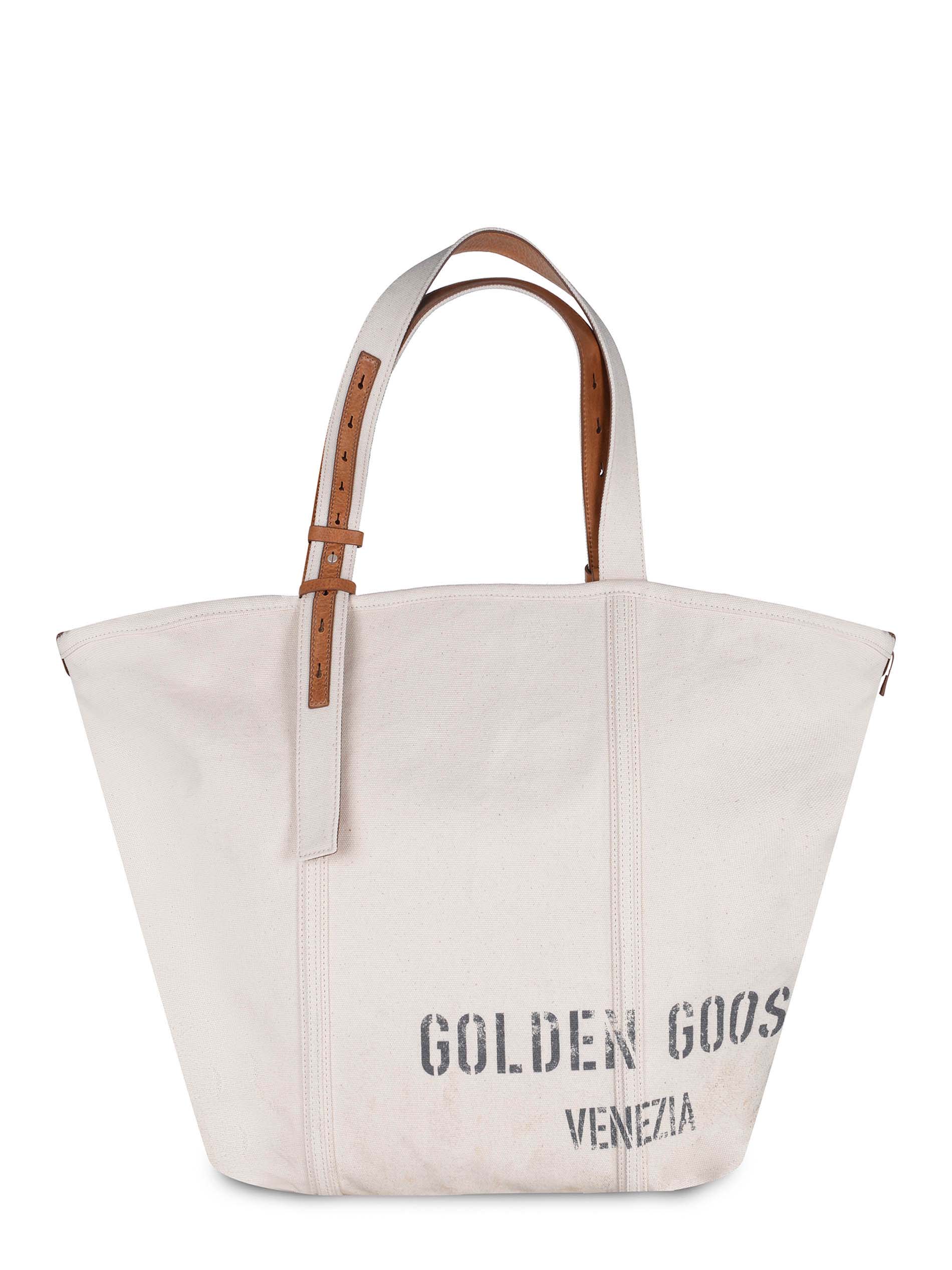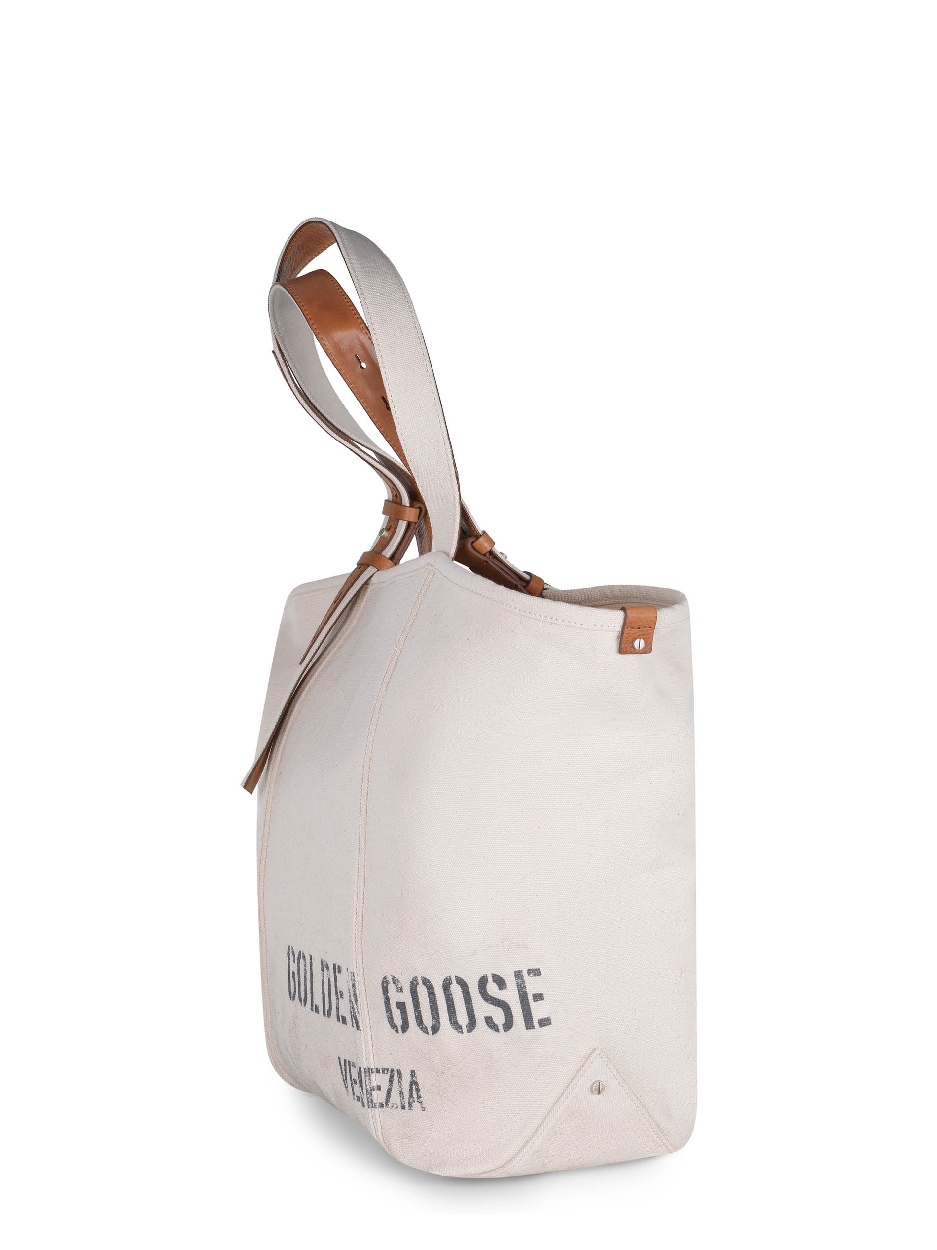 Shopper Golden Goose realizzata in tessuto di colore Avorio.