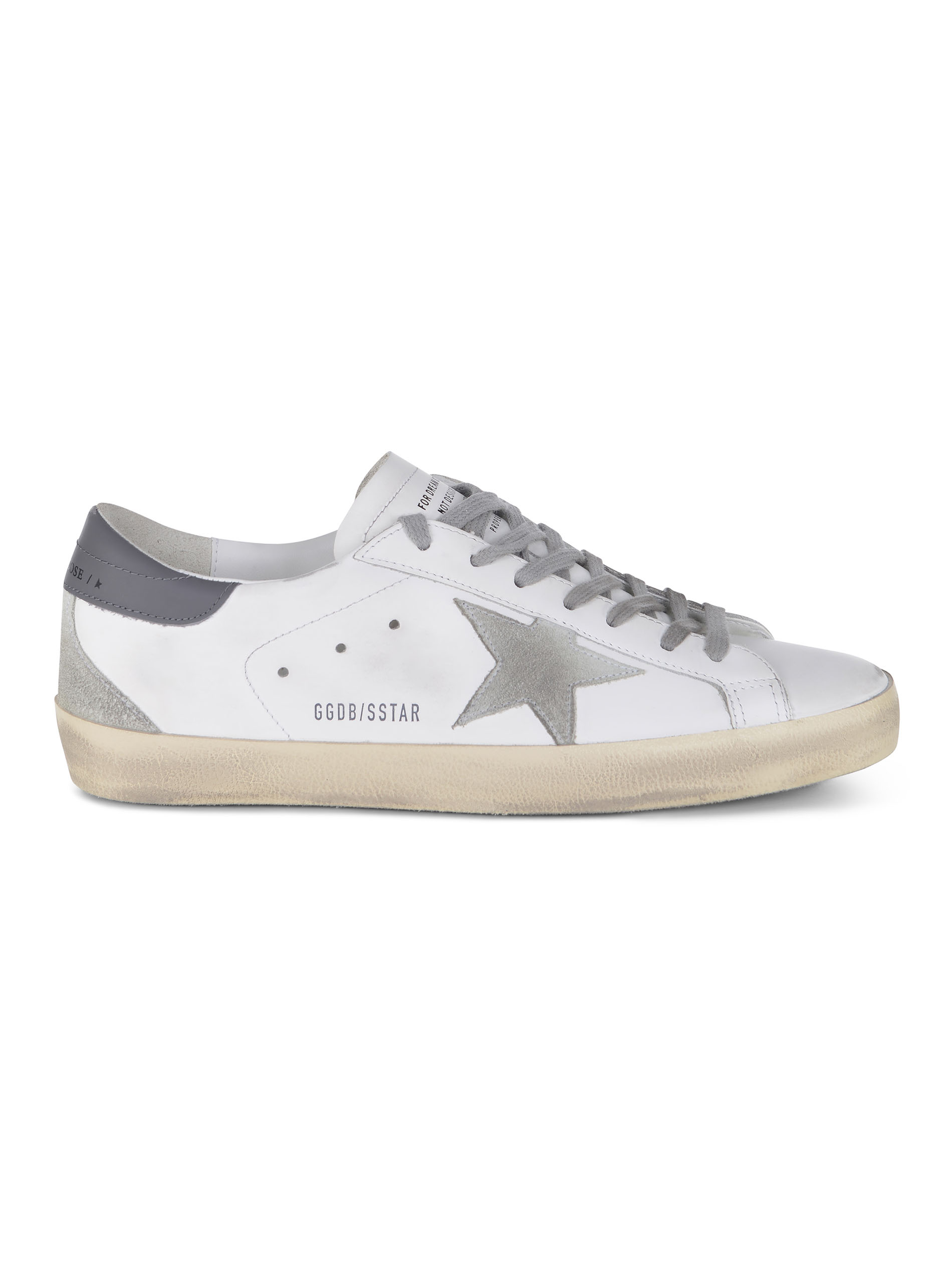 Logo "Star" a contrasto Grigio in camoscio, lettering "GGDB/SSTAR" di colore Nero, di lato. Tallone di colore grigio antracite, lettering "Golden Goose" a contrasto Nero sul retro.