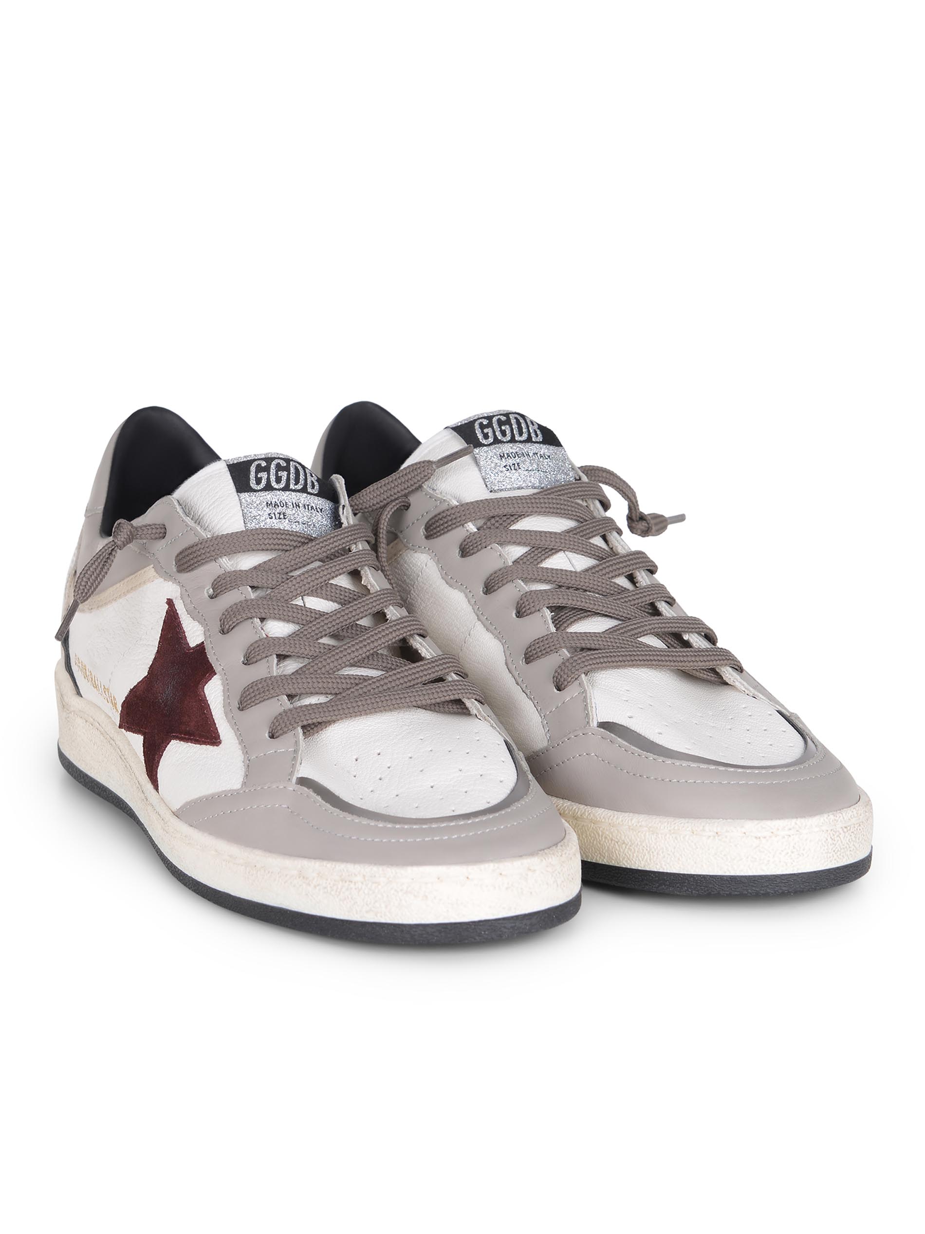 Logo "Star" di colore Bordeaux in pelle scamosciata, lettering "GGDB/BALL STAR" di colore Dorato, di lato.