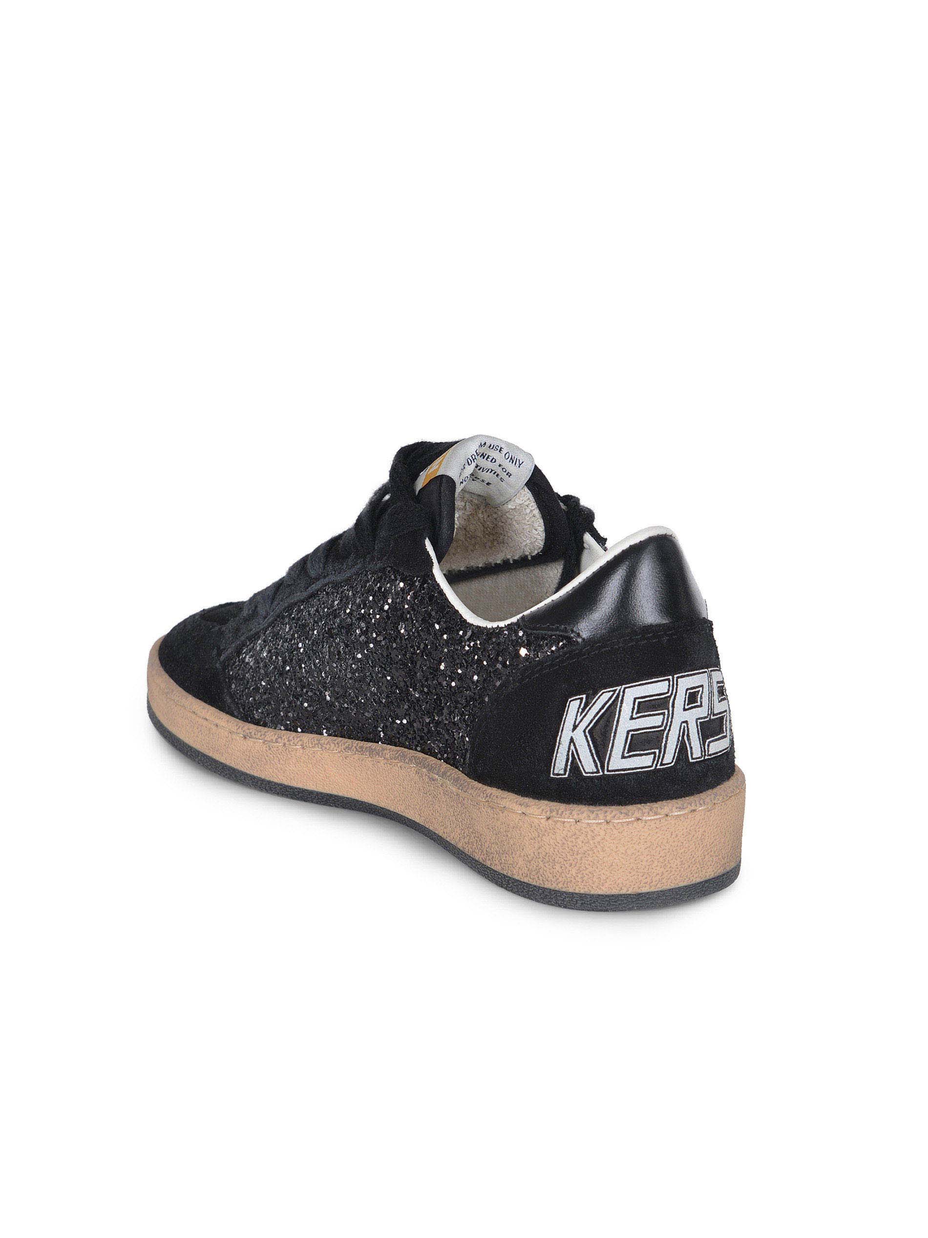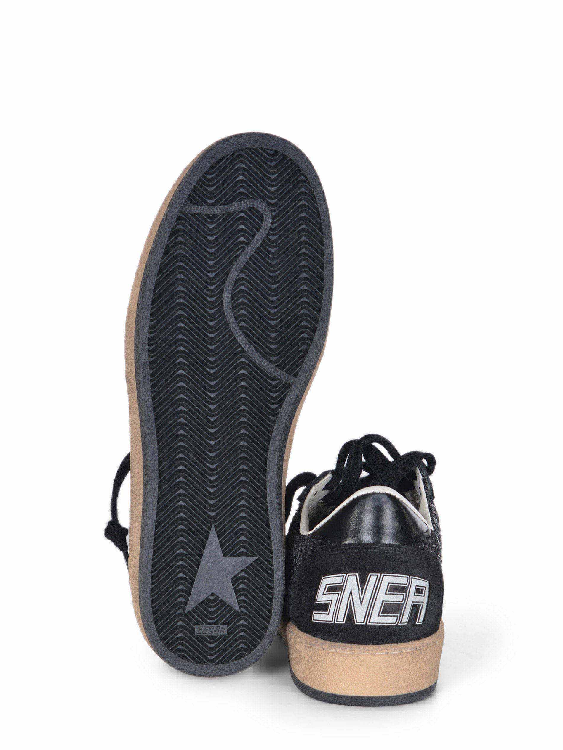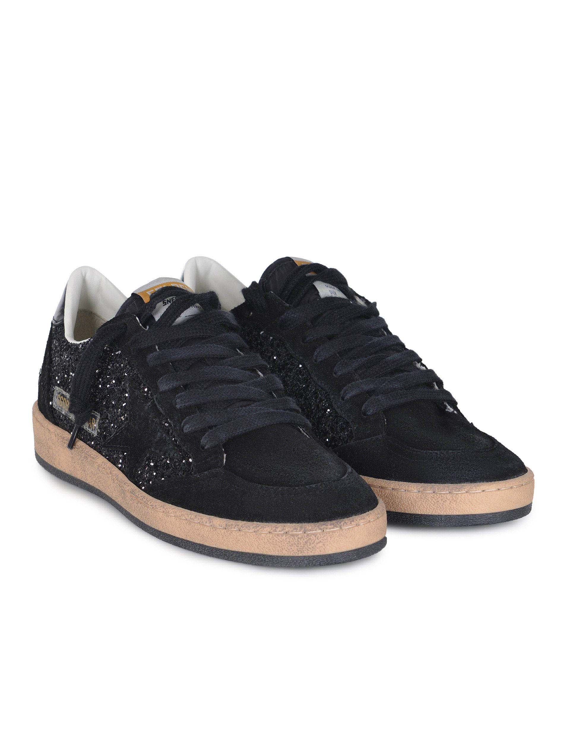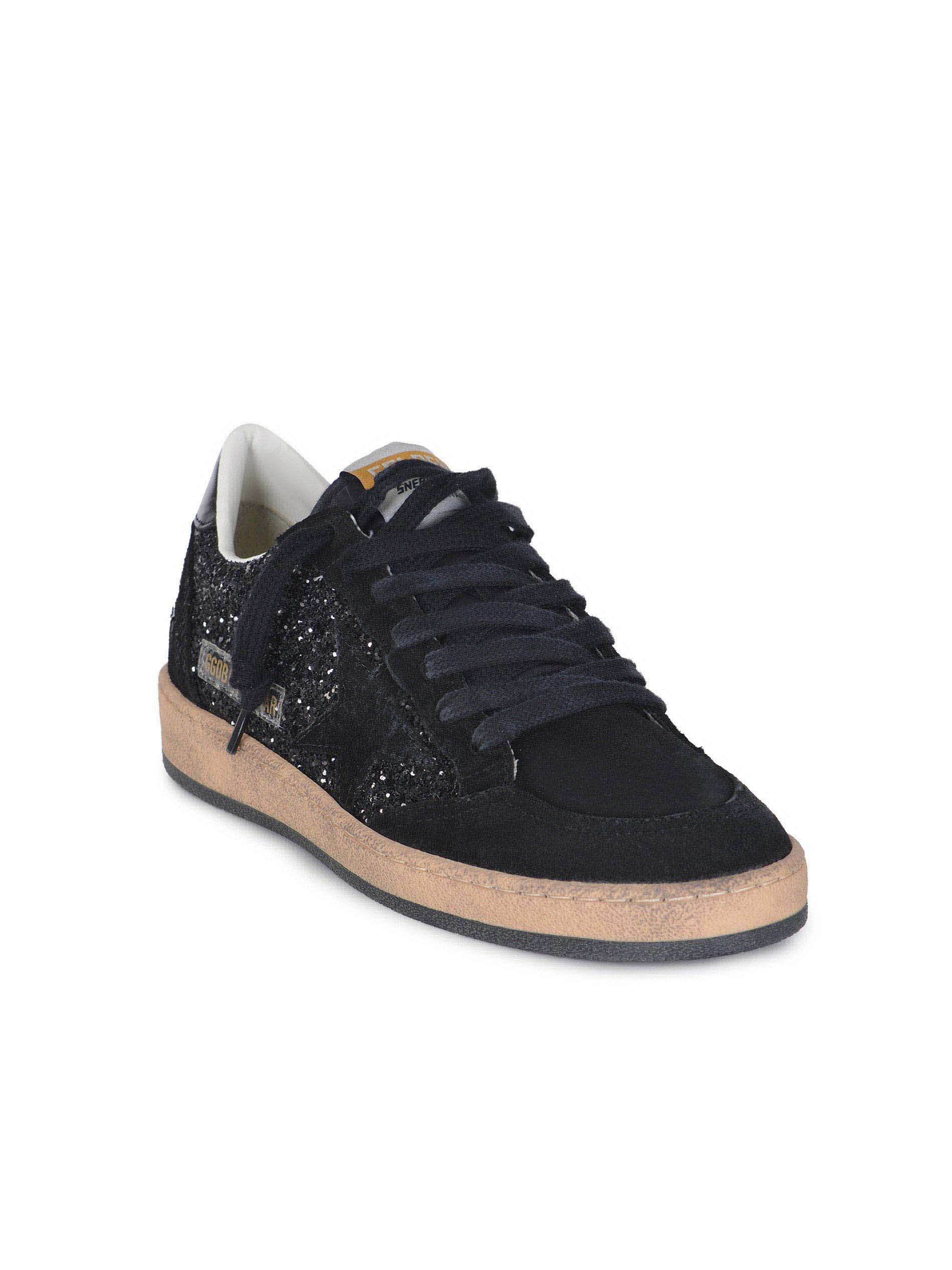 Sneakers Golden Goose "Ball Star" realizzata in pelle di colore Nero. Effetto vintage. Punta tonda in velluto, traspirante. Patch logo applicato sulla linguetta. Stringata.