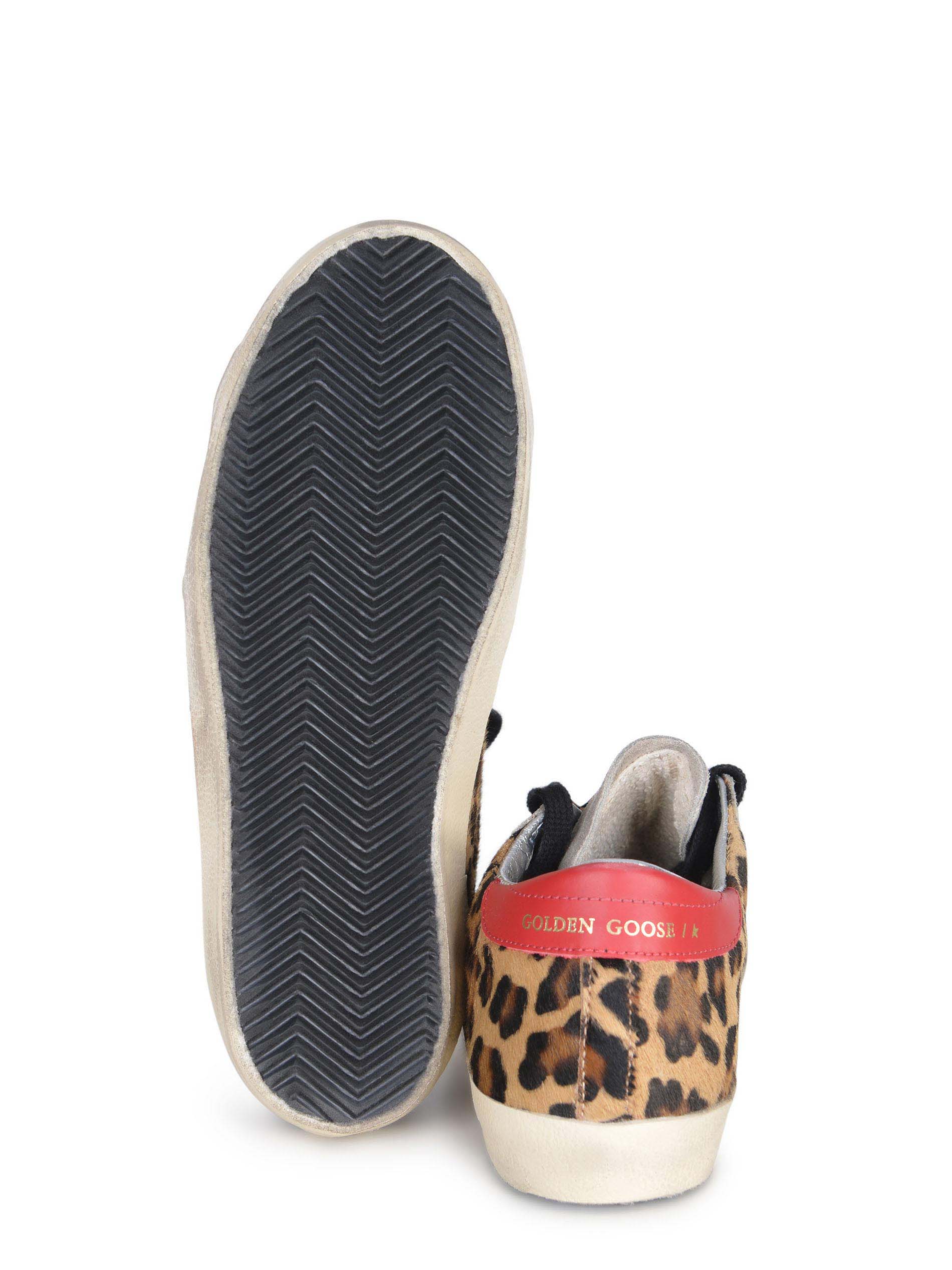 Tomaia in cavallino animalier. Inserti in pelle.