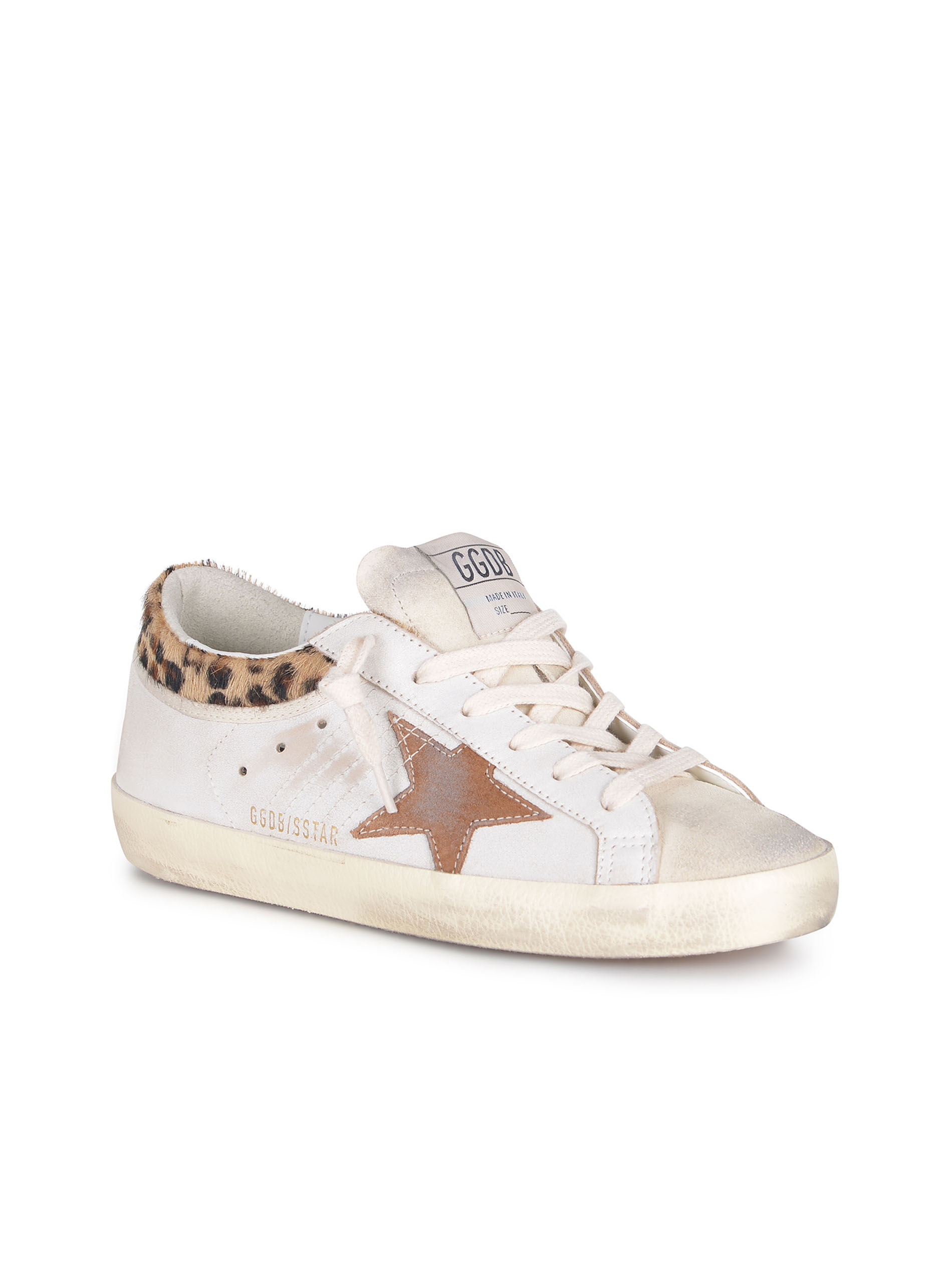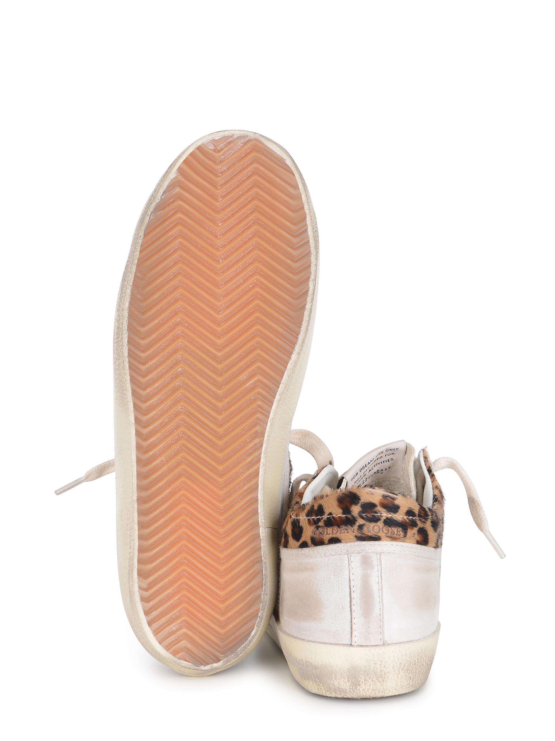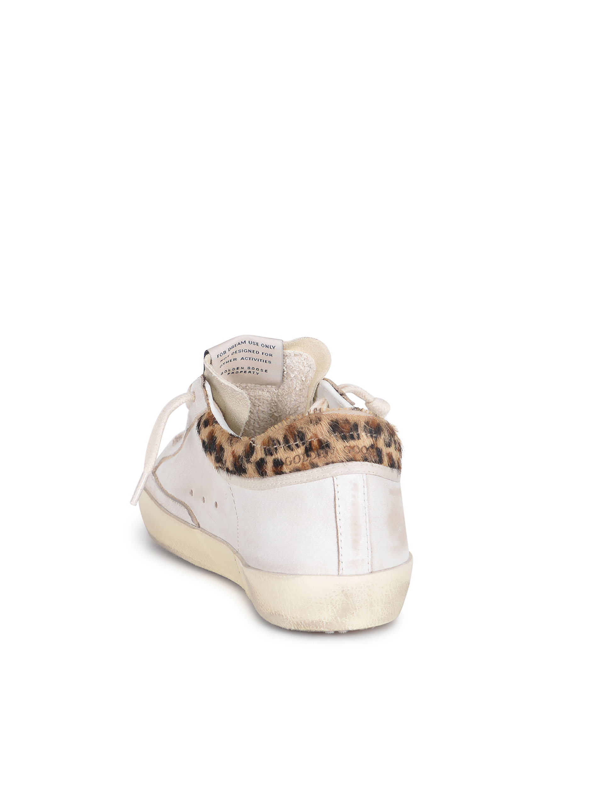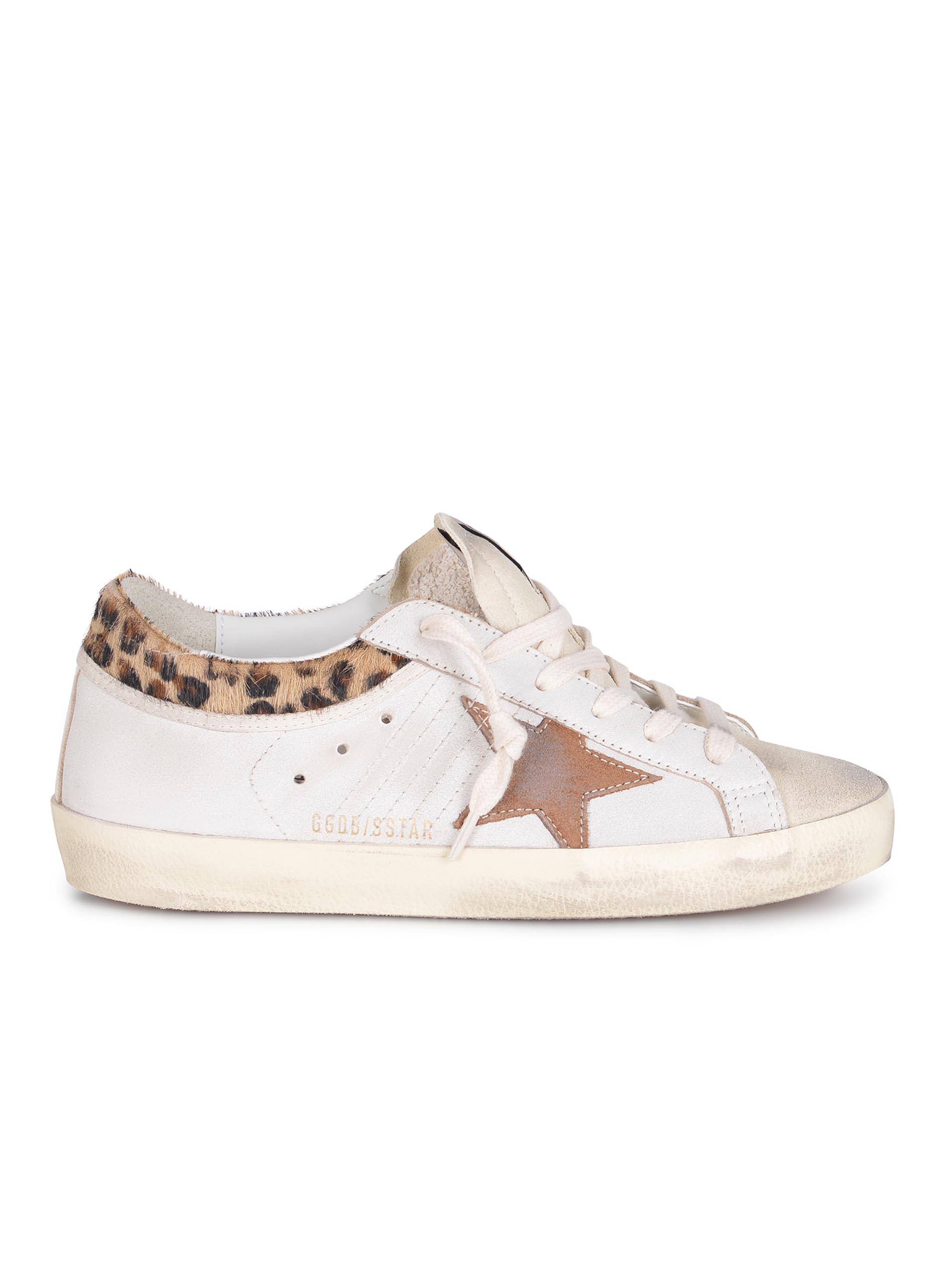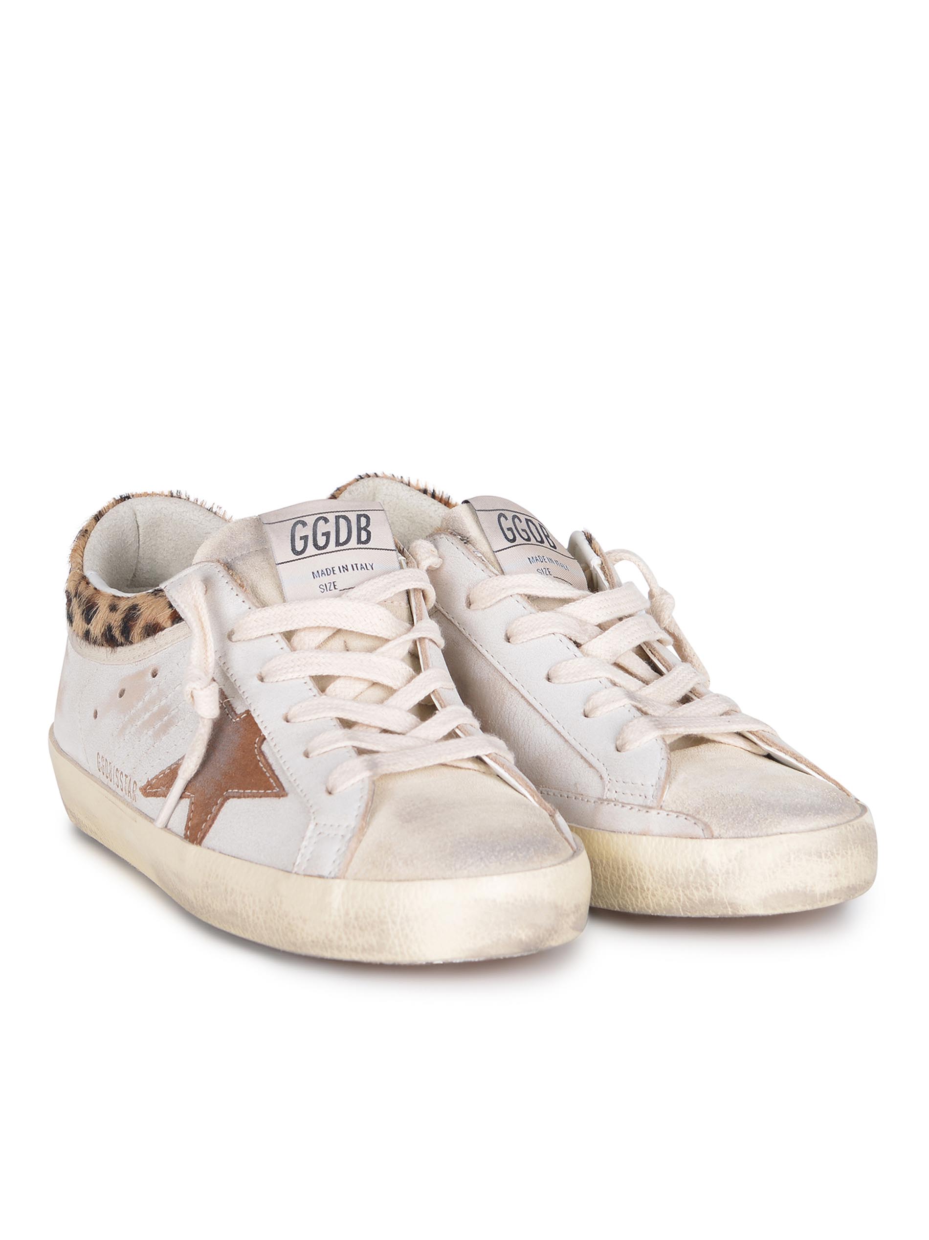 Tallone e laterale in cavallino Leopardato, lettering "Golden Goose" di colore Marrone sul retro.