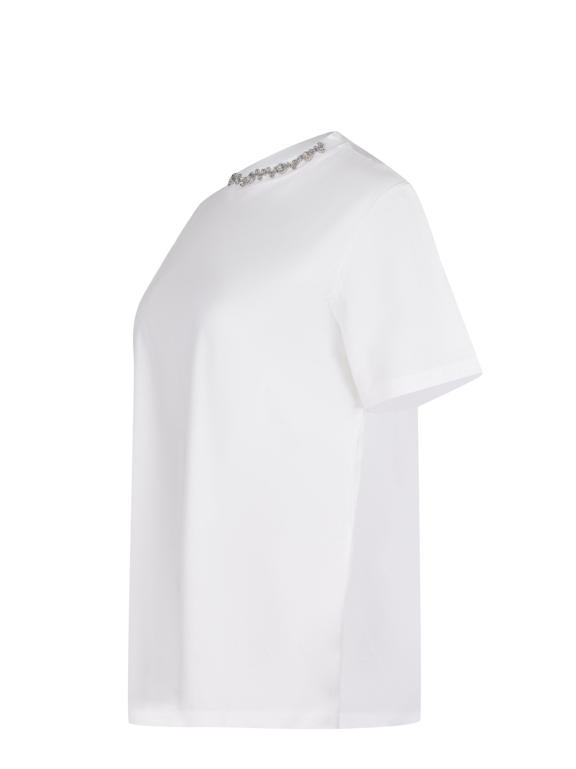 Girocollo a costine con applicazioni gioiello a contrasto.