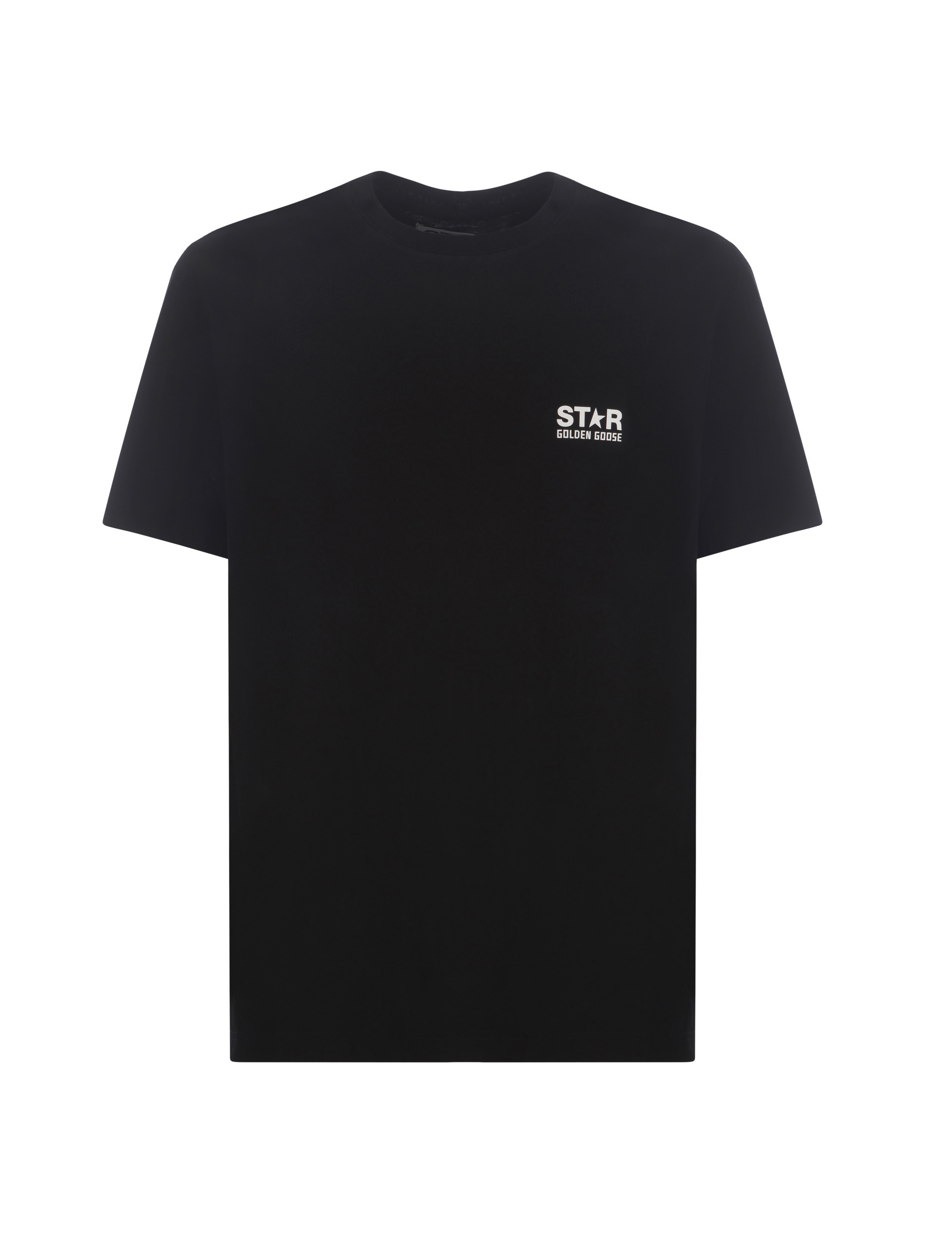 T-shirt Golden Goose in cotone Nero. Girocollo. Maniche corte. Stampa logo "Star Golden Goose" a contrasto Bianco sul petto.