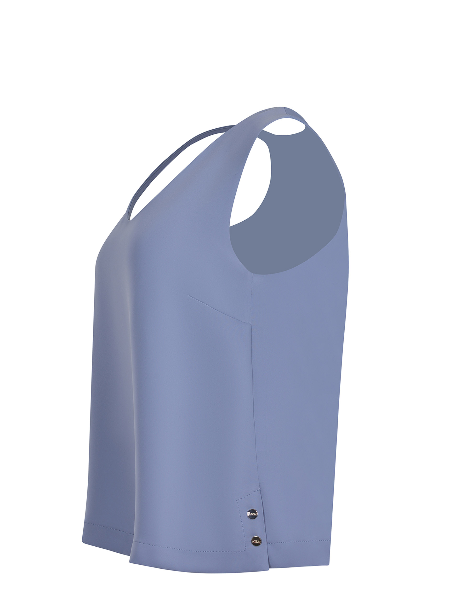 Dettagli con bottoni logati apribili laterali.