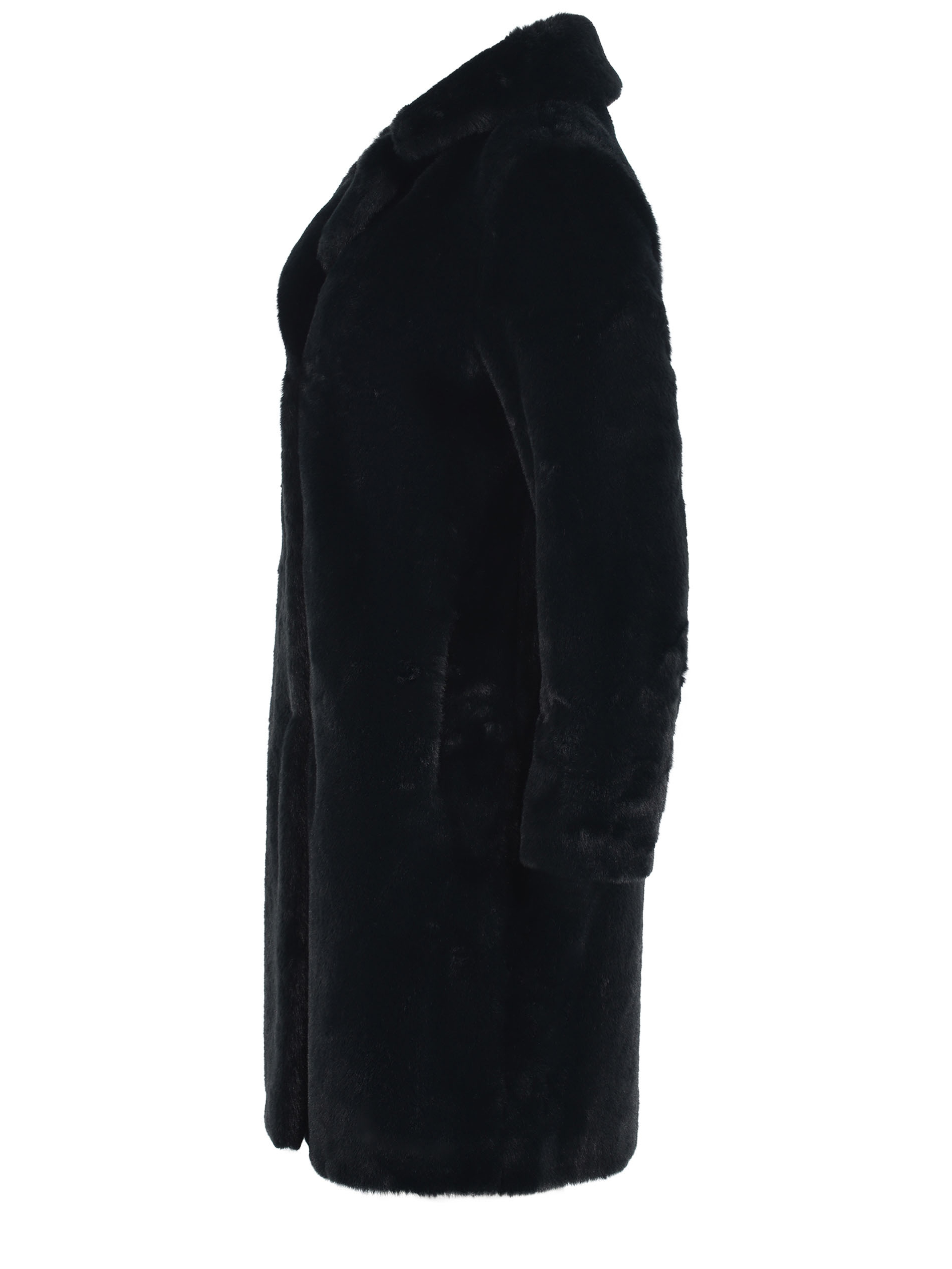 Cappotto Herno in ecopelliccia Nero. Rever ampio. Maniche lunghe. Tasche laterali a filo. Chiusura con bottoni automatici nascosti.
