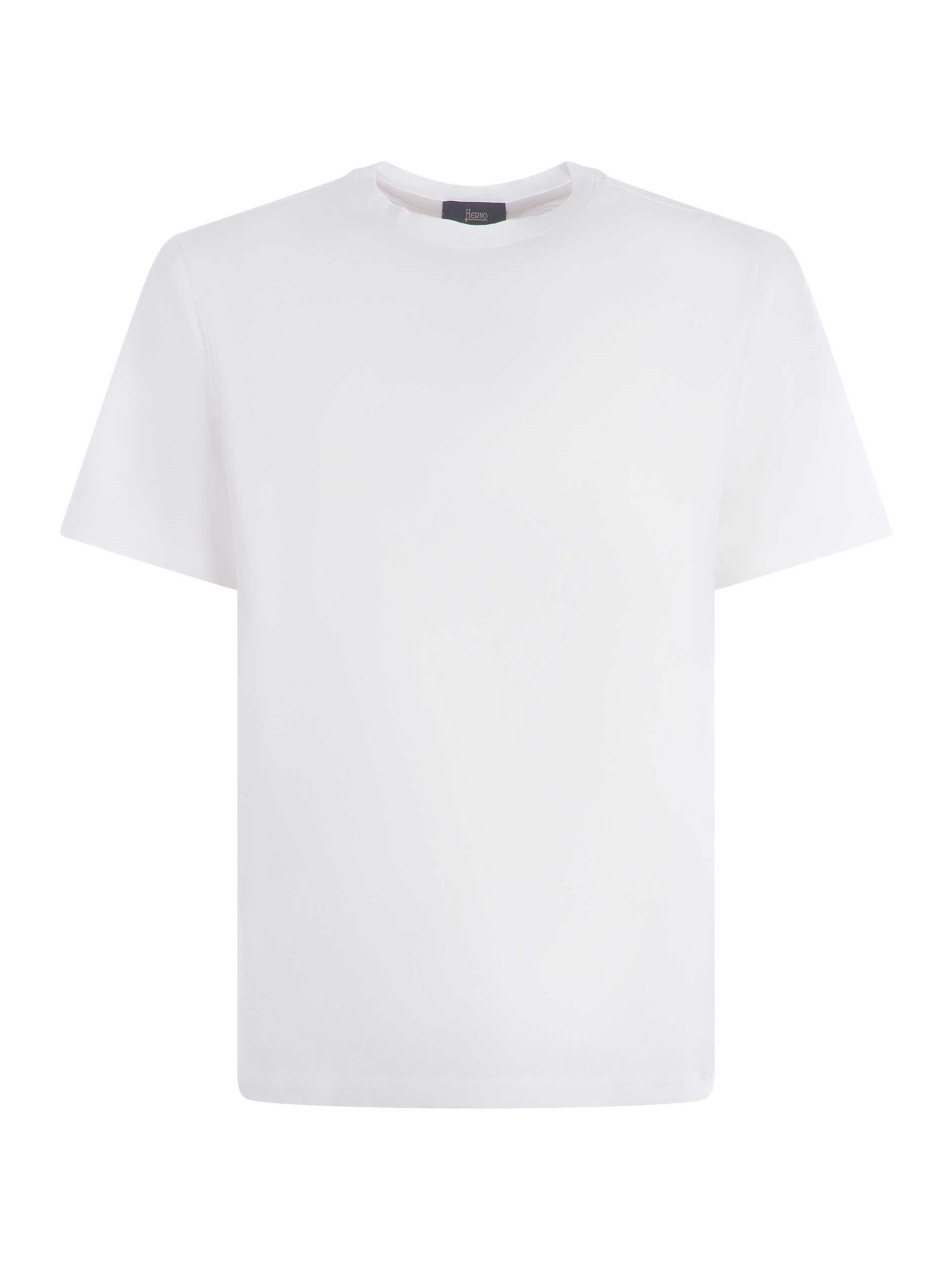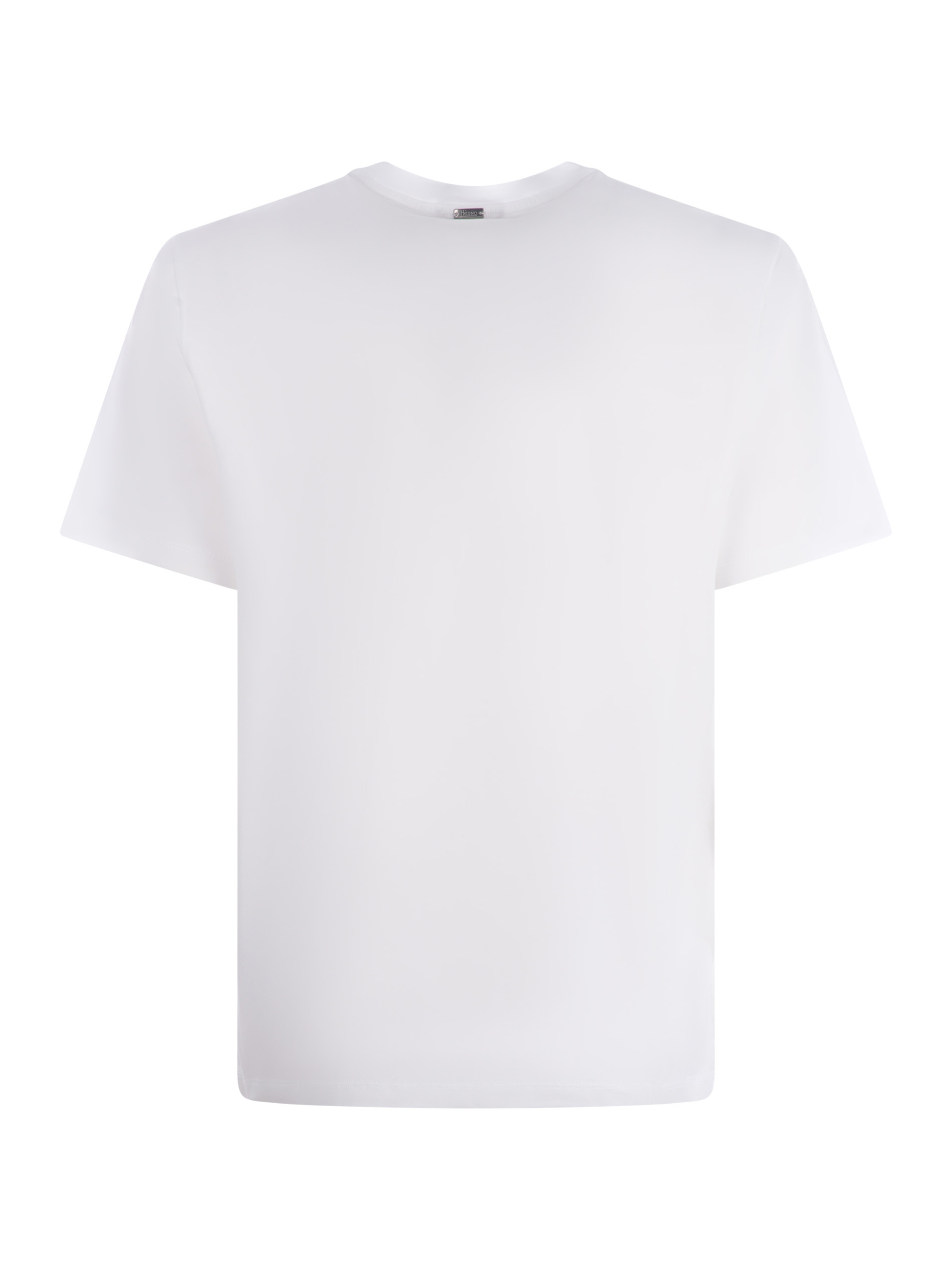 T-shirt Herno in cotone strech di colore Bianco. Girocollo. Maniche corte. Patch logo "Herno" in metallo sotto lo scollo sul retro.