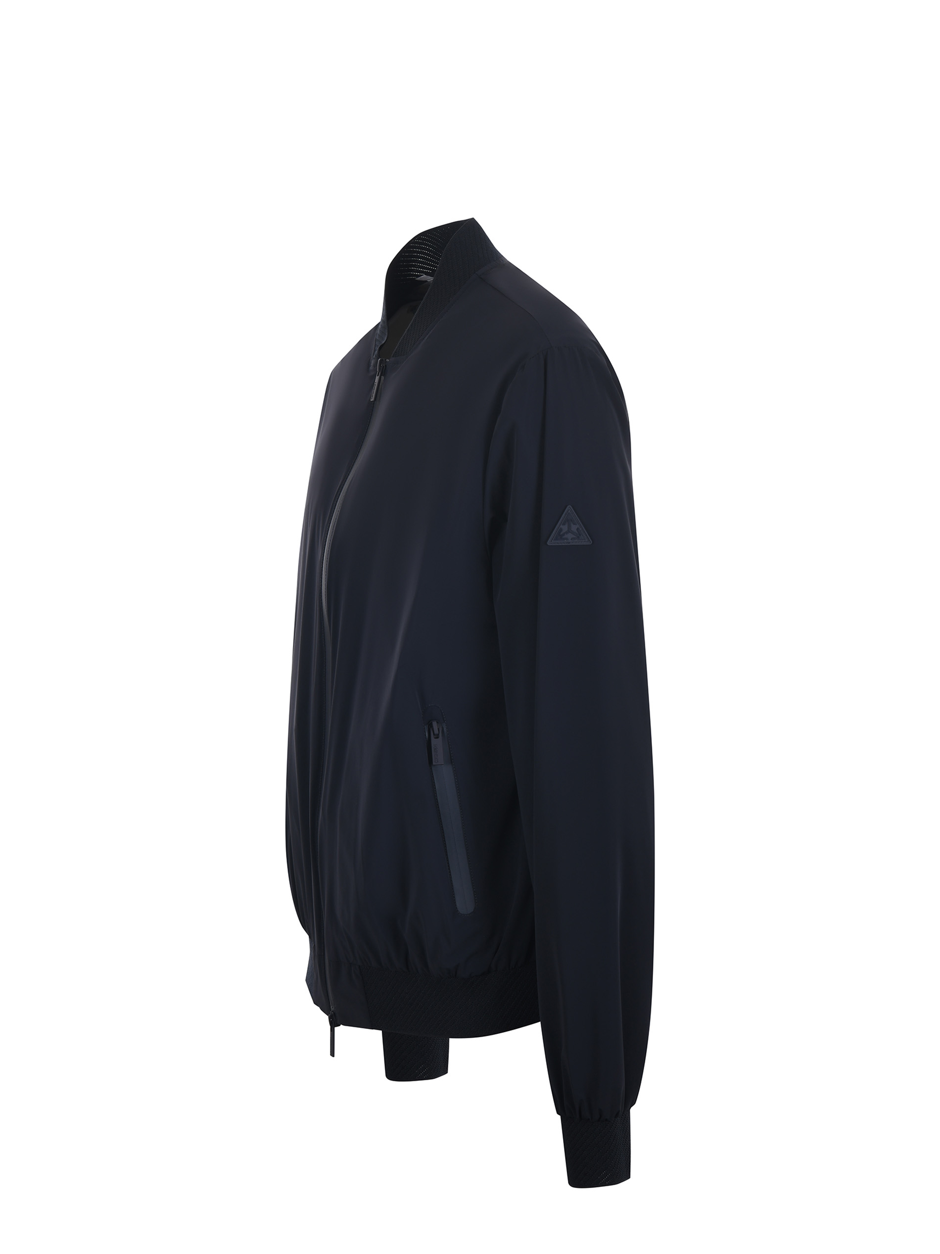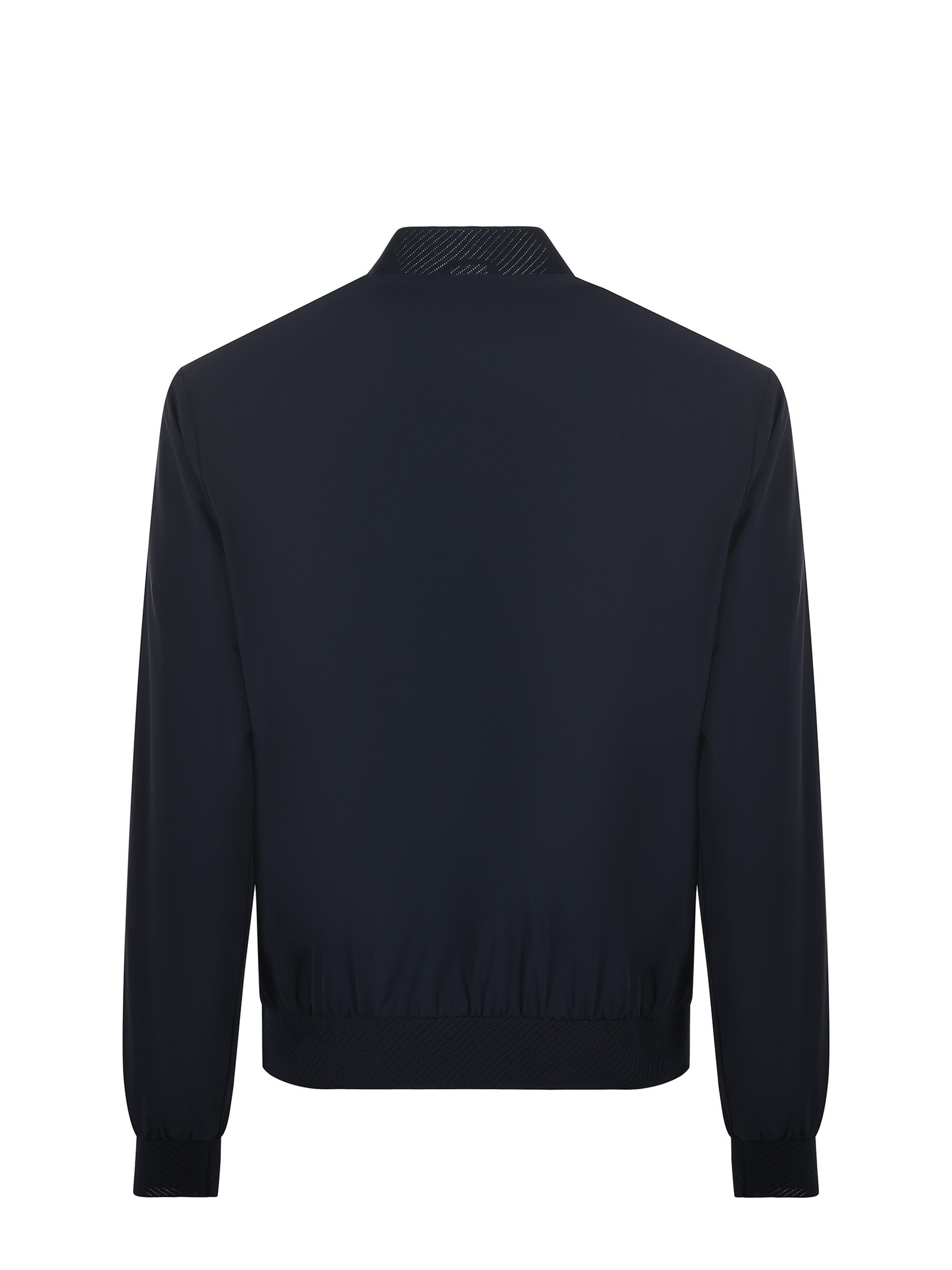 Giubbotto Heskimo in jersey stretch Blu scuro. Colletto in maglia. Polsi e fondo in maglia. Tasche con zip. Tasca interna. Polsi e fondo il maglia. Chiusura con zip doppio cursore. Foderato.