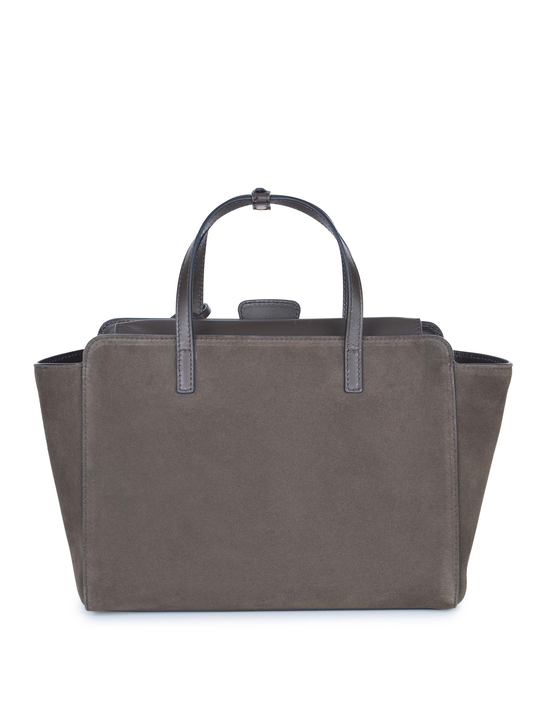 Borsa Hidesins "Flap M" realizzata in pelle scamosciata di colore Testa di moro.