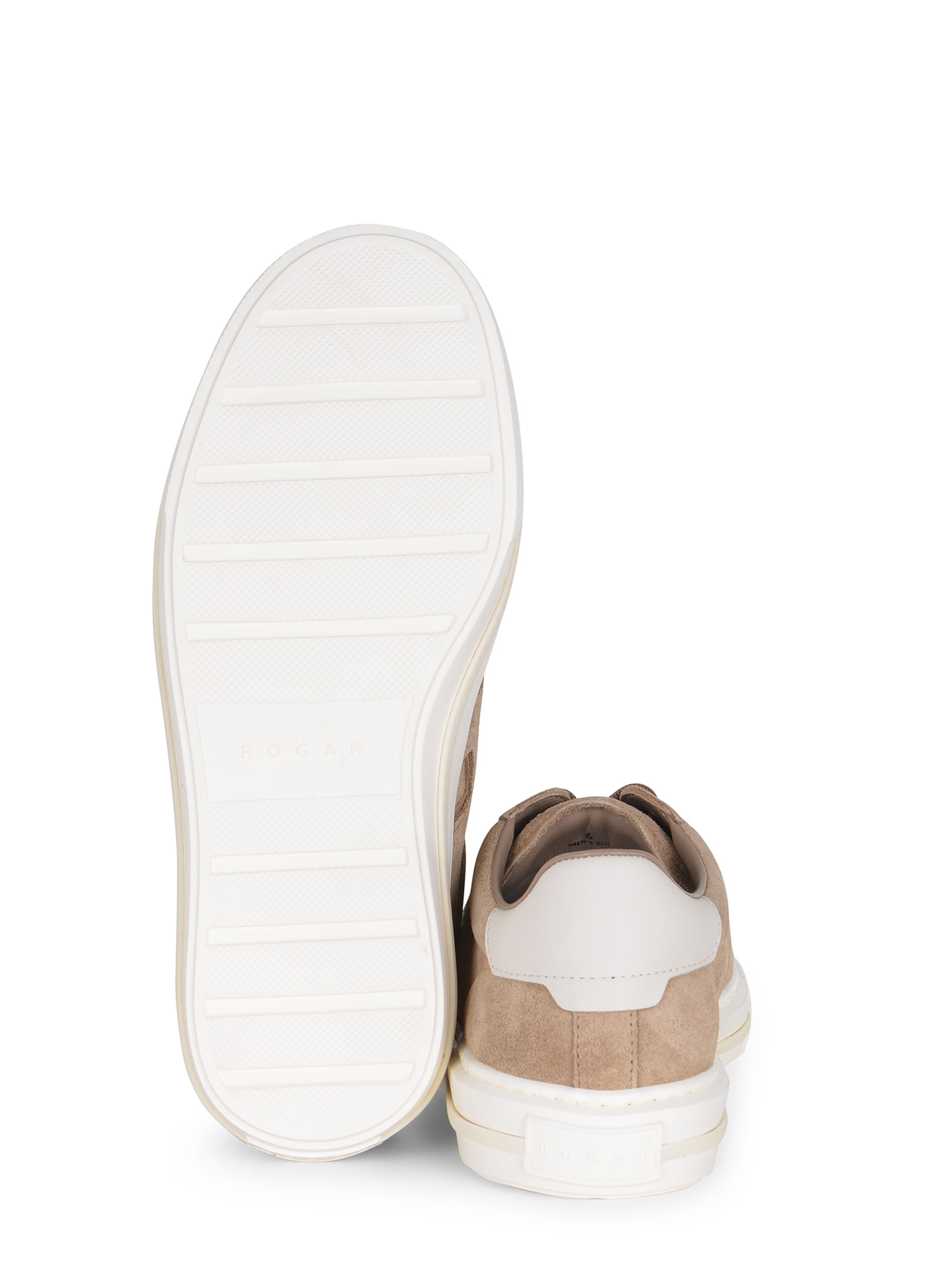 Sneakers Hogan "H691" realizzata in nabuk di colore Beige. Punta tonda. Lettering logo "Hogan" sulla linguetta.