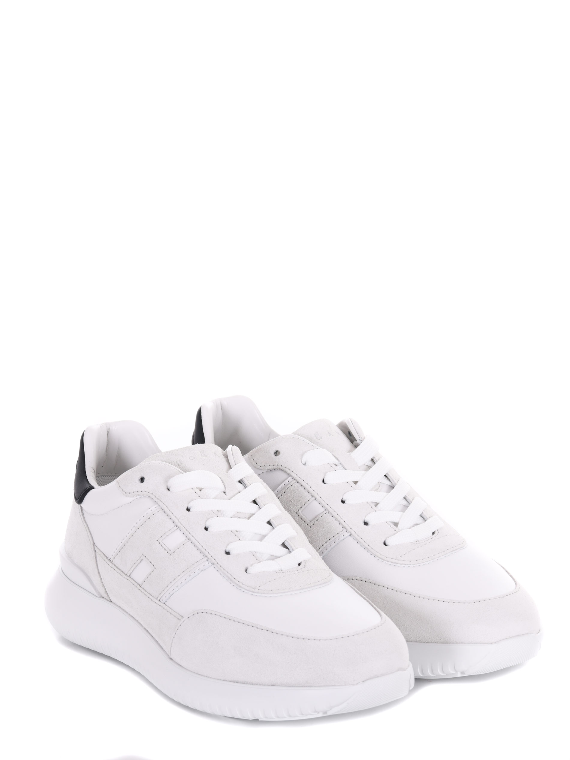 Sneakers Hogan "Interactive3" in pelle e camoscio Bianco. Inserti in pelle nera. Stringate. Patch logo sulla linguetta. "H" laterale applicata. Suola in gomma xl Extralight Extrabounce