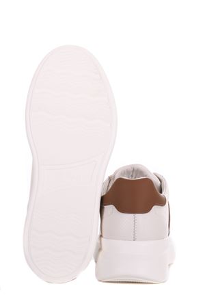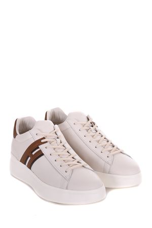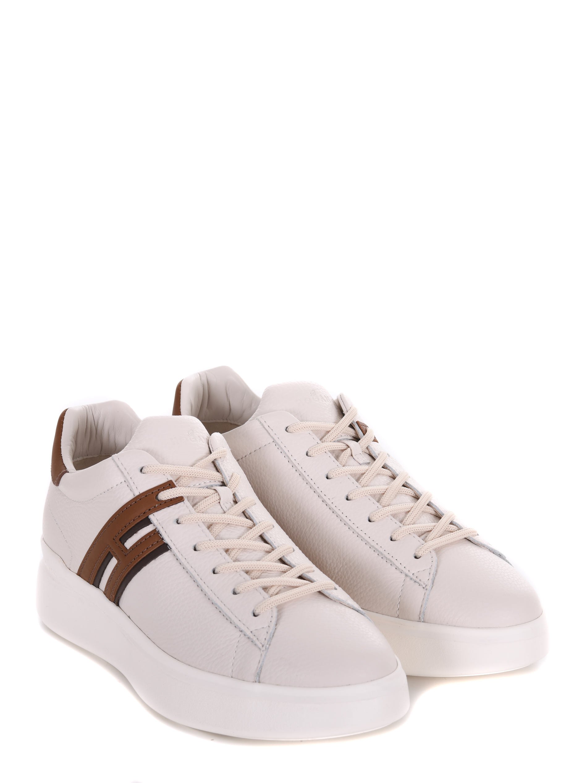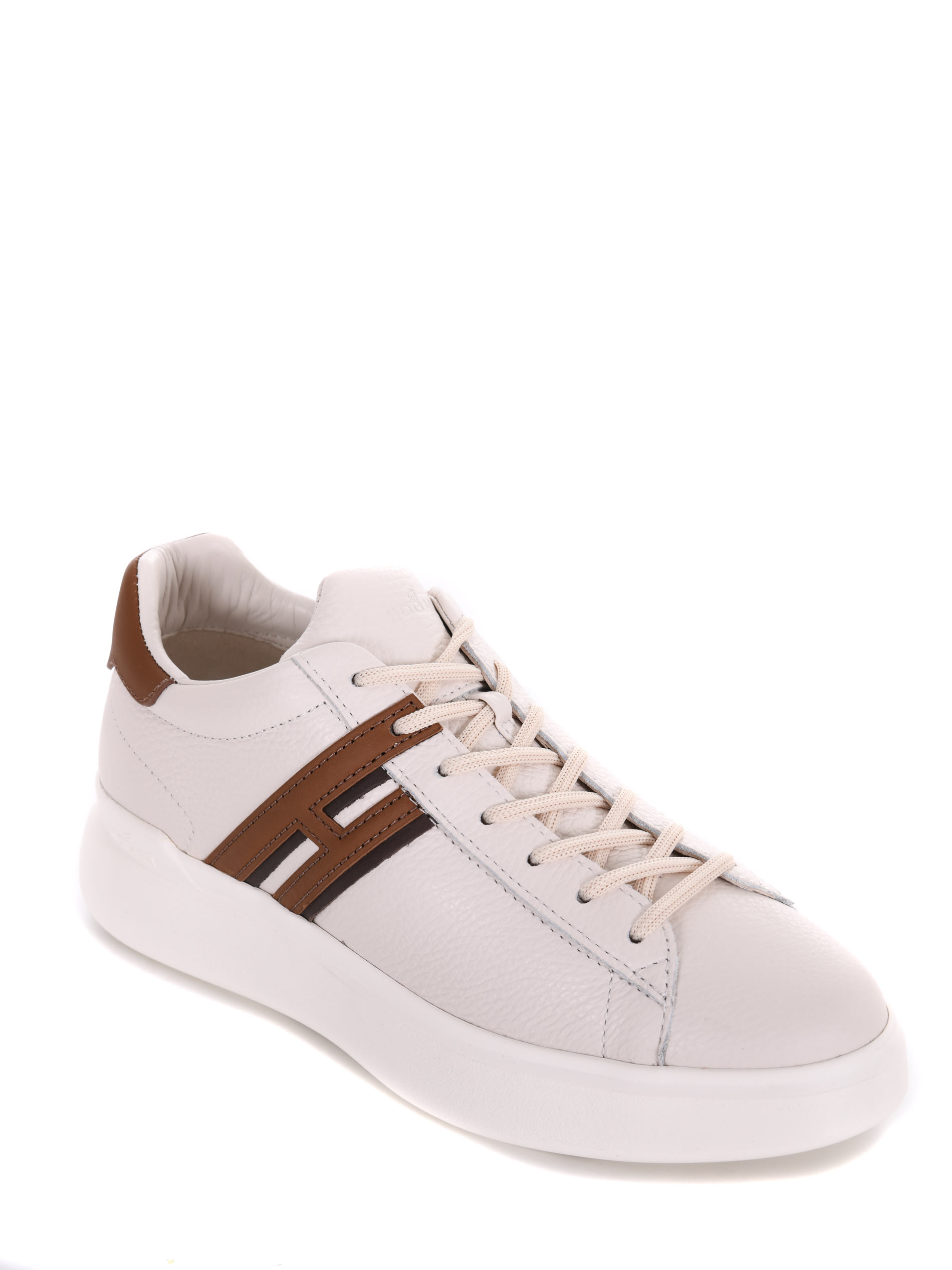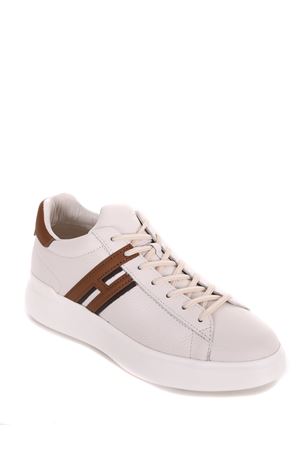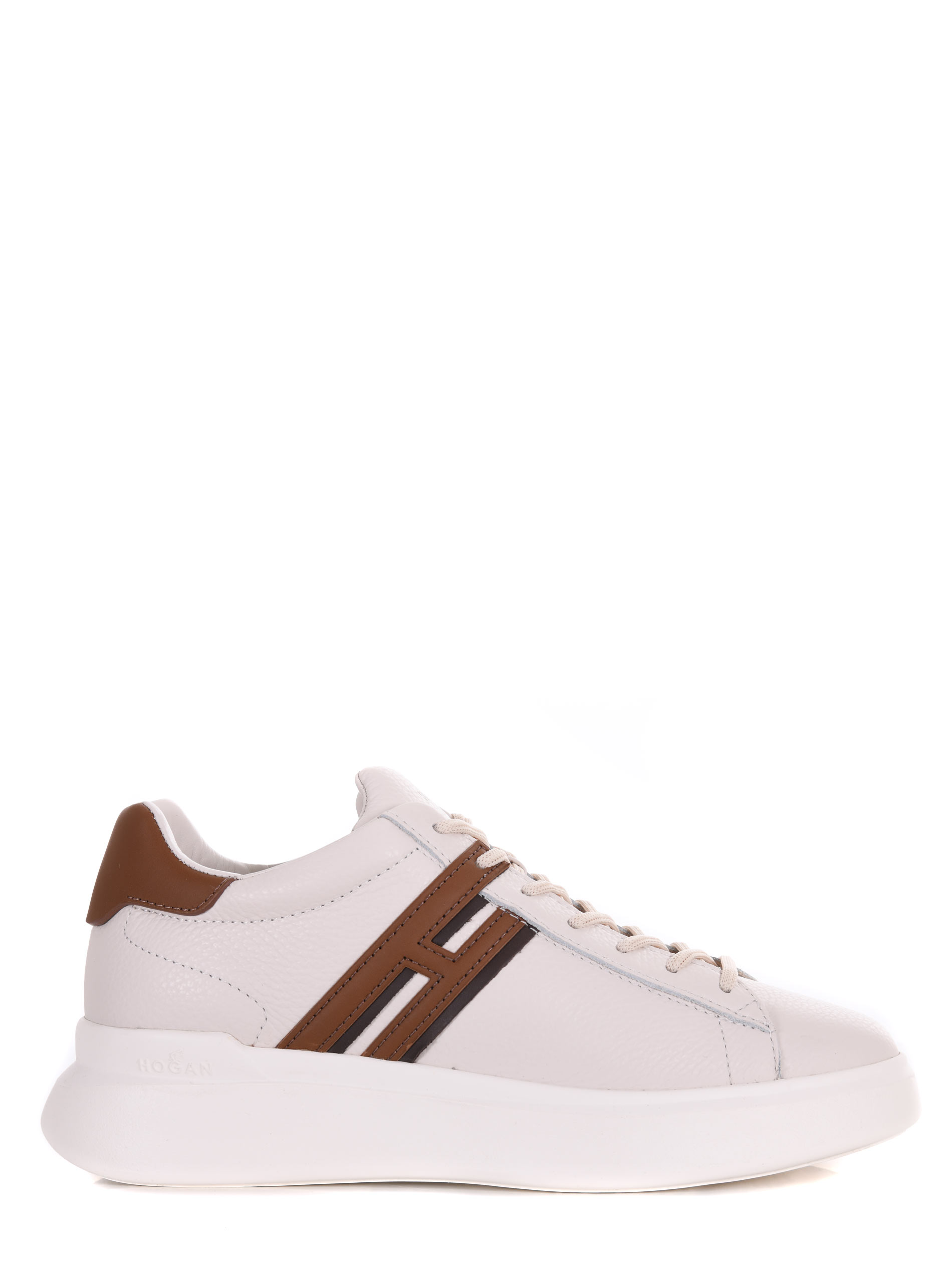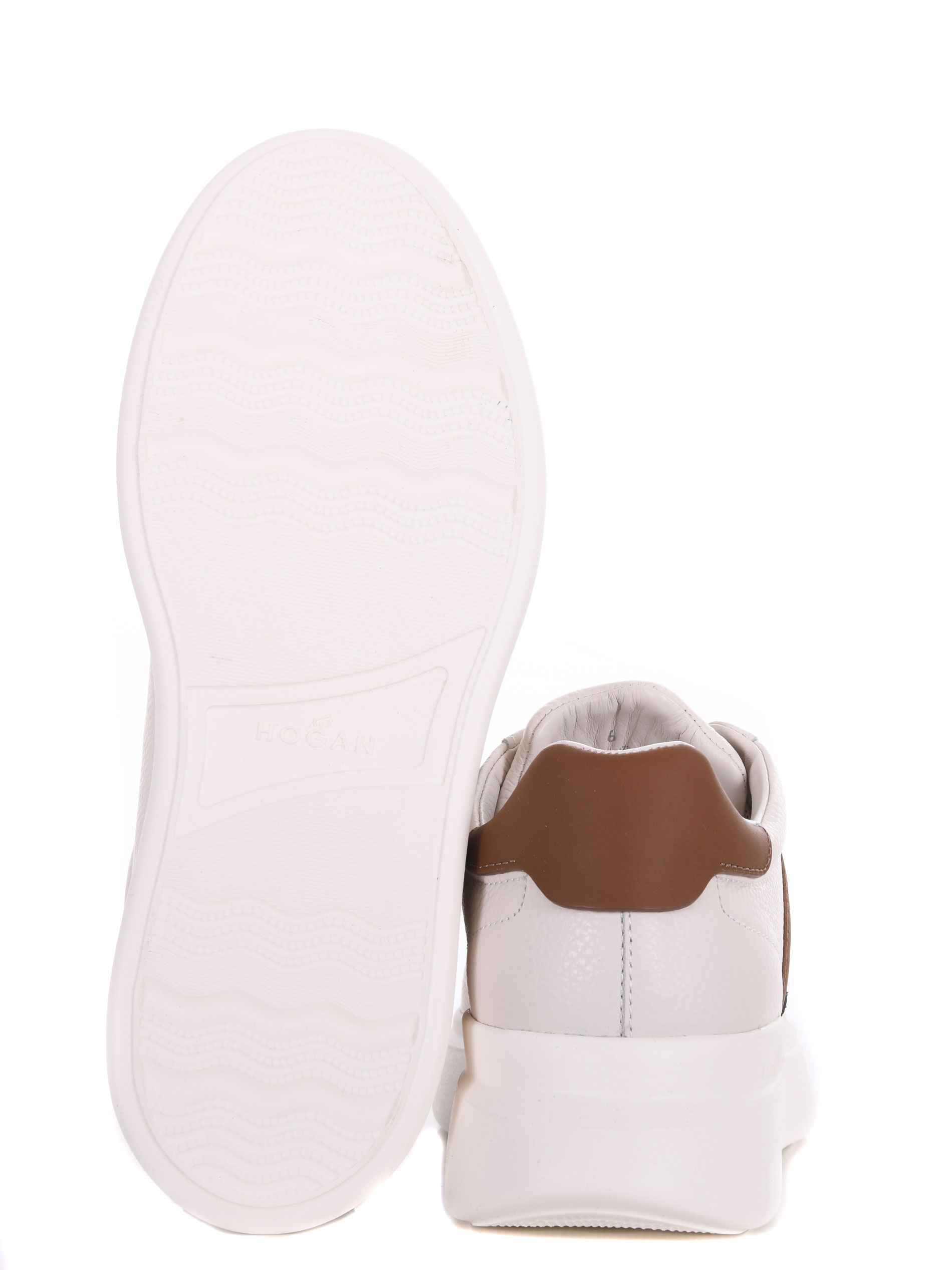 Punta tonda. Lettering "Hogan" impresso sulla linguetta. Stringate. H laterale in pelle marrone.