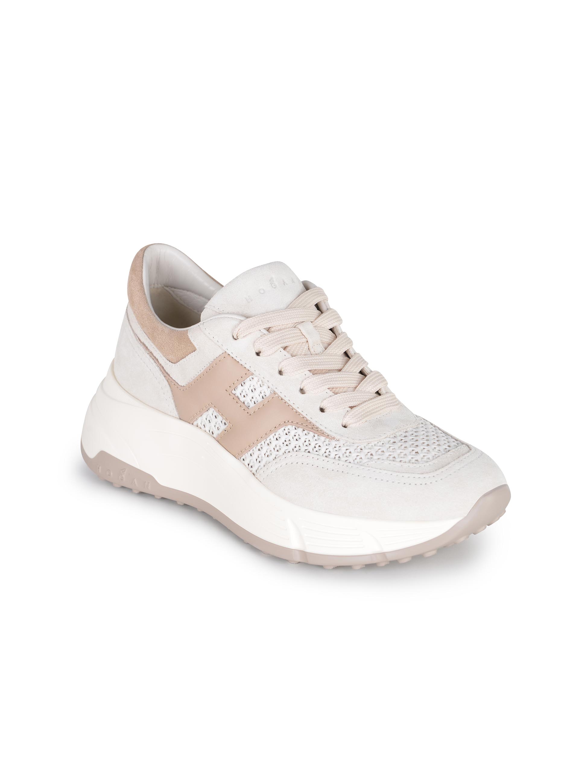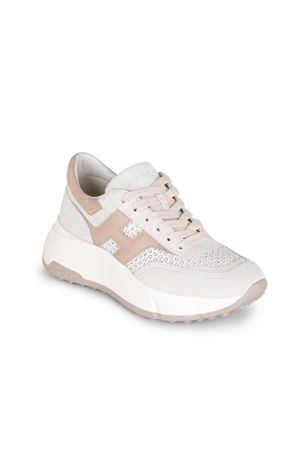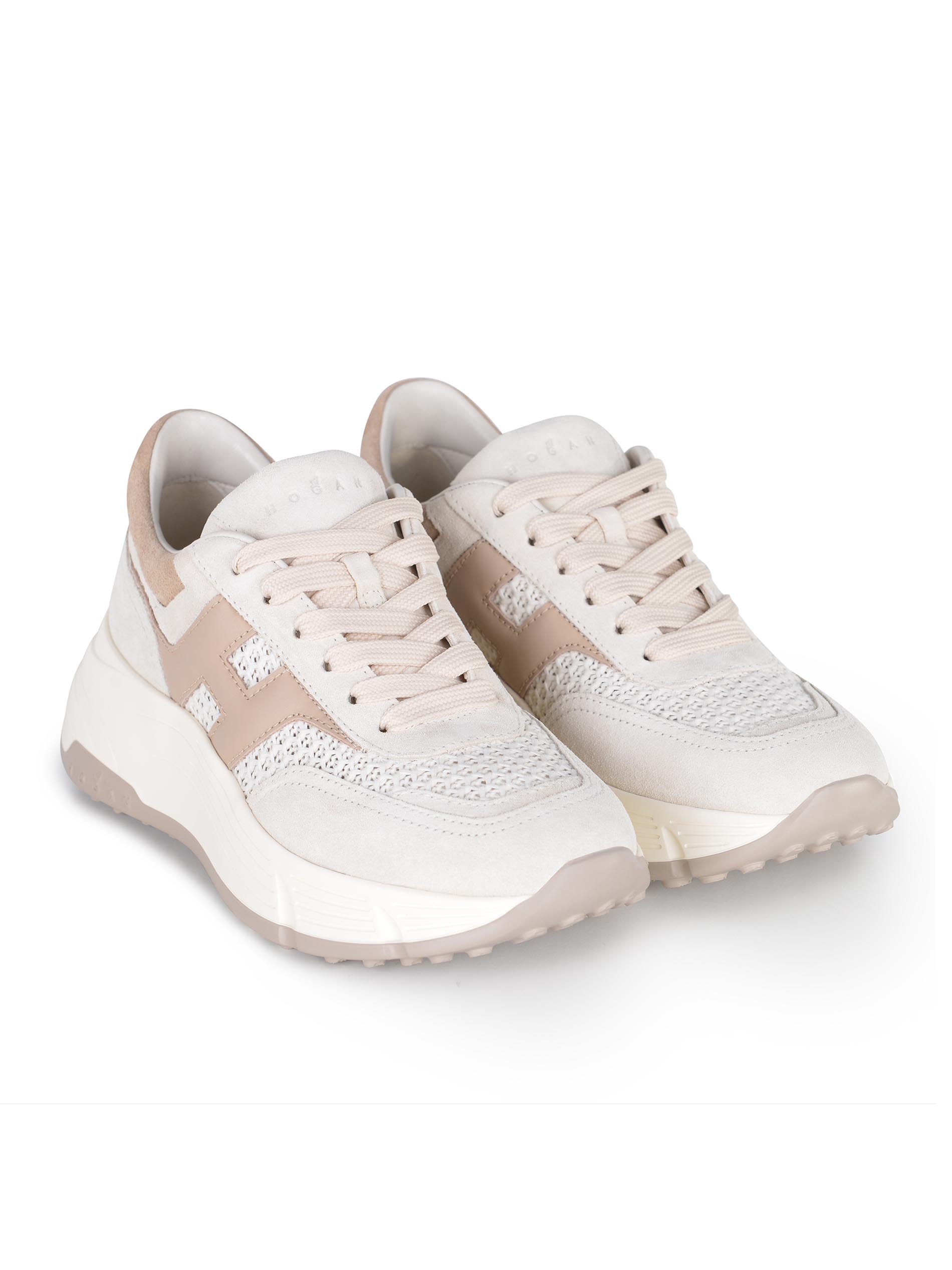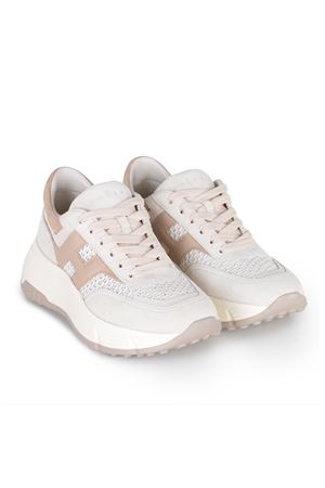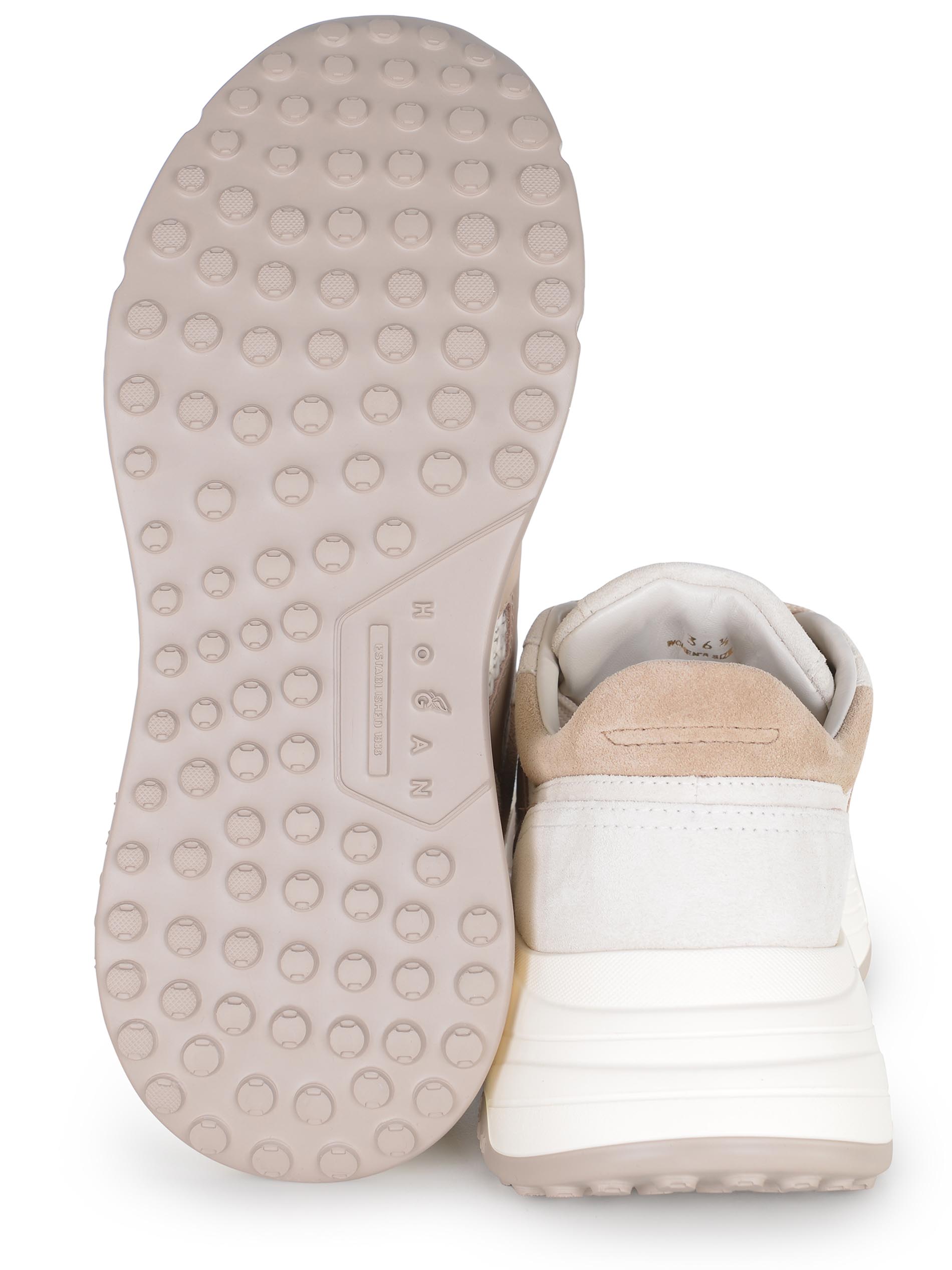 Sneakers Hogan "Hi-Fi" realizzata in pelle scamosciata di colore Avorio.