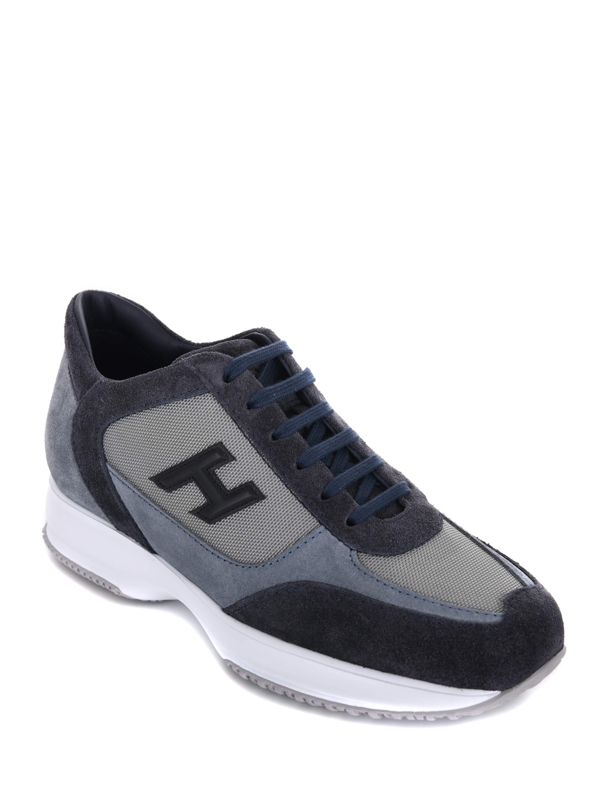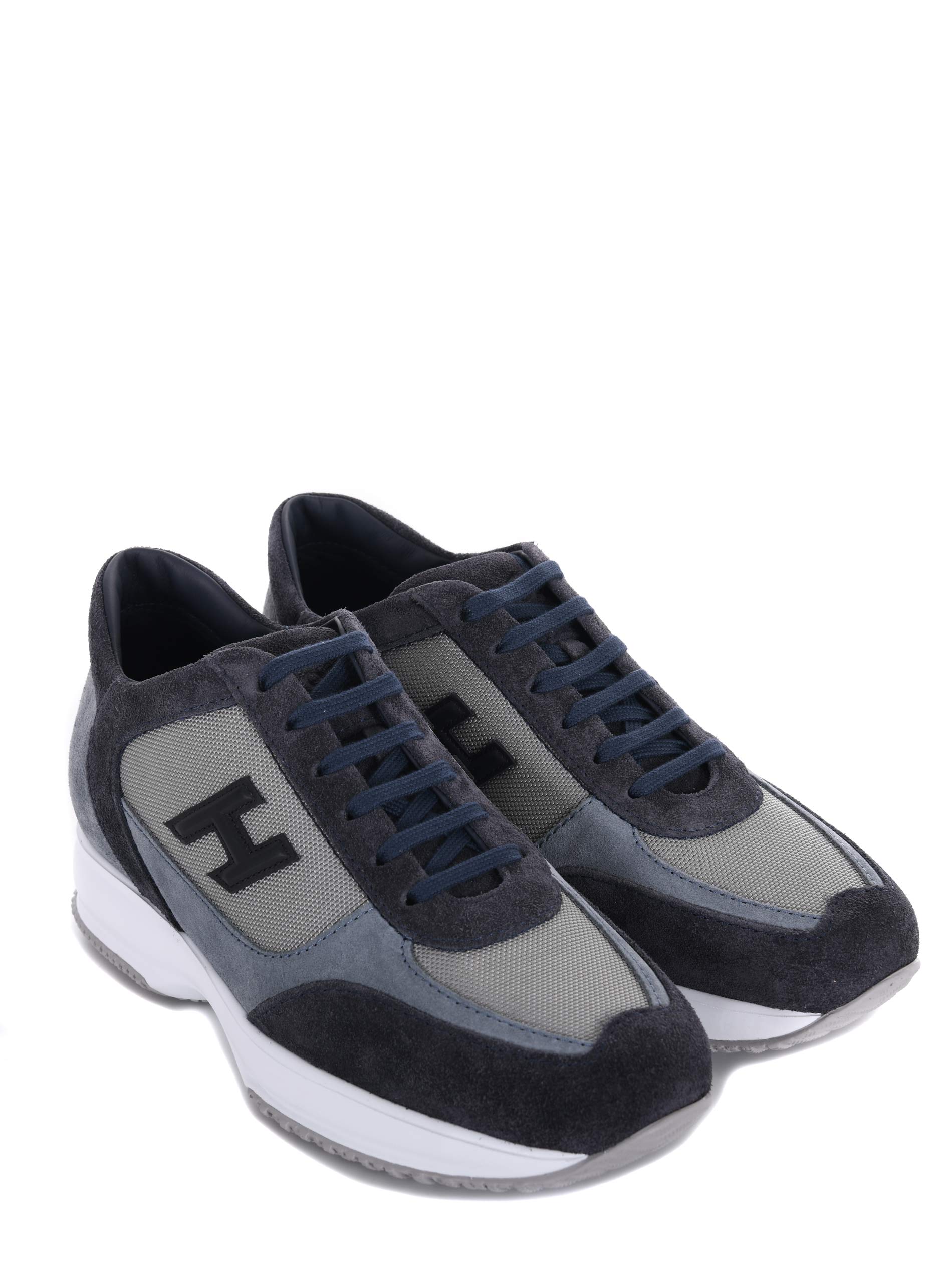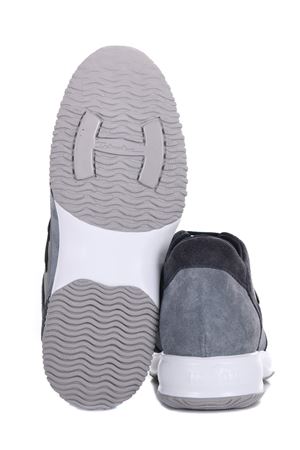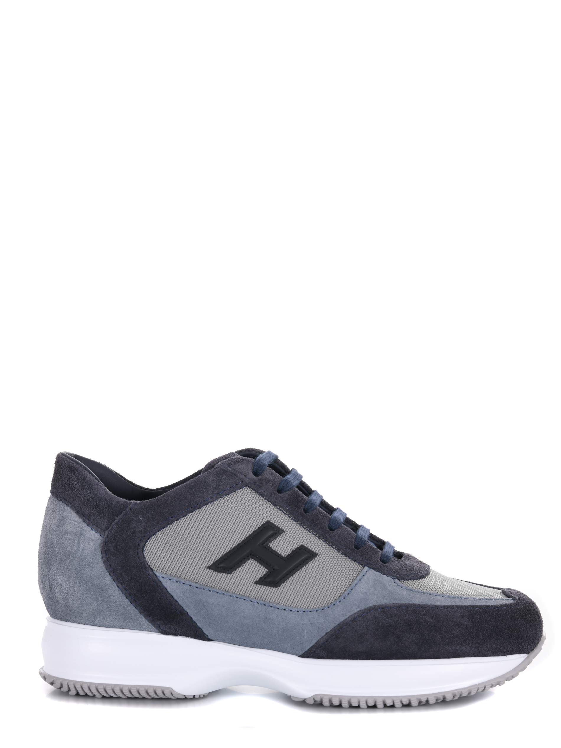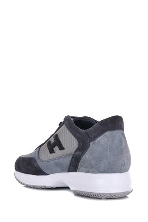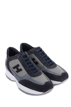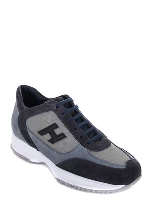 Sneakers Hogan in camoscio e nylon Blu/Avion. Inserti in pelle. Stringate. Logo sulla linguetta. Logo "H" in pelle. Suola in gomma con lettering "Hogan" tono su tono sul retro.