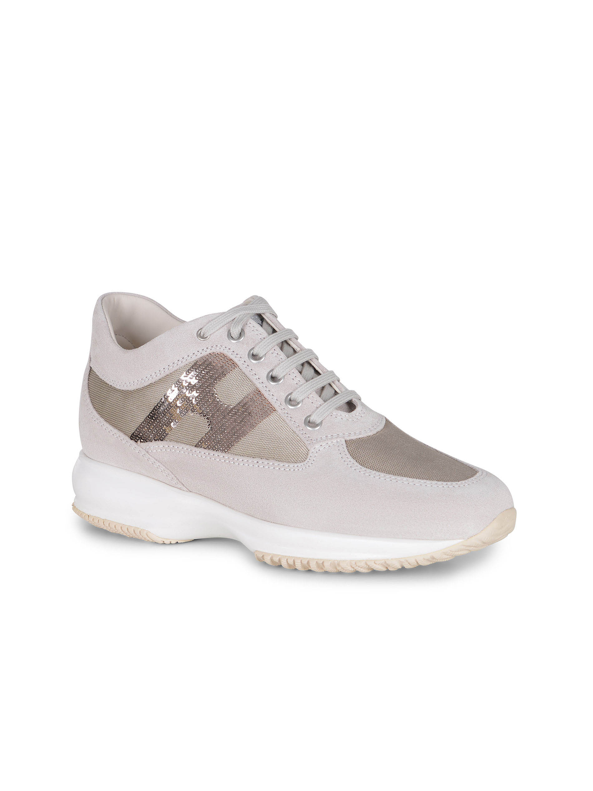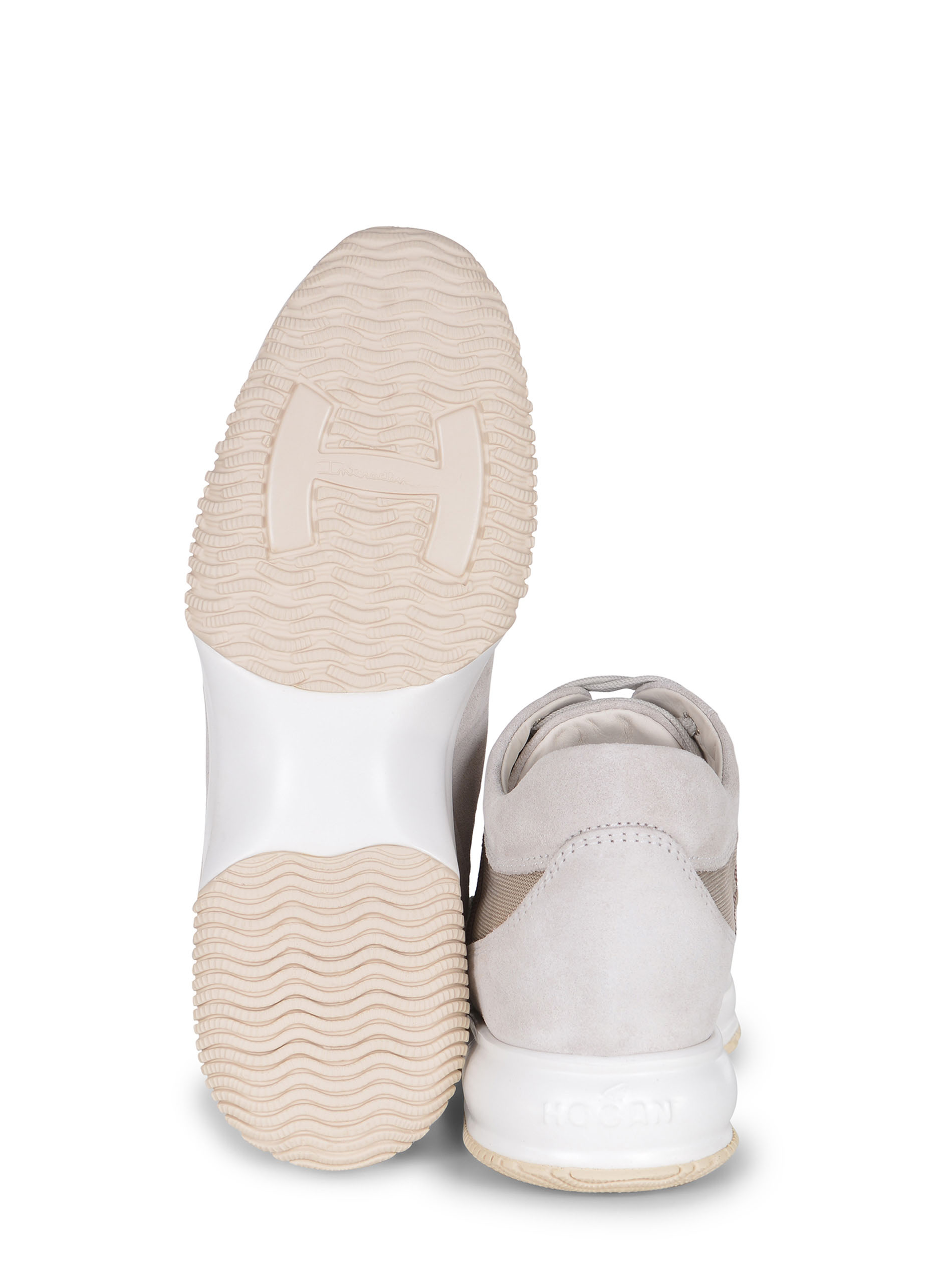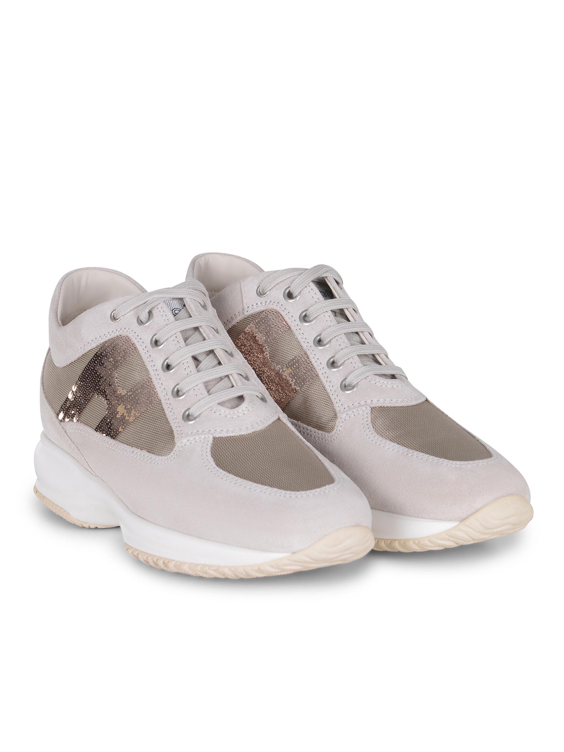 Sneakers Hogan Interactive realizzate in pelle scamosciata di colore Beige.