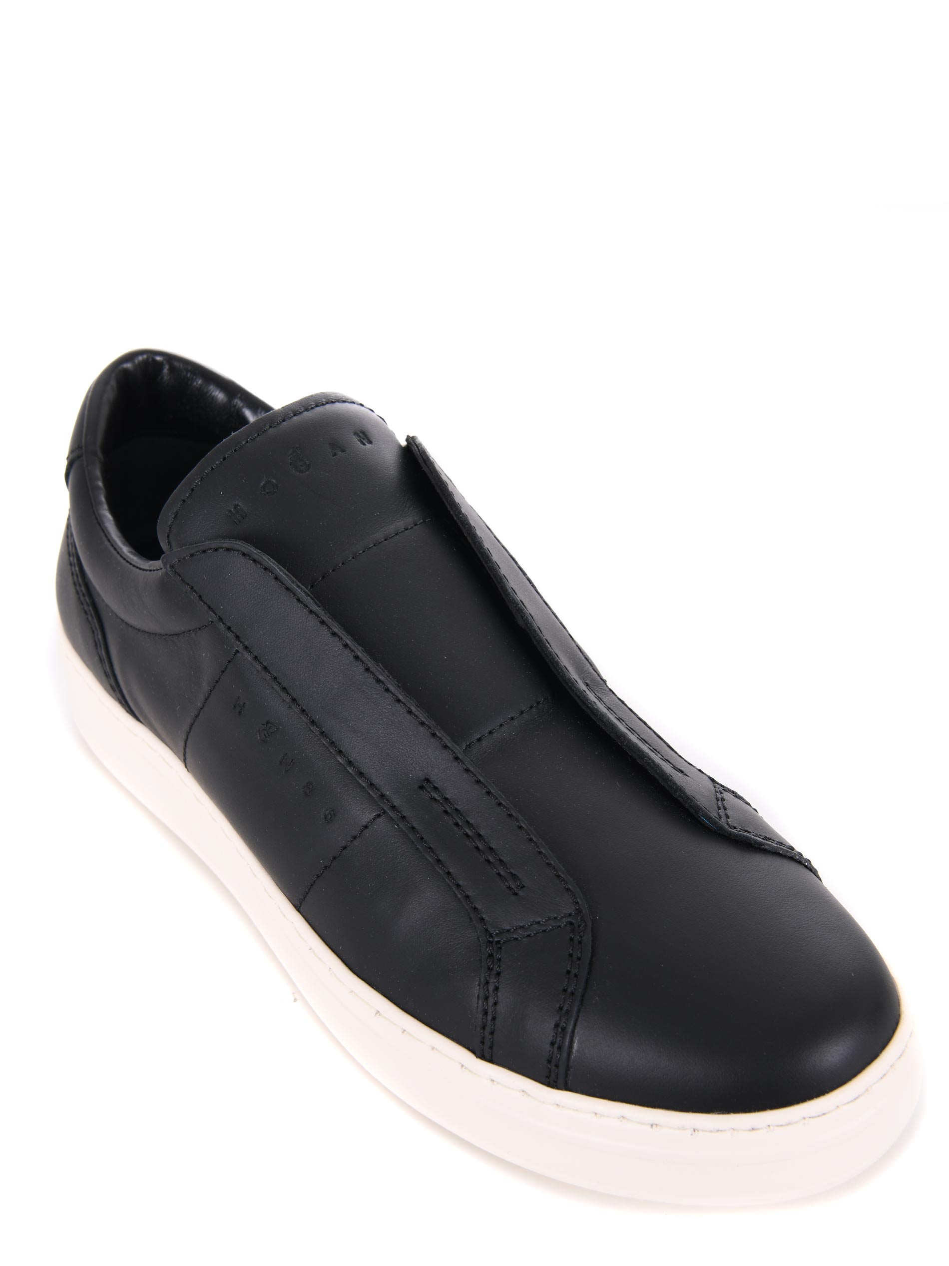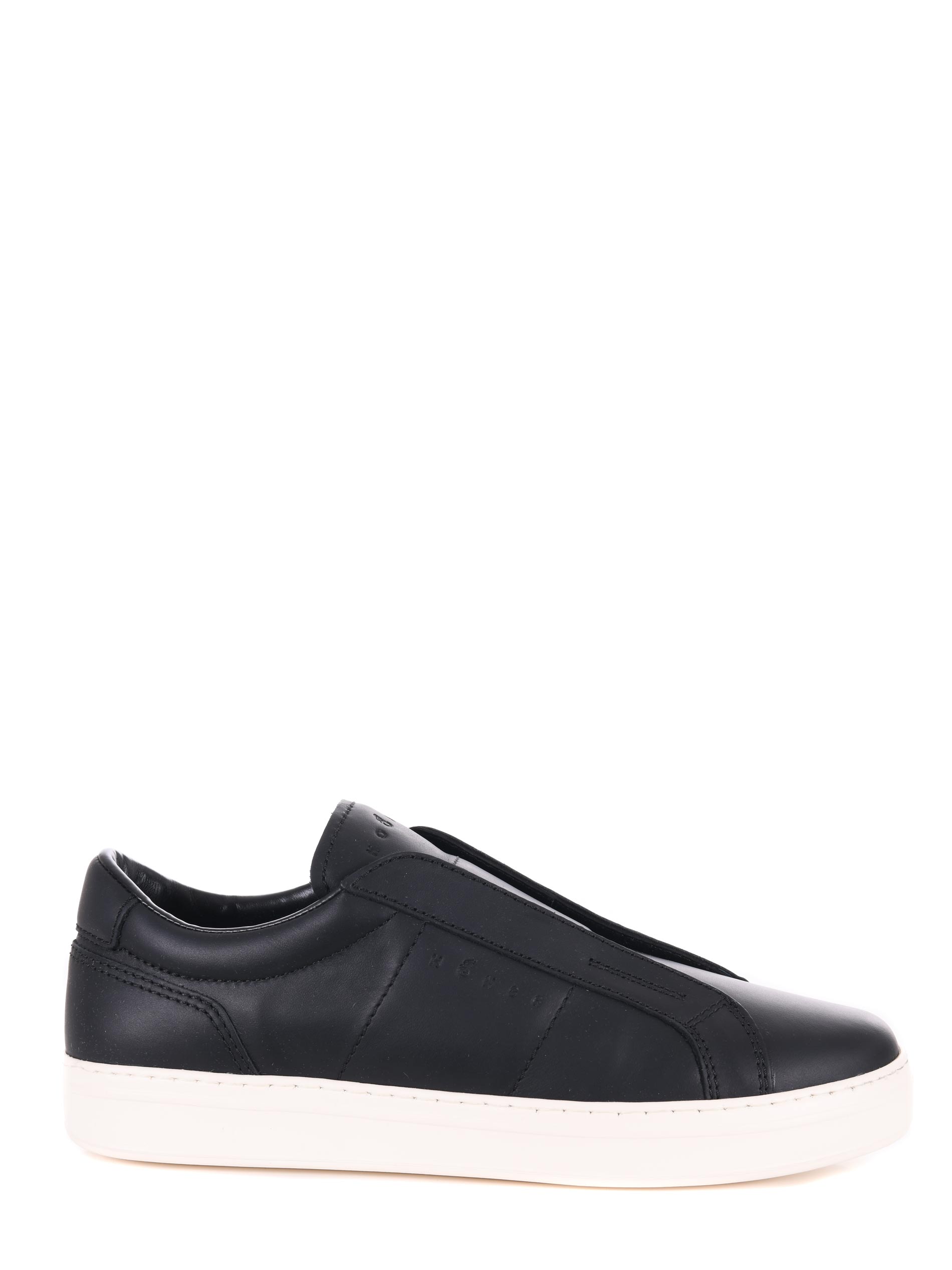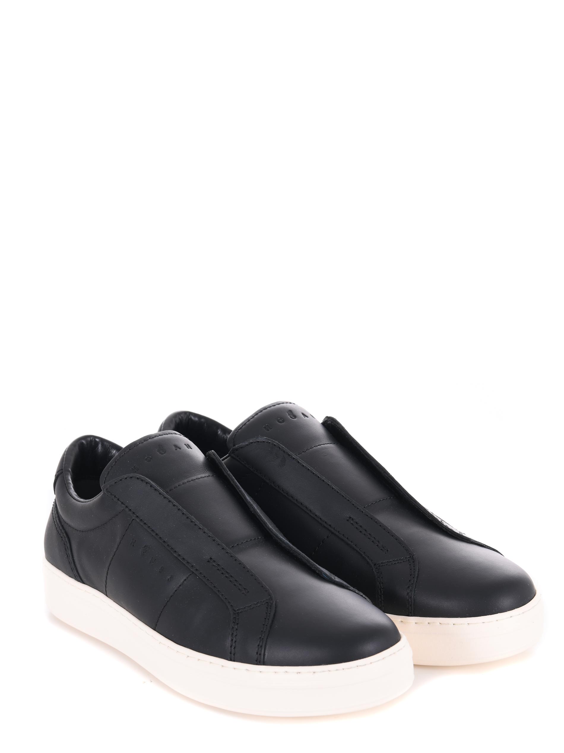 Sneakers Hogan slip on "H-TV" in pelle Nero. Lettering logo "Hogan" laterale impresso.