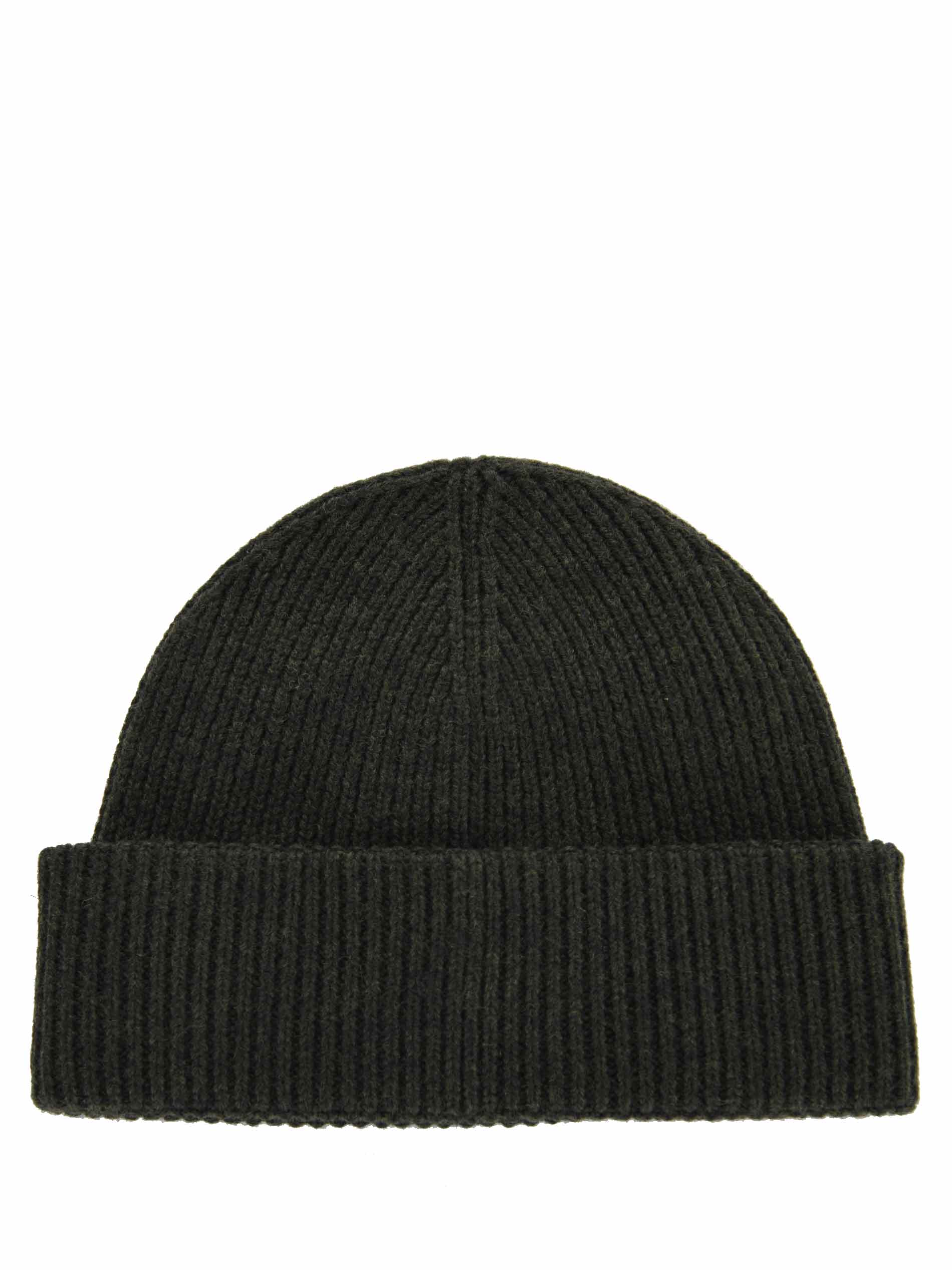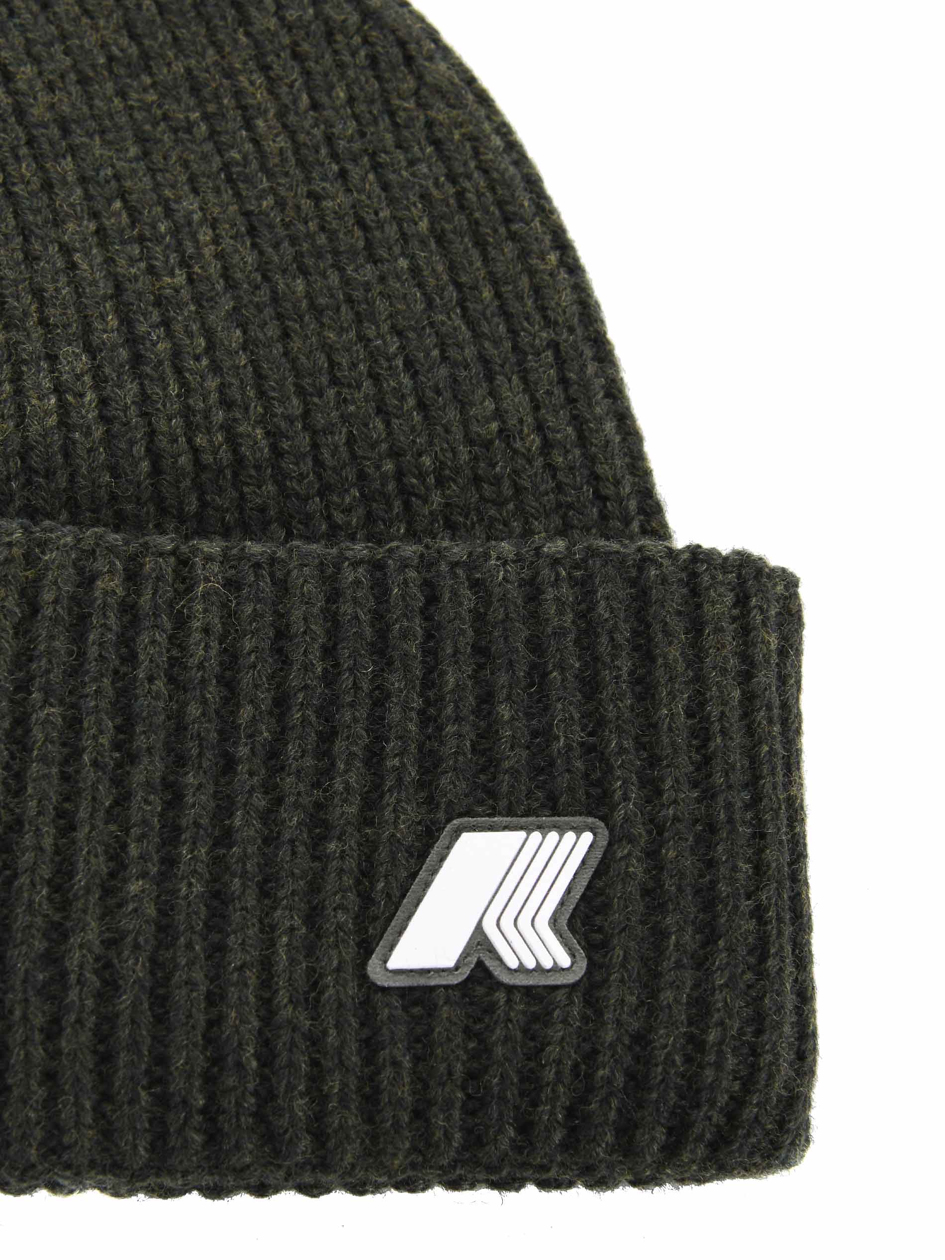 Cappello K-Way in lana a coste Verde scuro. Patch logo in gomma applicato sul risvolto.