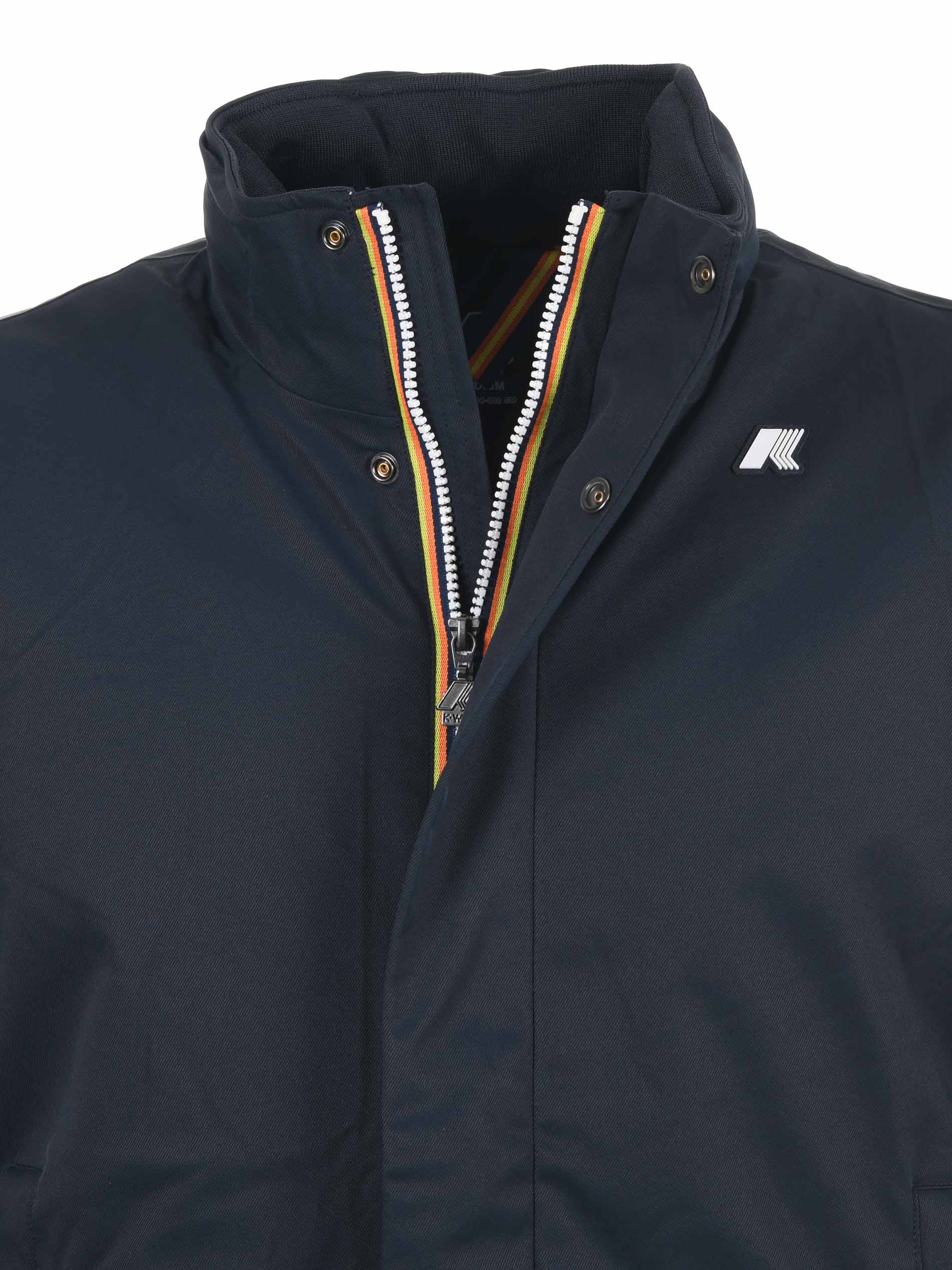 Giubbotto K-Way in twill di nylon Blu scuro. Imbottito in Primaloft. Cappuccio con coulisse. Chiusura con zip e bottoni a pressione coperti da fintone. Tasche sui fianchi. Foderato in pile "marmotta". Tasche interne. Logo frontale. Grado di calore medio.