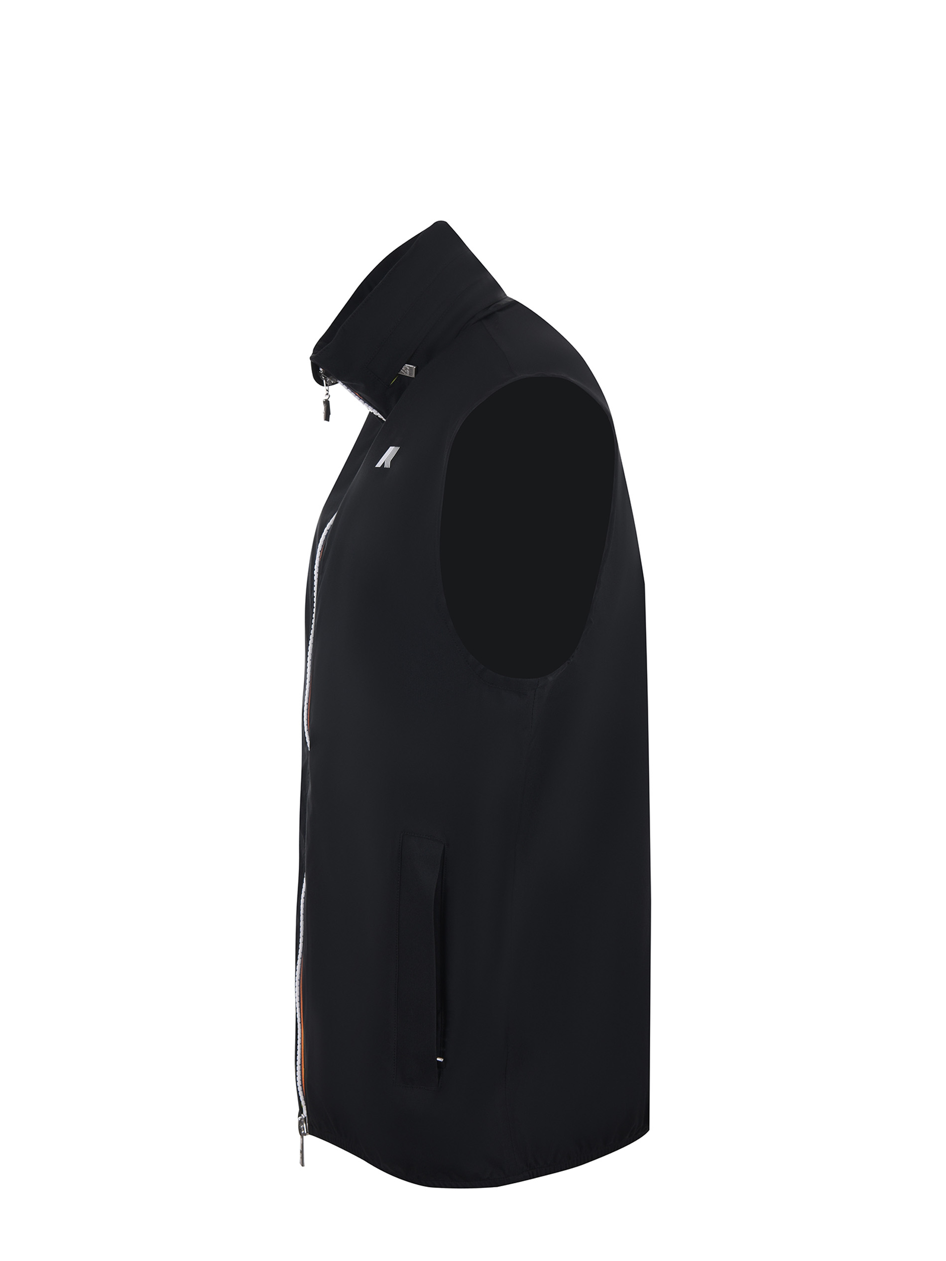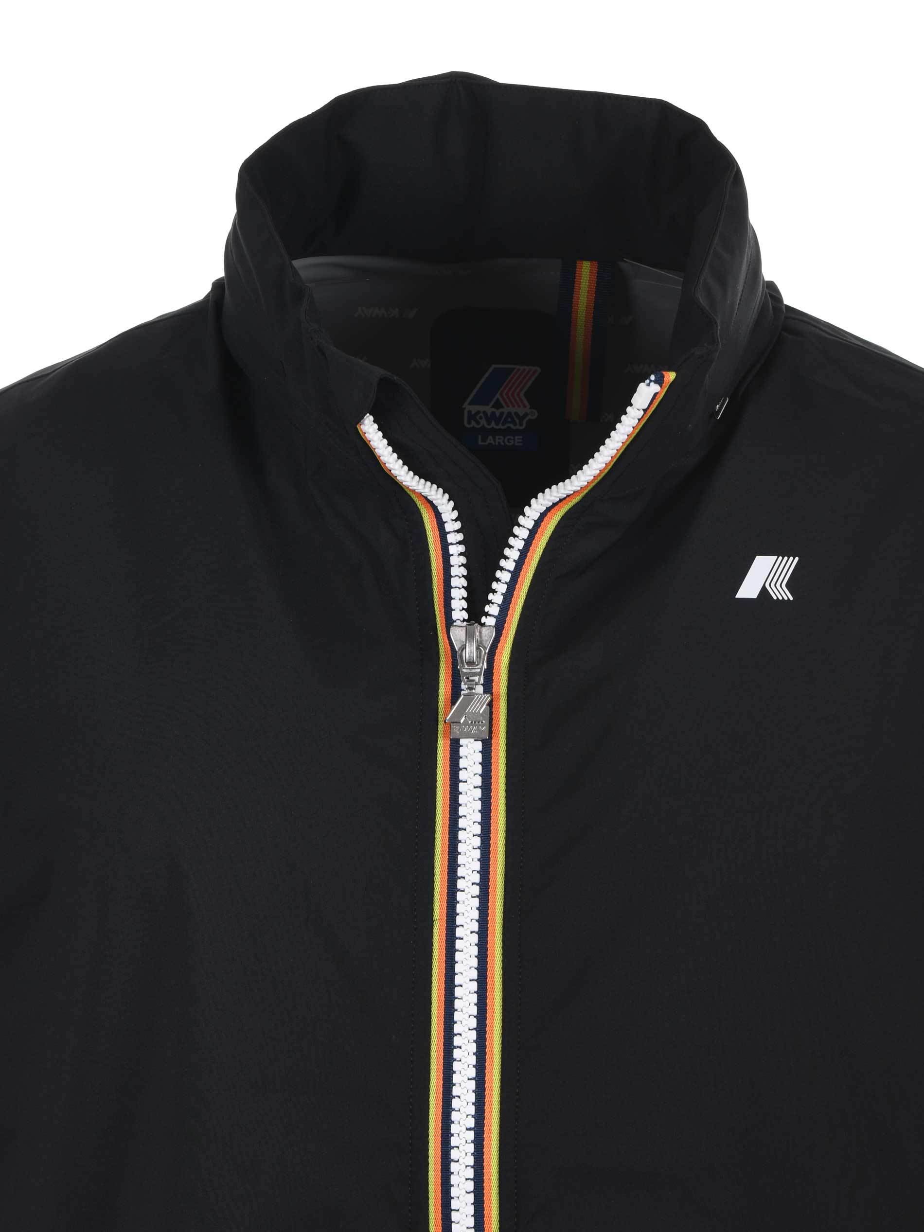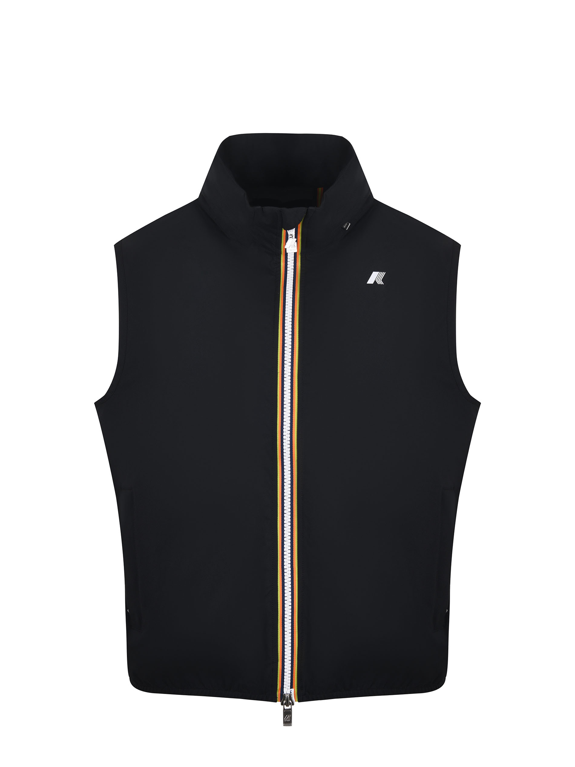 Giubbotto smanicato K-Way in nylon stretch Nero. Impermeabile. Idrorepellente. Antivento. Non imbottito. Non foderato. Collo alto. Cappuccio estraibile. Chiusura con zip doppio cursore. 2 tasche con zip. Logo frontale. Interno logato.