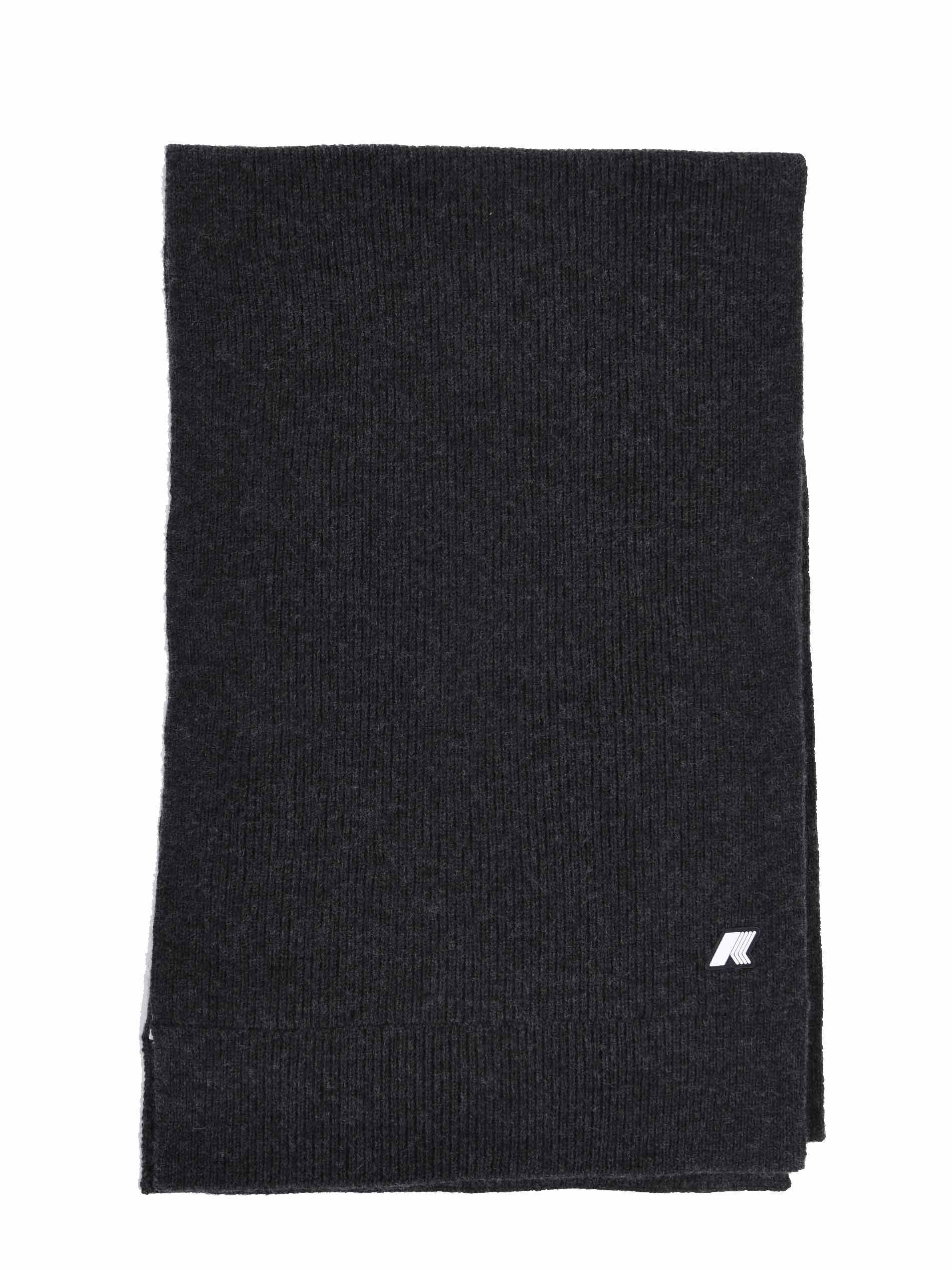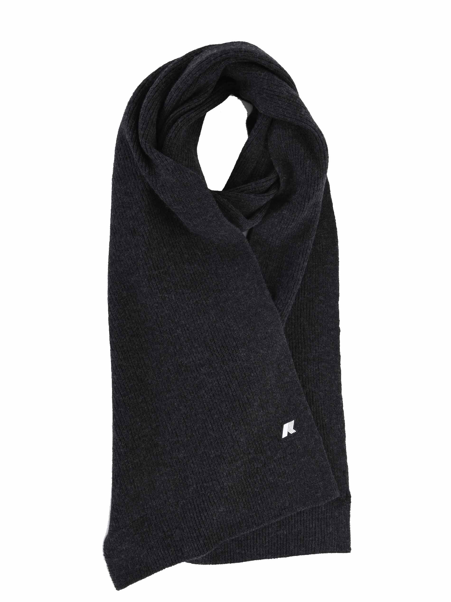Sciarpa K-Way in lana a coste Nero. Logo in gomma.