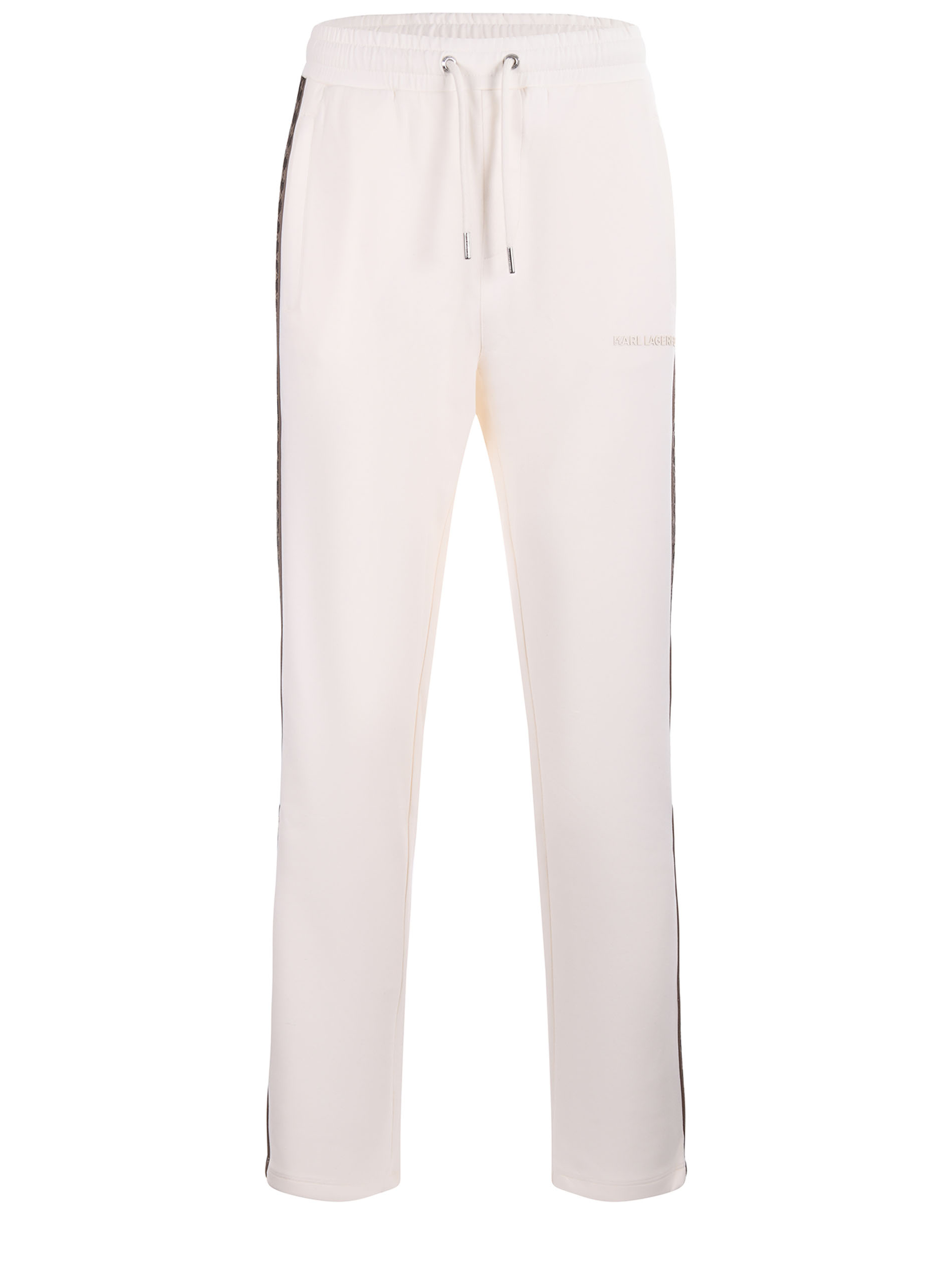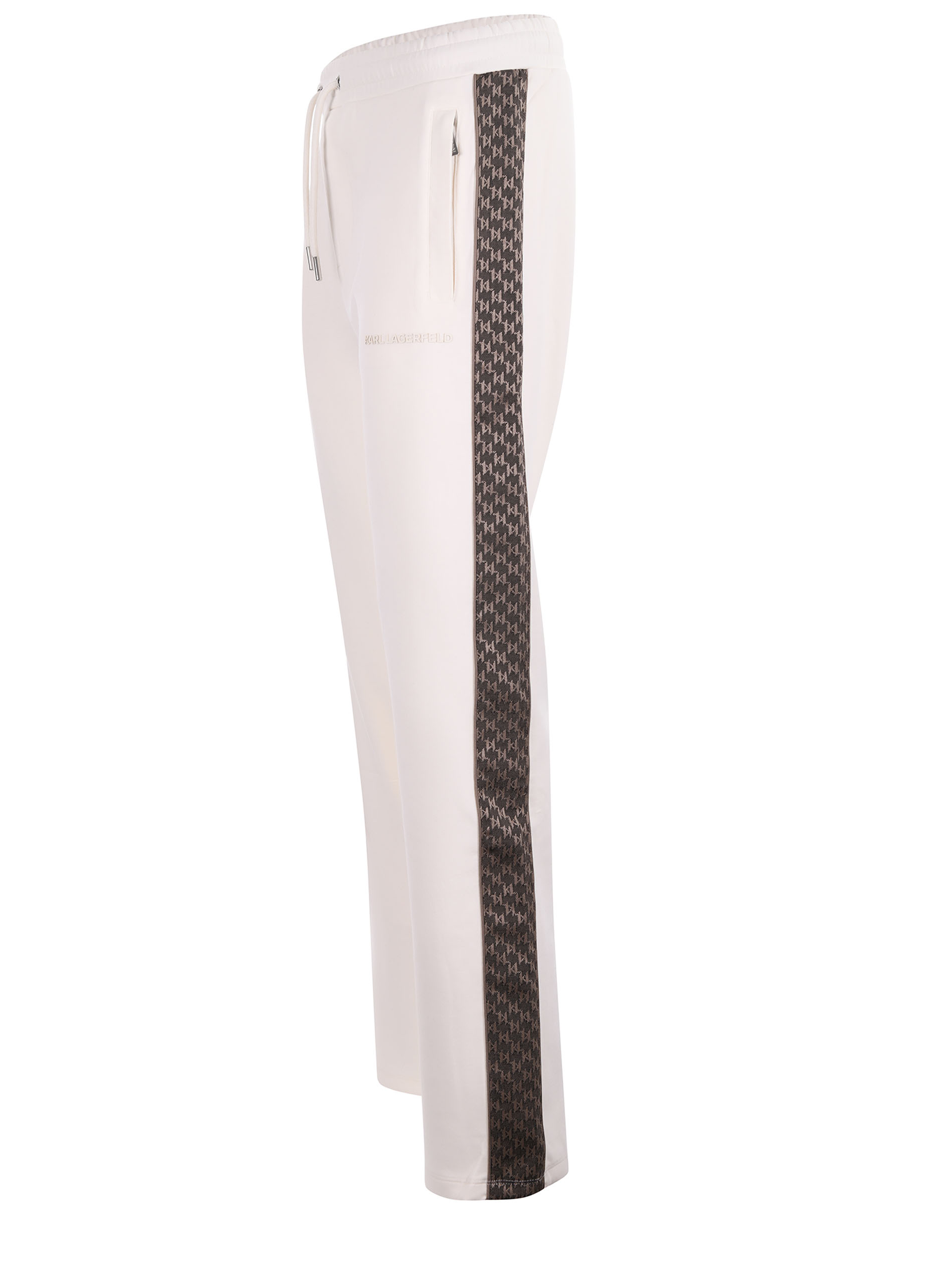 Pantaloni jogging Karl Lagerfeld in neoprene Avorio. Elastico in vita con coulisse. Banda a contrasto a trama monogram laterali. Tasche a filo.