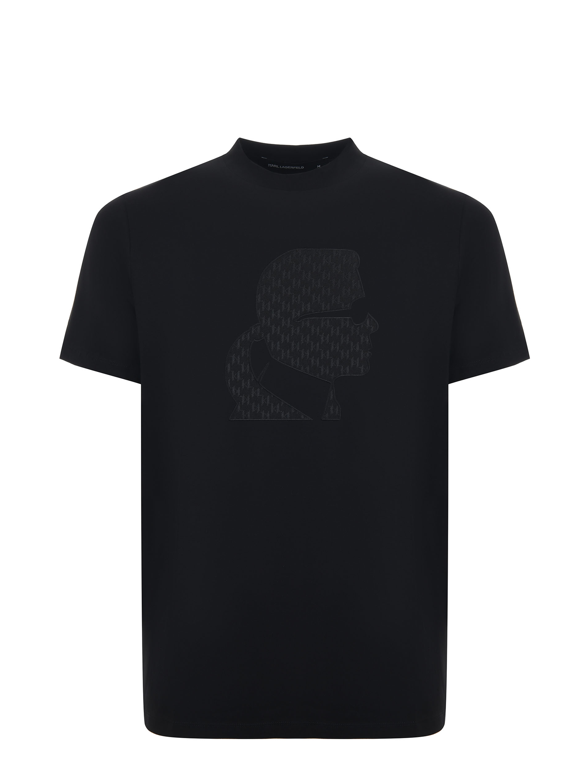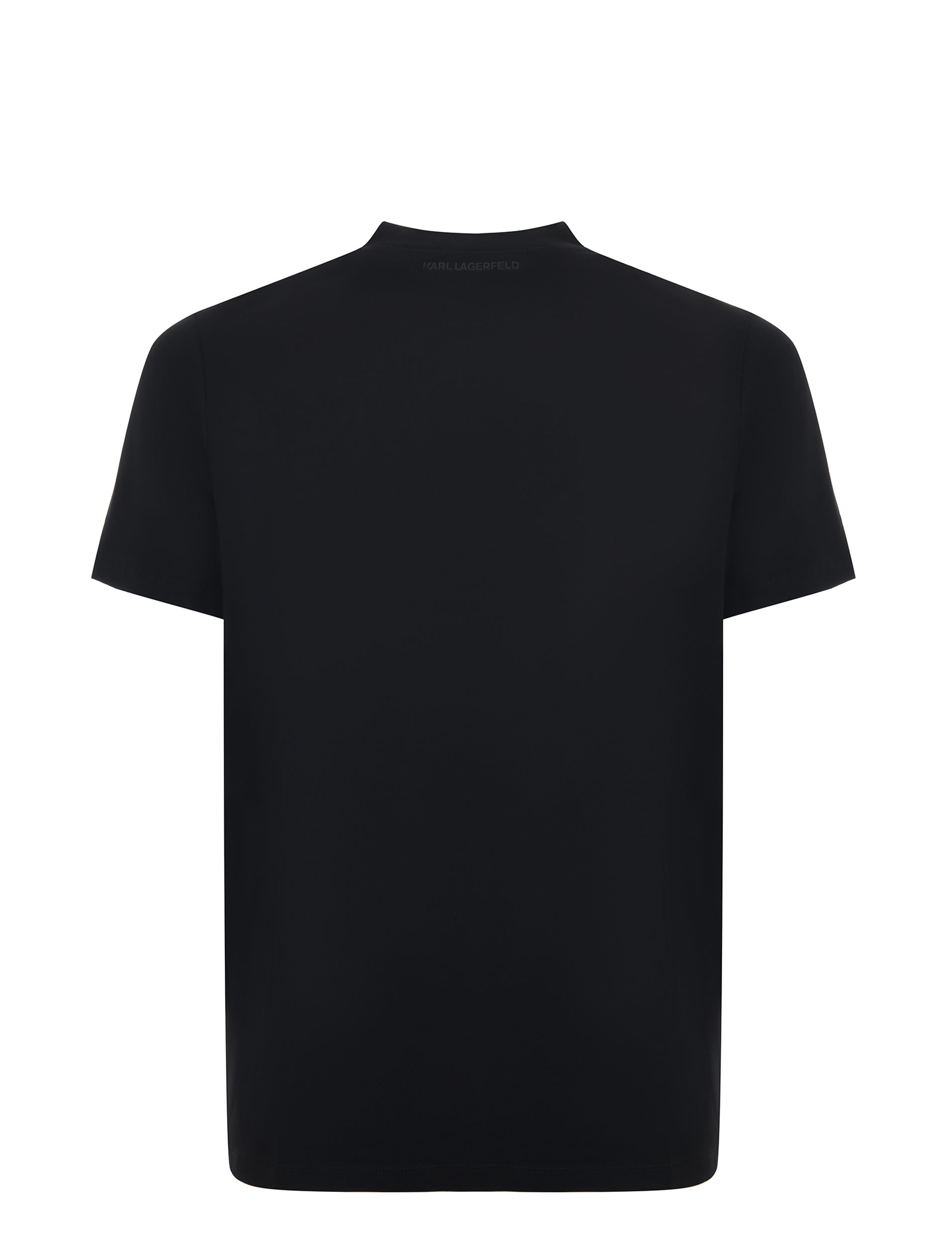 T-shirt Karl Lagerfeld in jersey di viscosa Nero. Girocollo a costine. Inserto jacquard a contrasto motivo monogram sul petto. Manica corta. Logo frontale in tono.