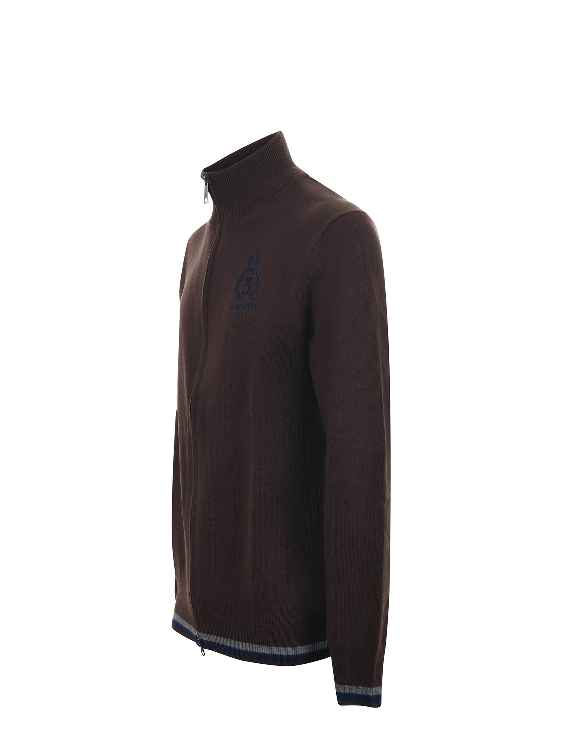 Cardigan La Martina in misto cotone e lana Marrone. Collo alto. Polsi e fondo a costine con profili in contrasto. Chiusura con zip. Logo frontale ricamato. Regular fit.