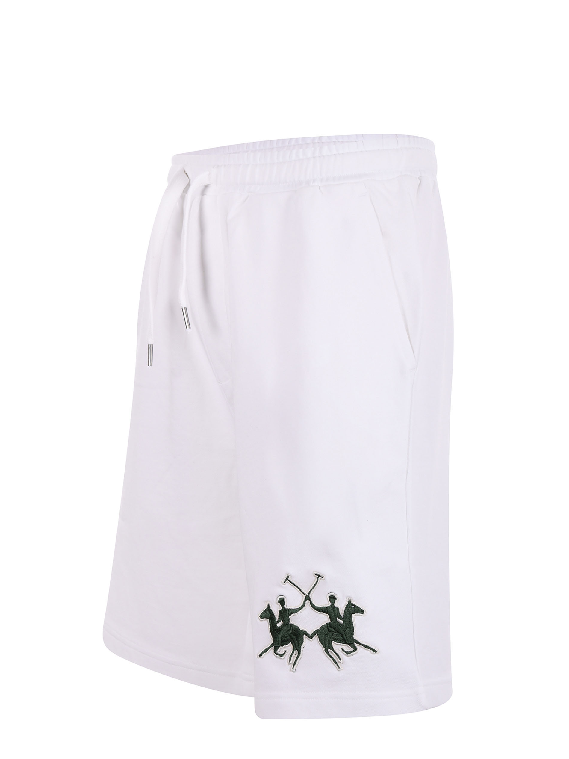 Short La Martina in felpa di cotone Bianco. Elastico in vita con coulisse. Tasche america. Tasca a toppa sul retro. Ricamo frontale.