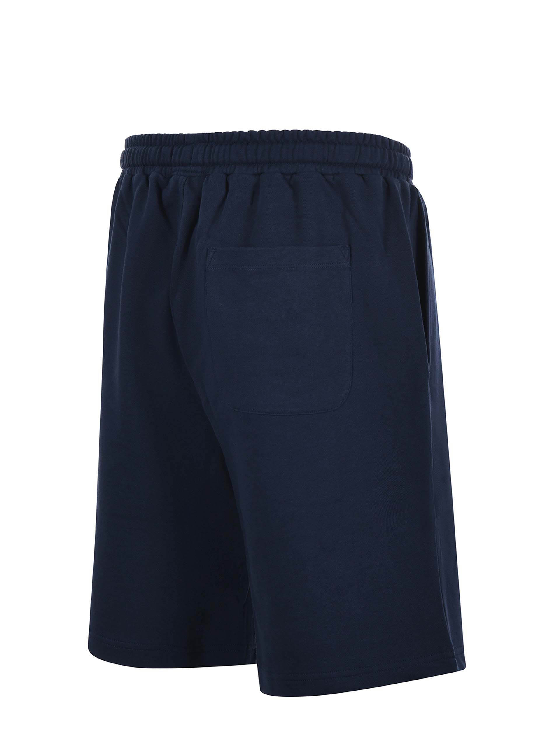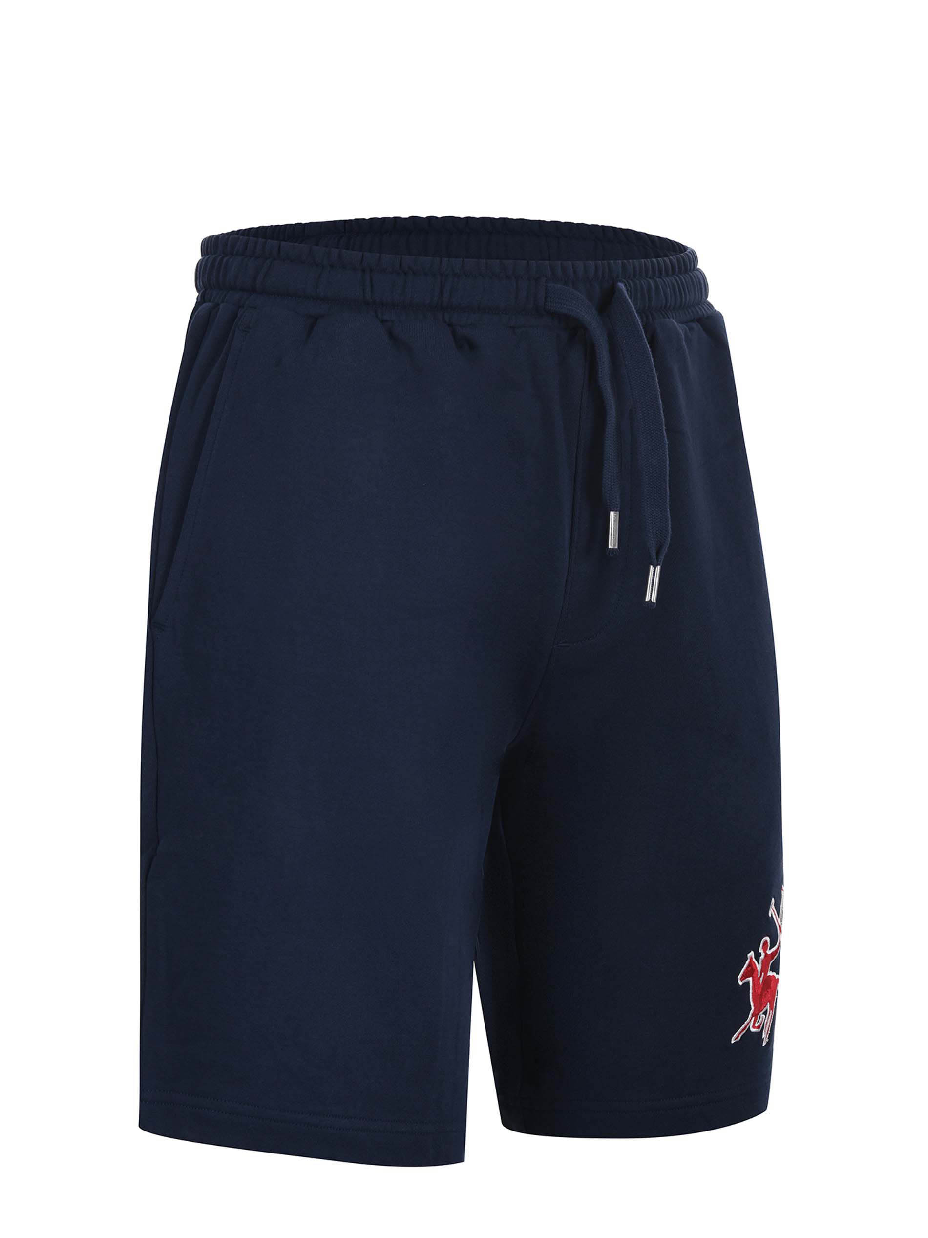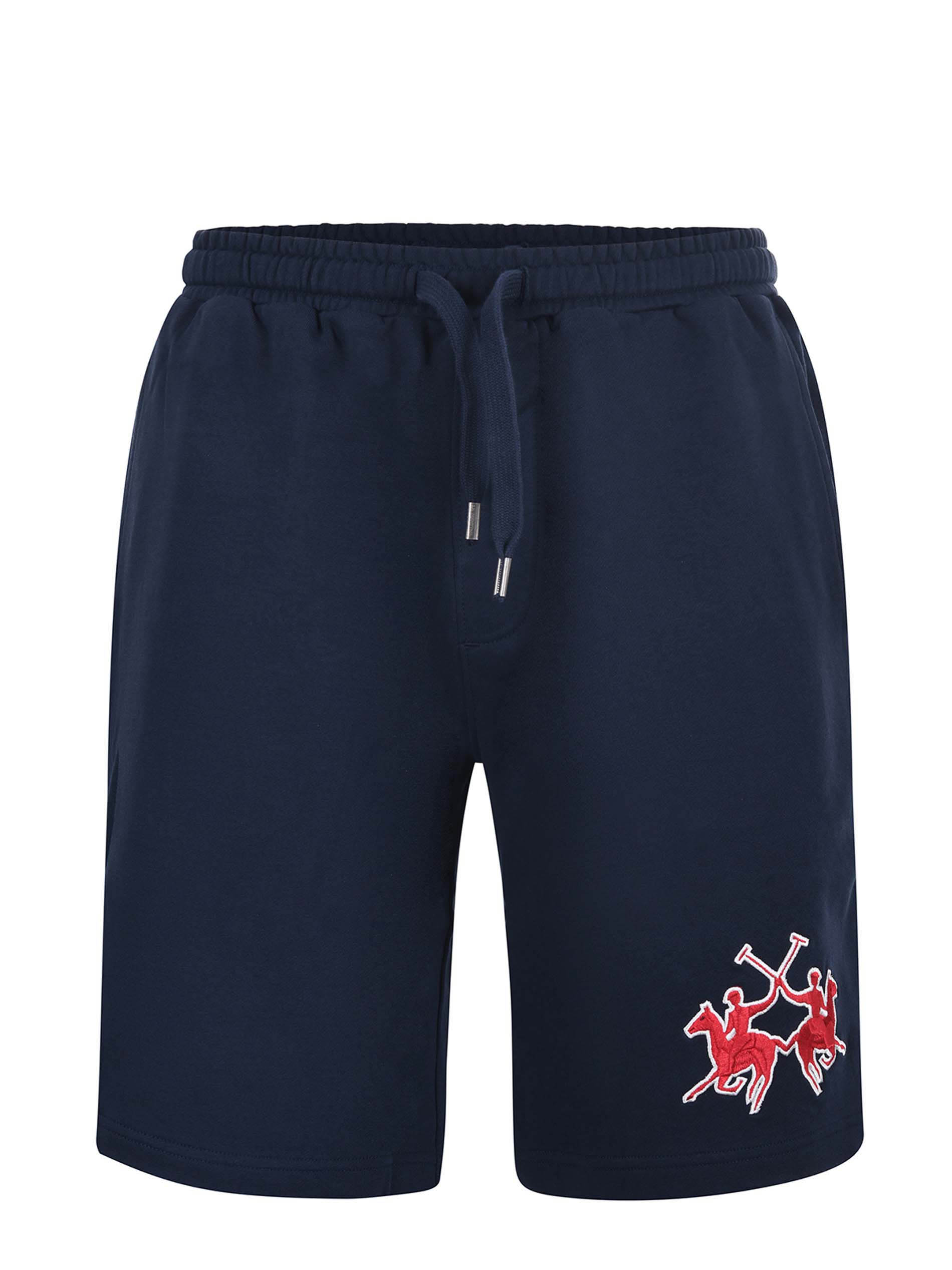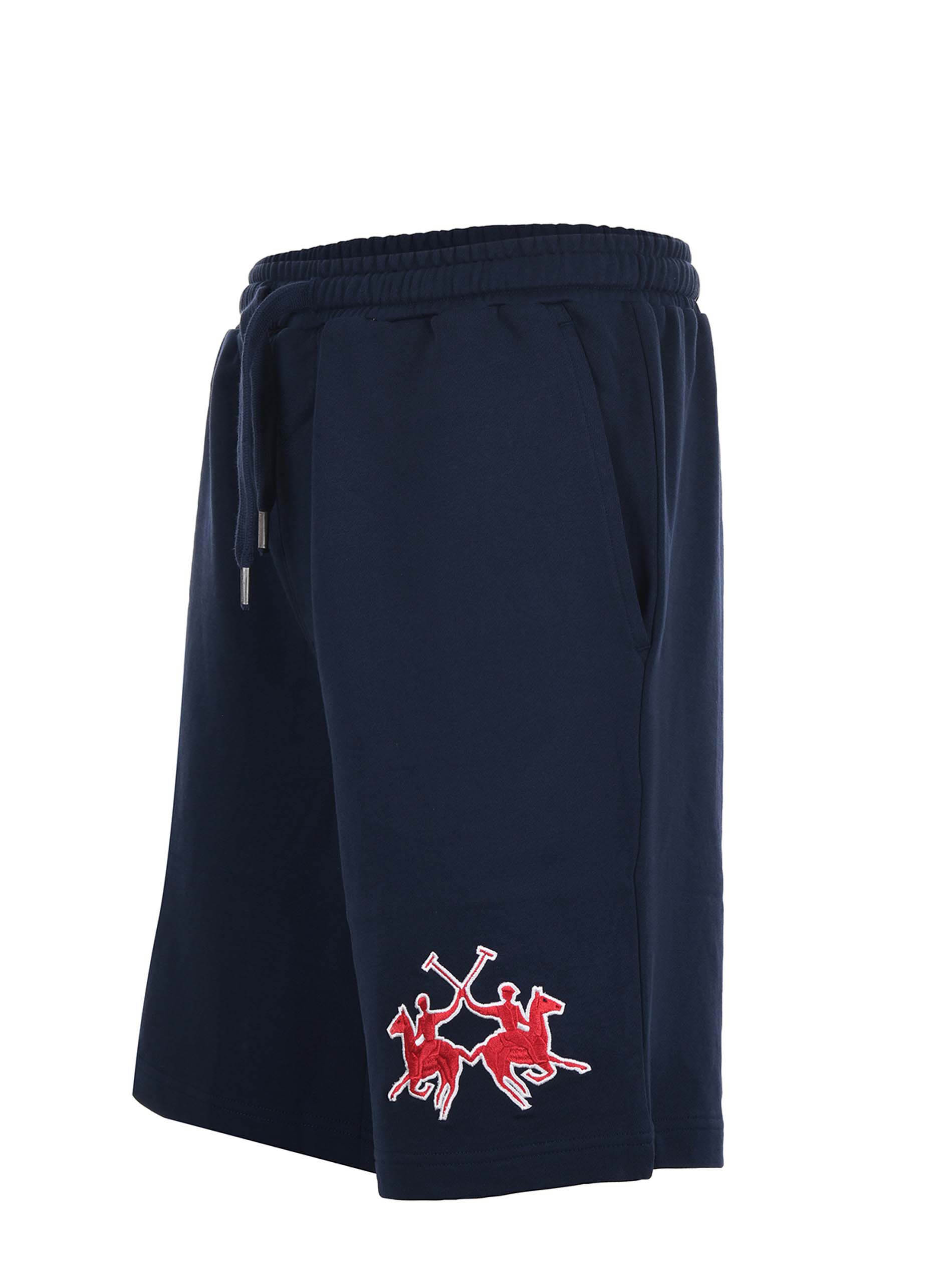 Short La Martina in felpa di cotone Blu scuro. Elastico in vita con coulisse. Tasche america. Tasca a toppa sul retro. Ricamo frontale.
