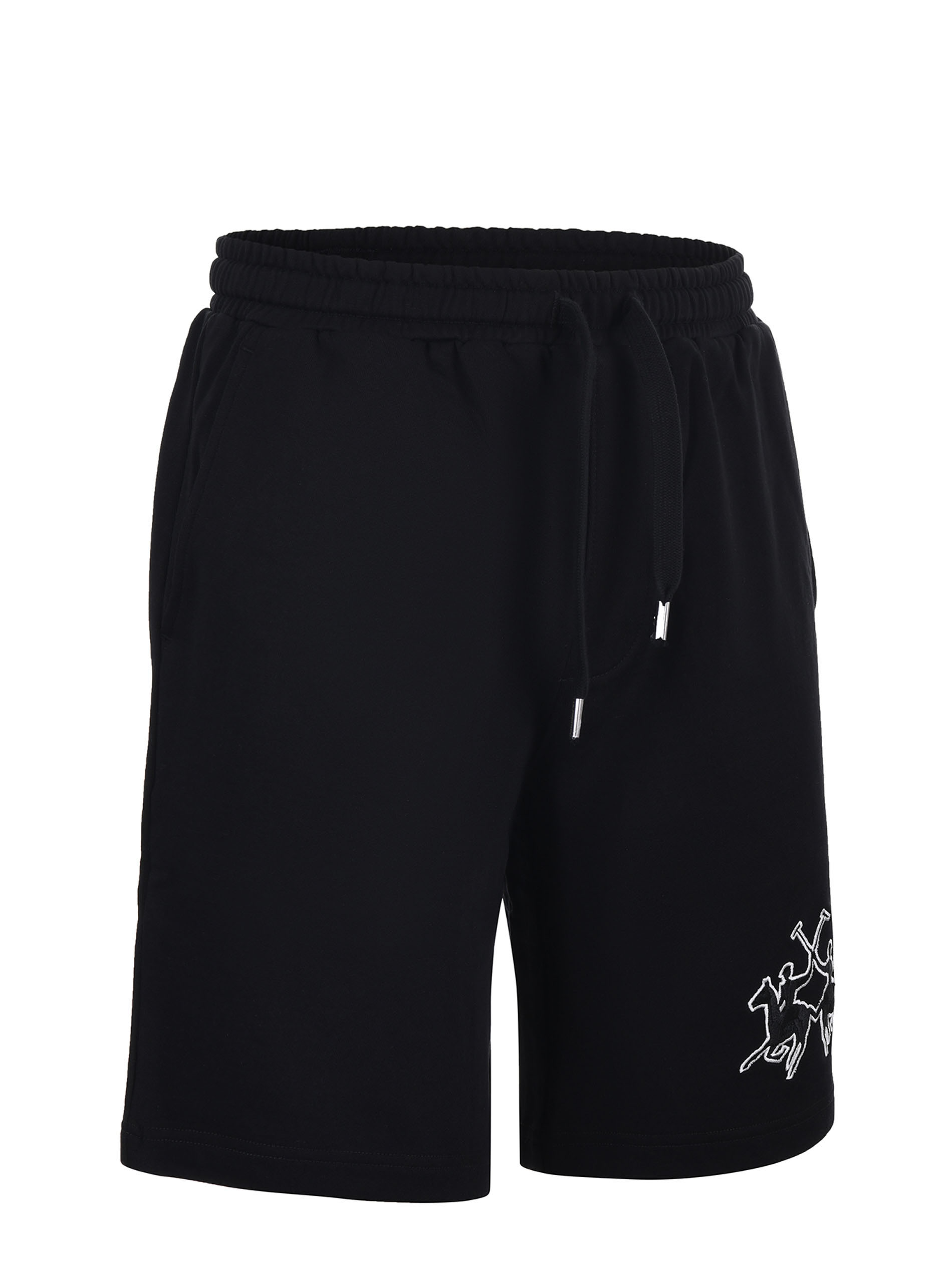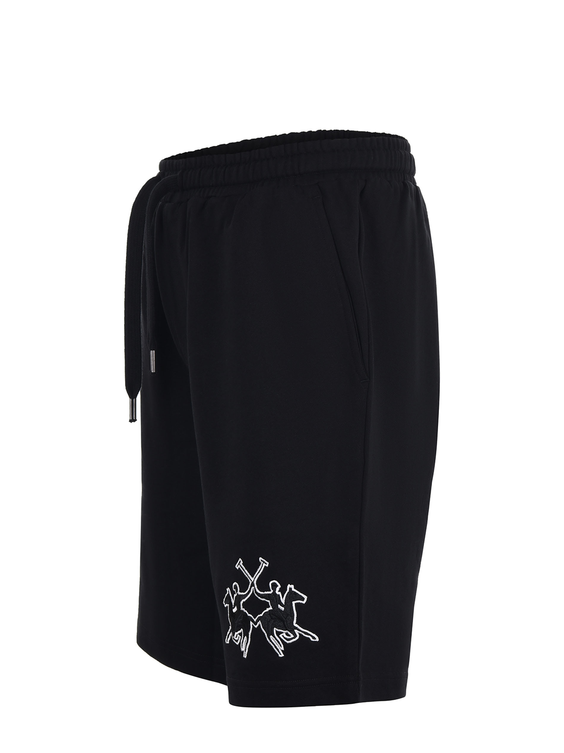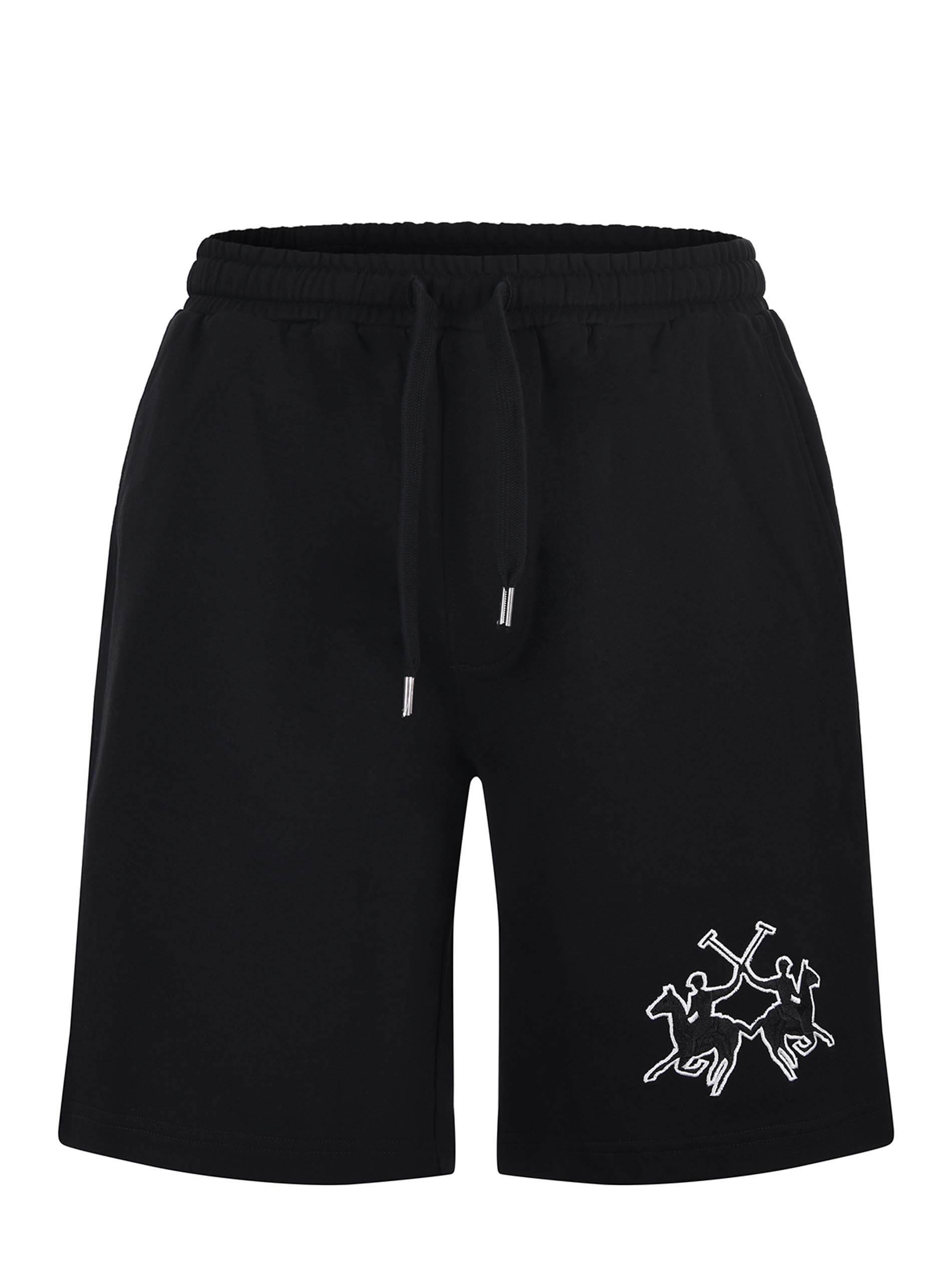 Short La Martina in felpa di cotone Nero. Elastico in vita con coulisse. Tasche america. Tasca a toppa sul retro. Ricamo frontale.