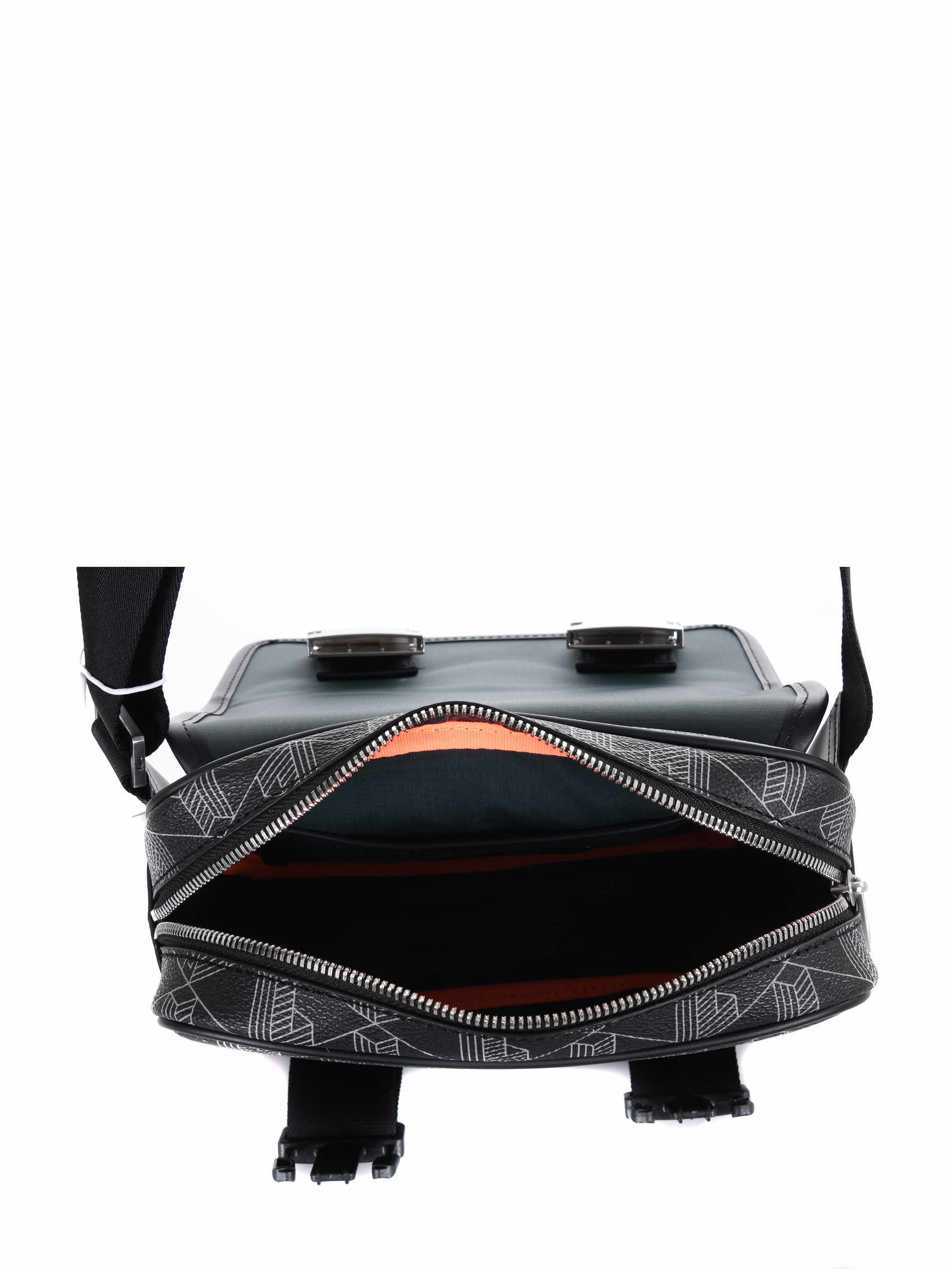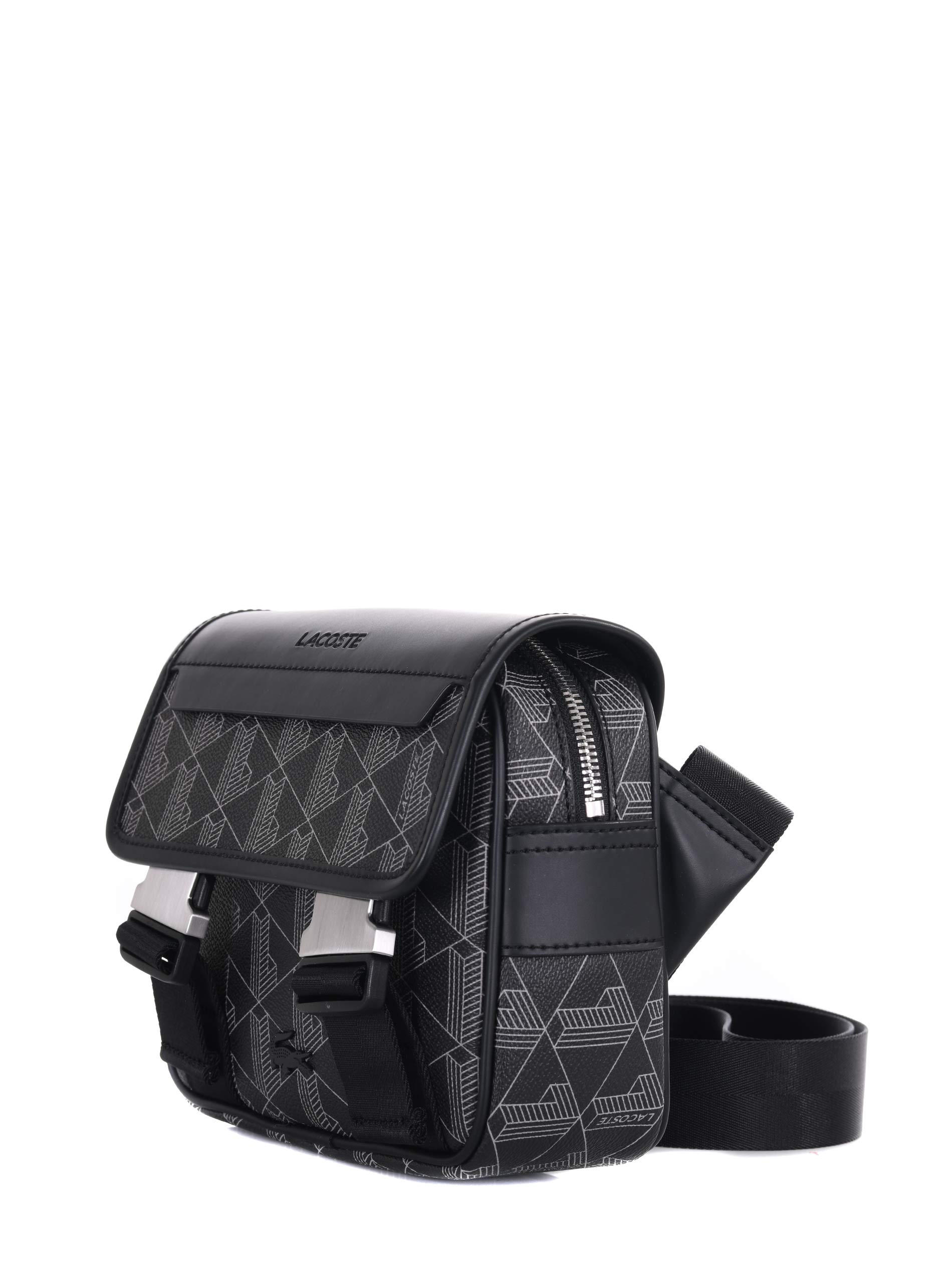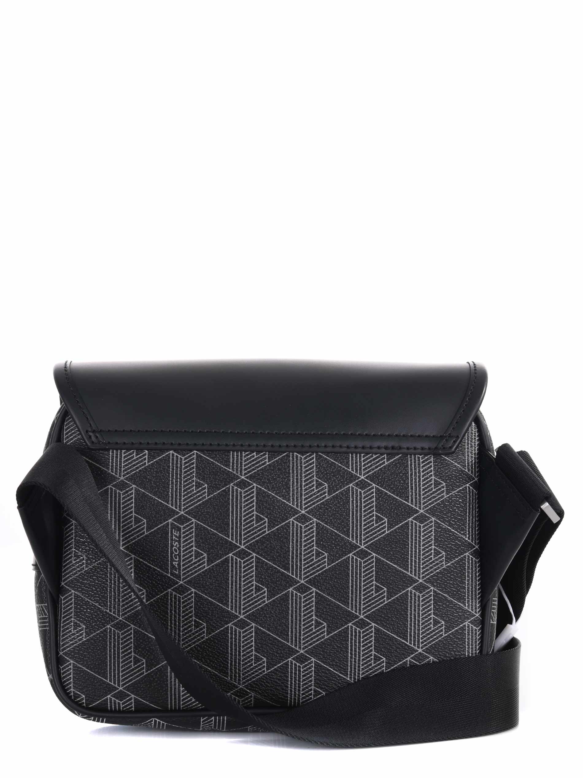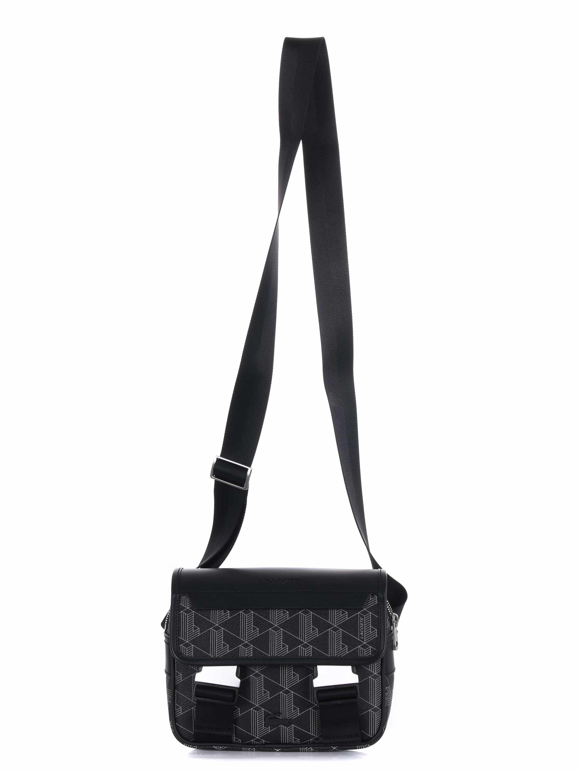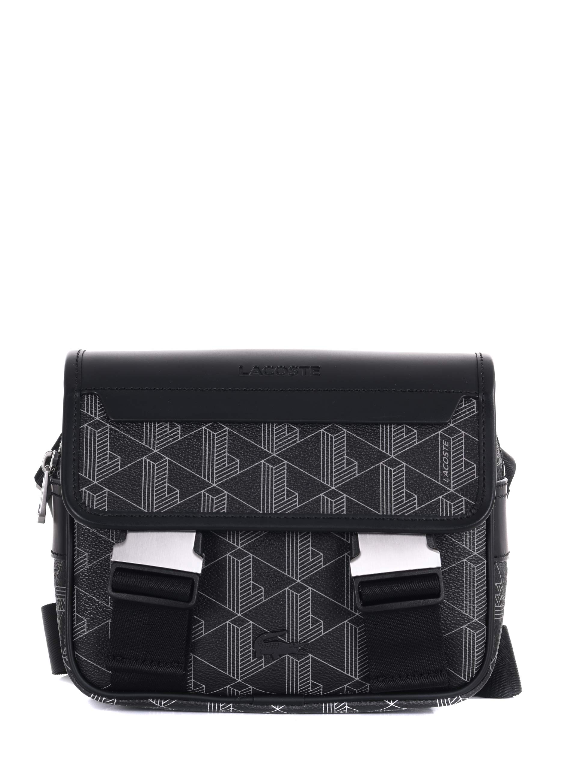 Borsa a tracolla Lacoste in ecopelle Nera stampa monogram. Tracolla in webbing regolabile. Patta frontale con doppia fibbia. Tasca interna. Chiusura interna con zip. Logo impresso davanti.