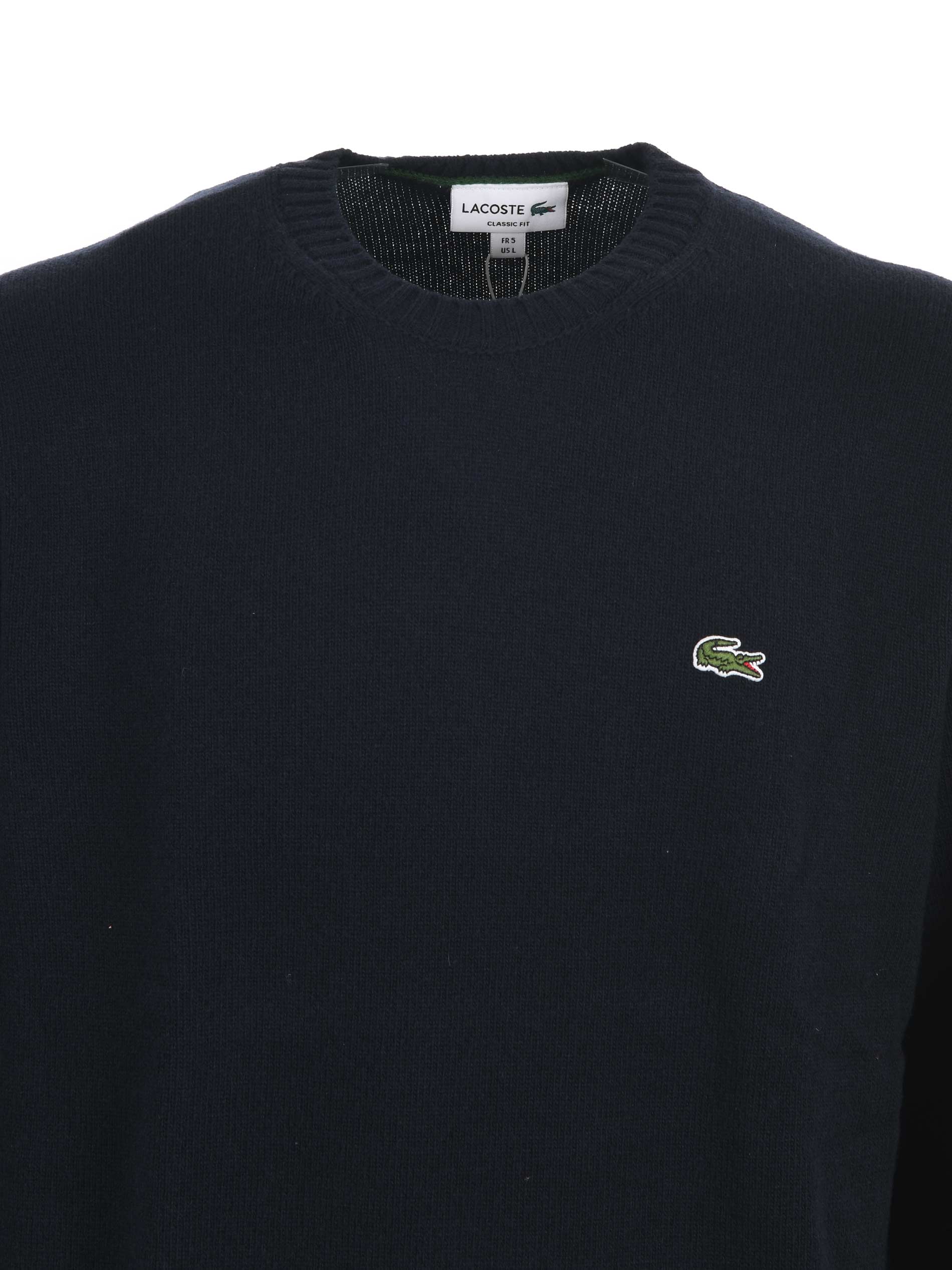 Maglia Lacoste in lana Blu scuro. Girocollo a costine. Manica lunga. Polsi e fondo a costine. Logo frontale. Classic fit.
