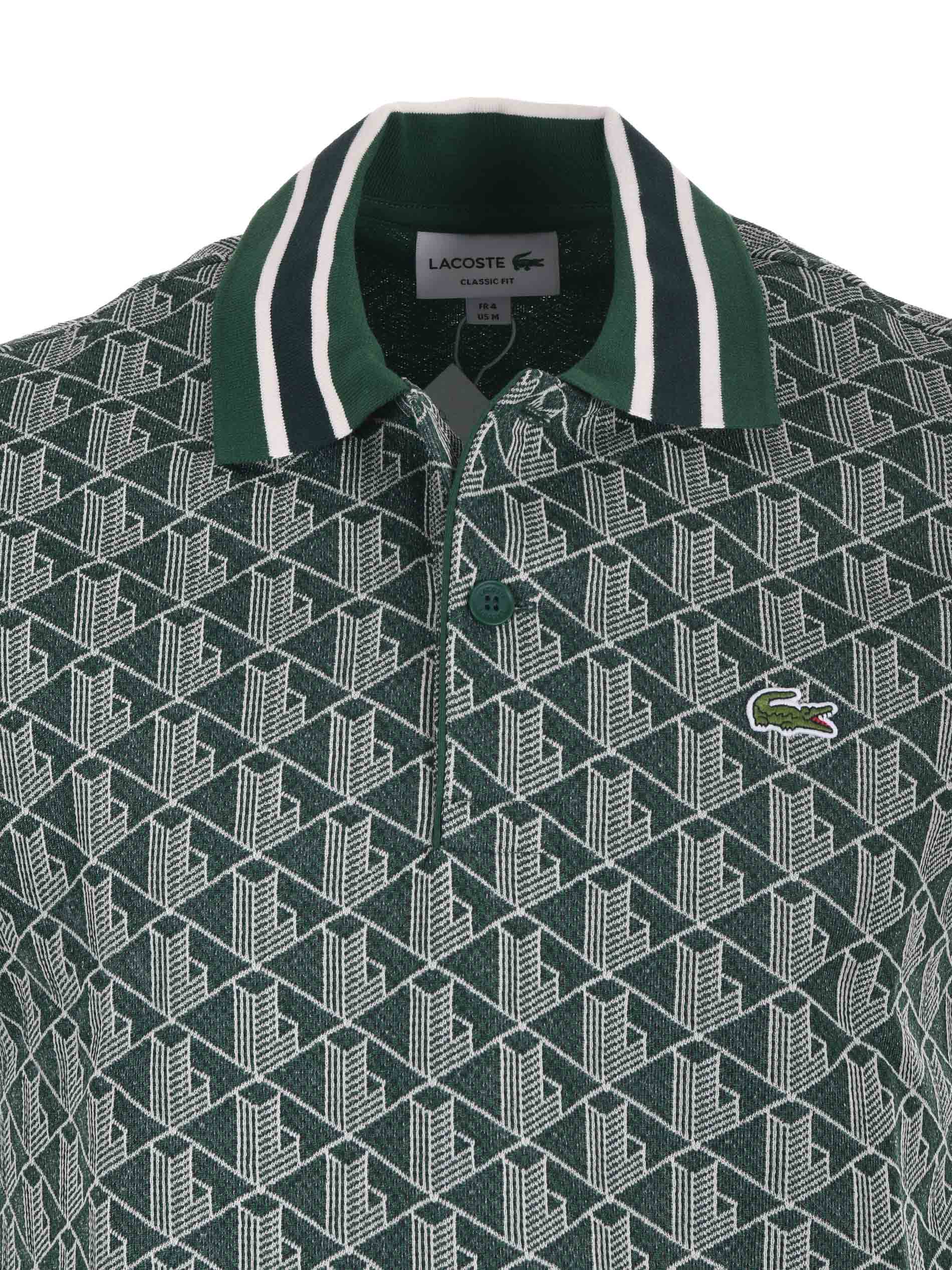 Polo Lacoste in filo di cotone jacquard Verde scuro. Trama monogram. Colletto a costine e a tre colori. Manica corta. Chiusura con 2 bottoni. Logo frontale. Classic fit.