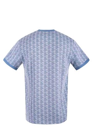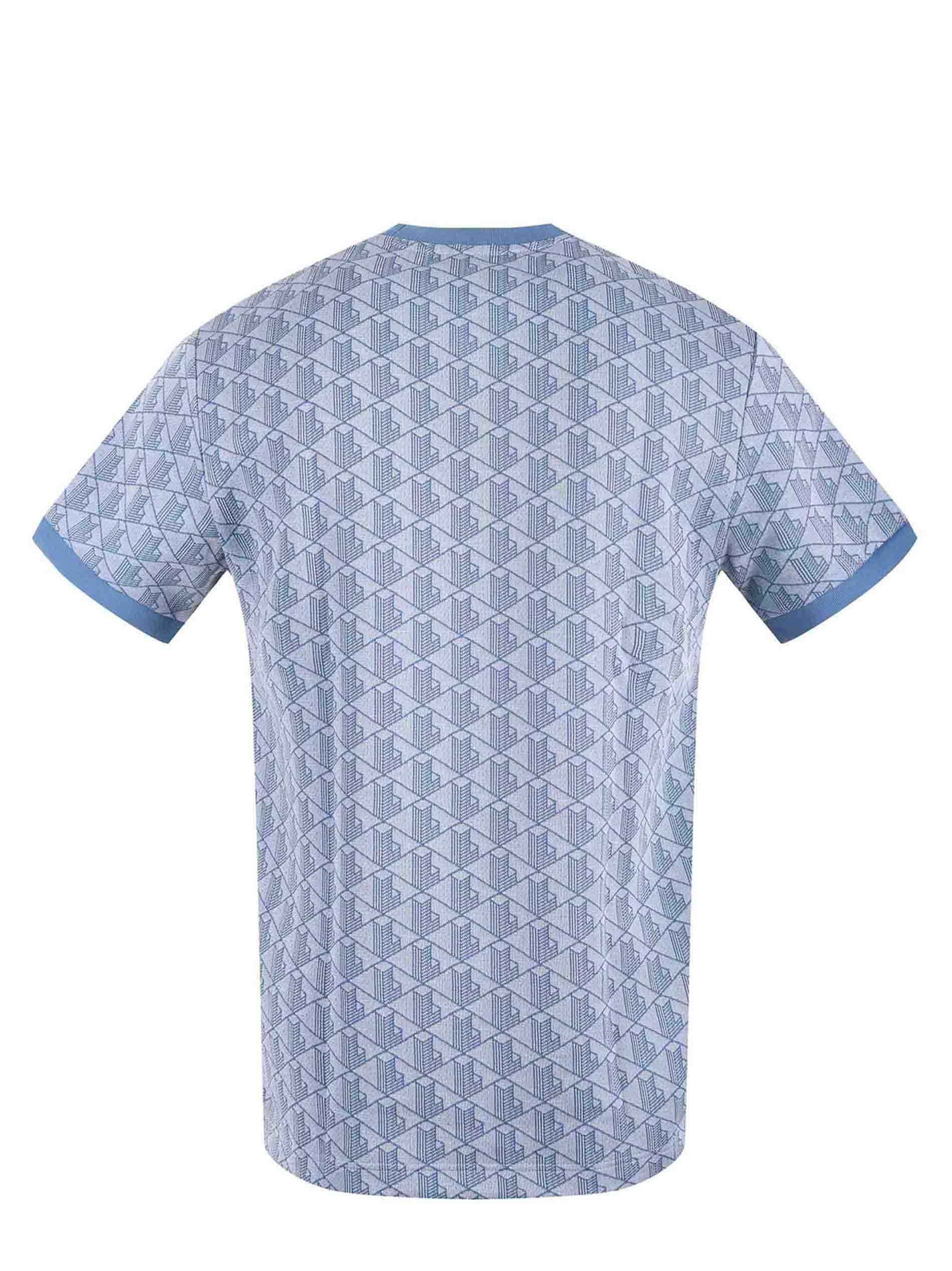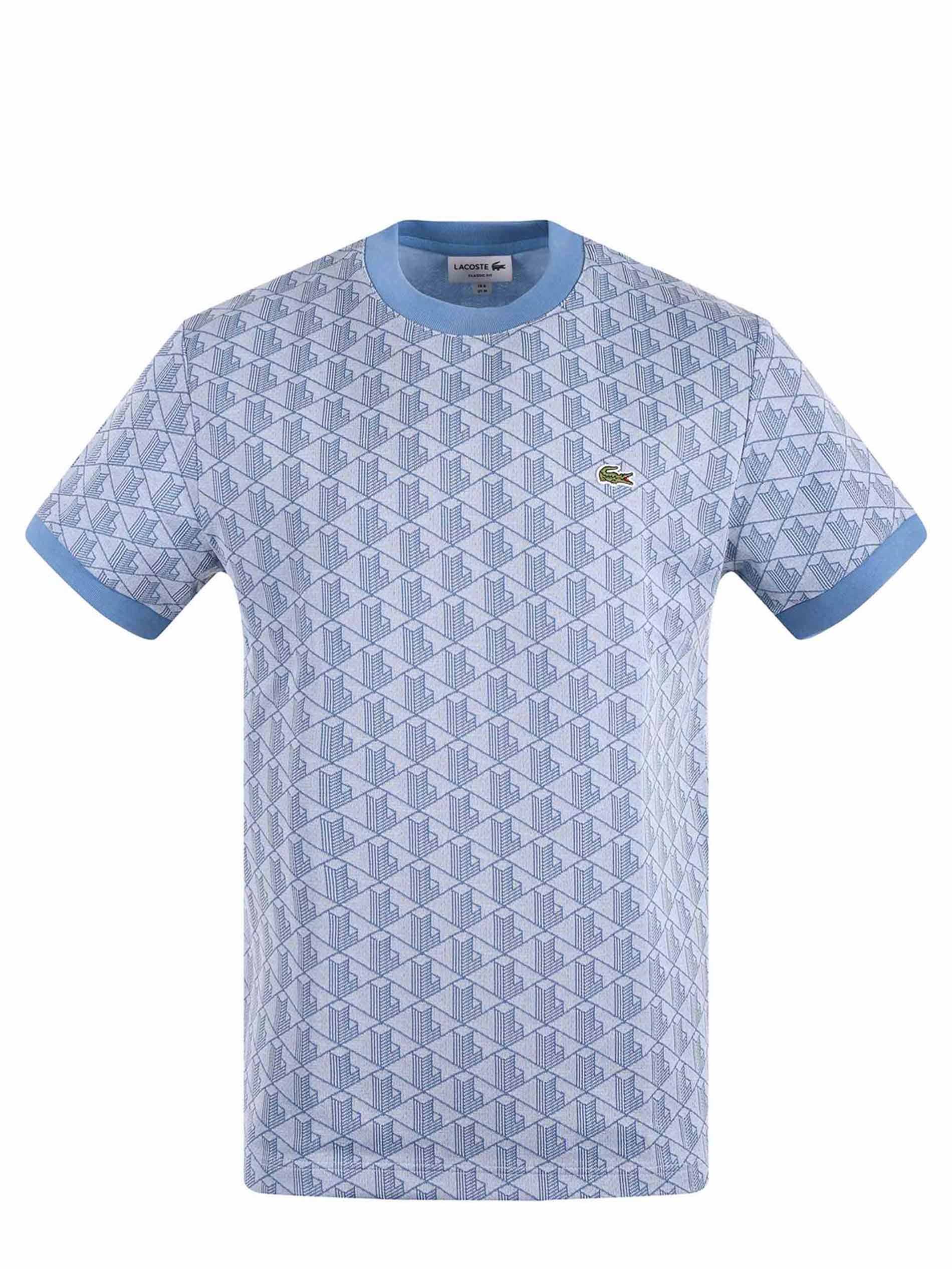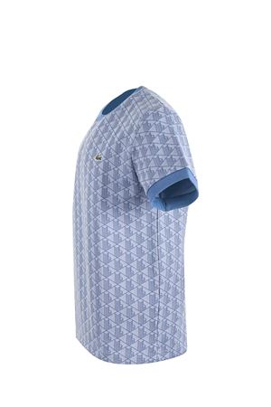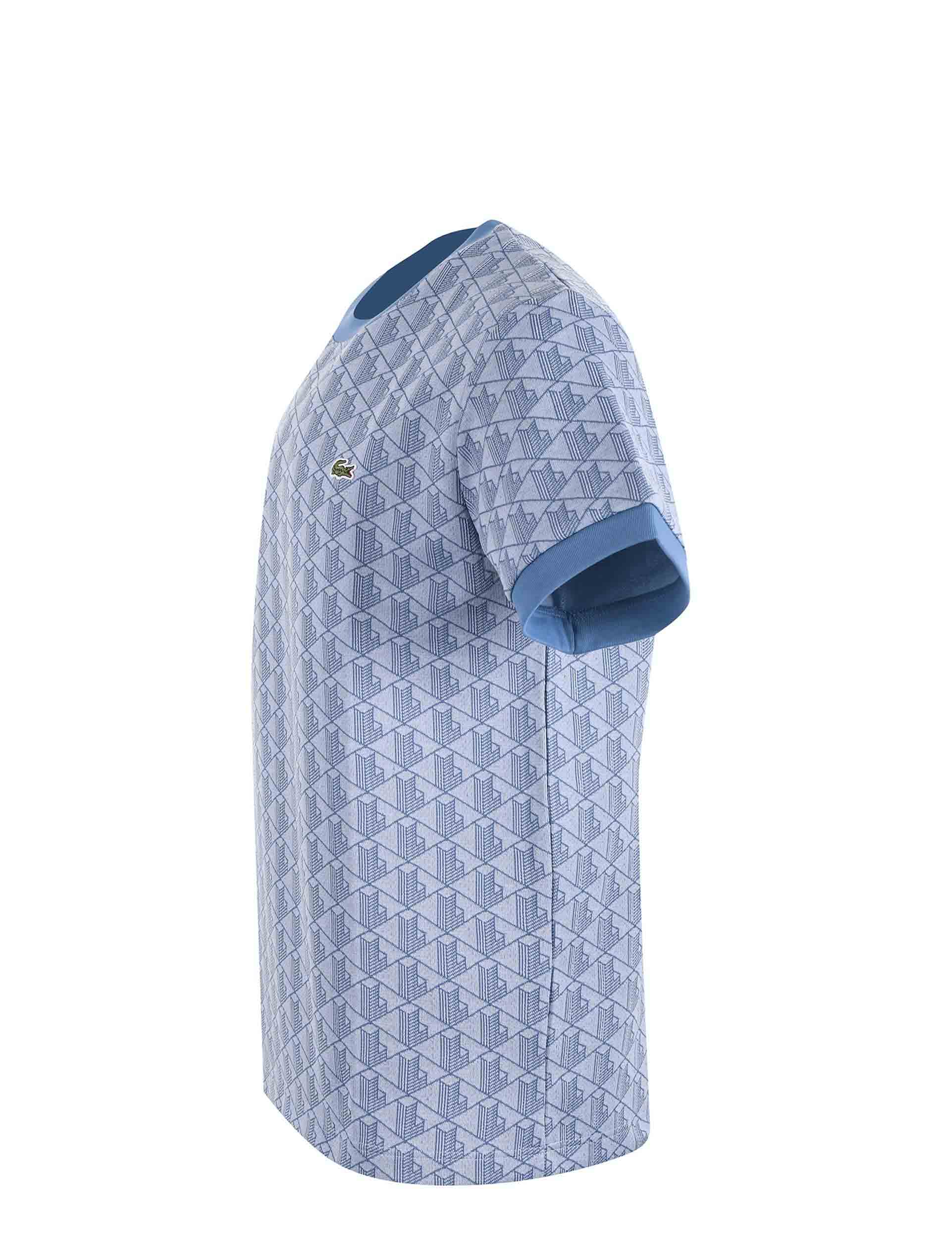 T-shirt Lacoste in tessuto tecnico jacquard Azzurro motivo monogram. Girocollo a costine. Manica corta.