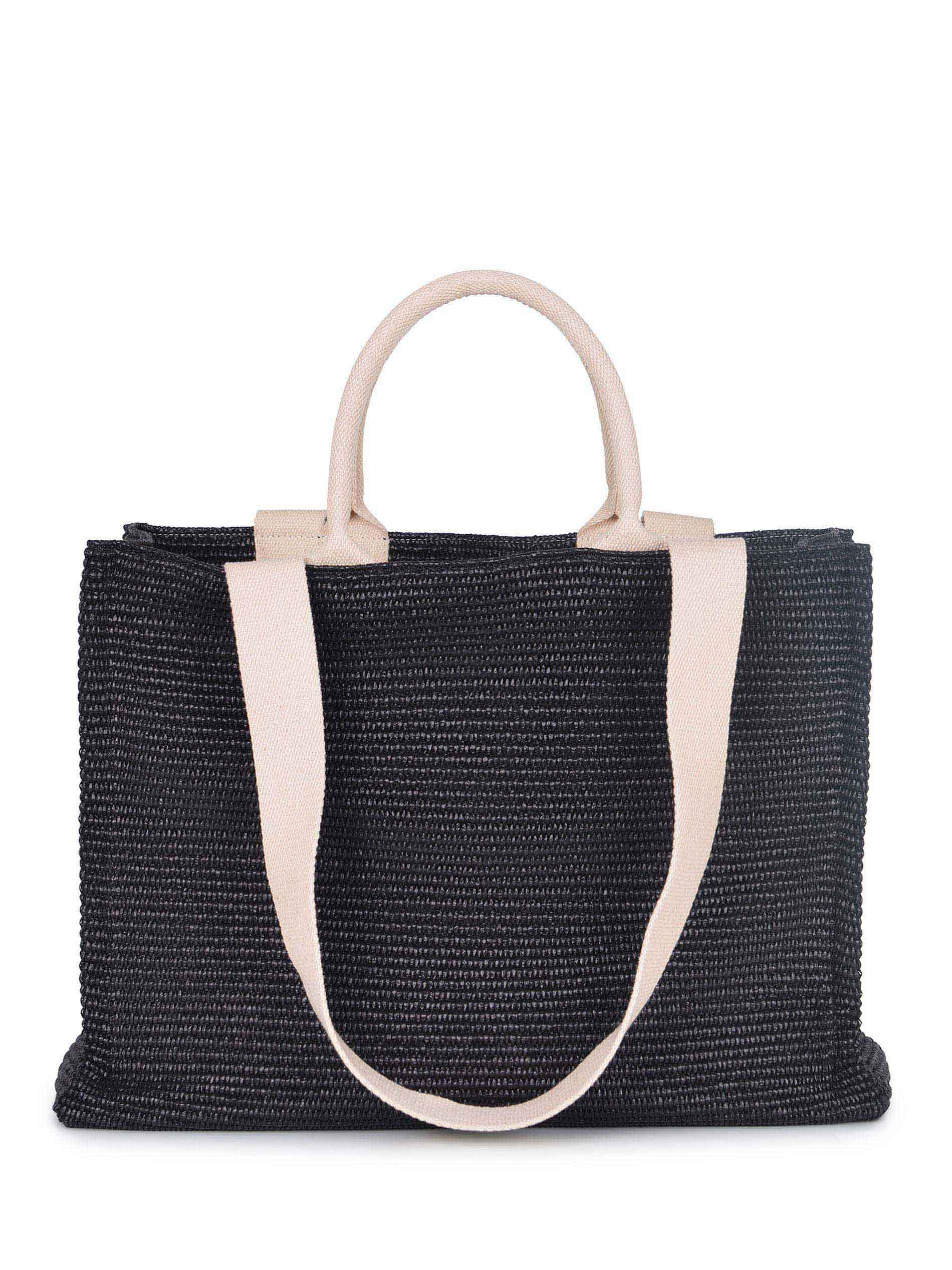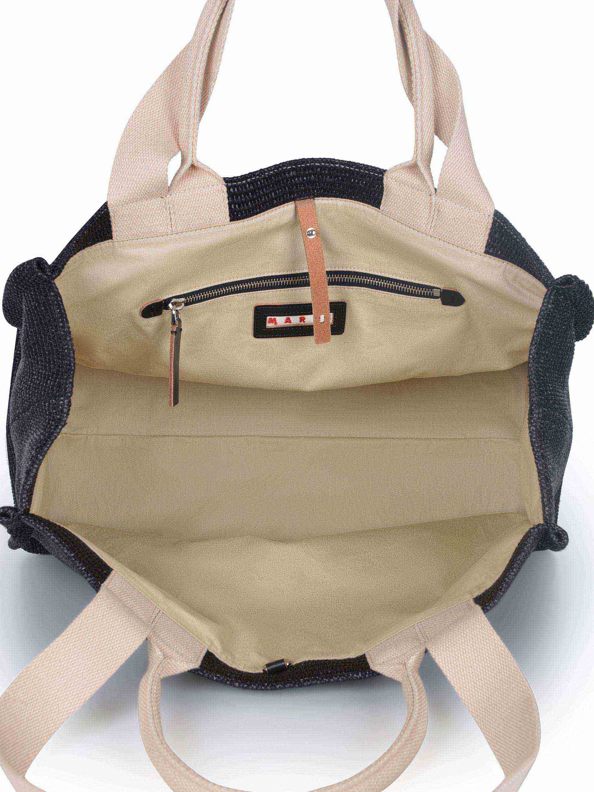 Borsa shopping Marni realizzata in rafia di colore Nero.