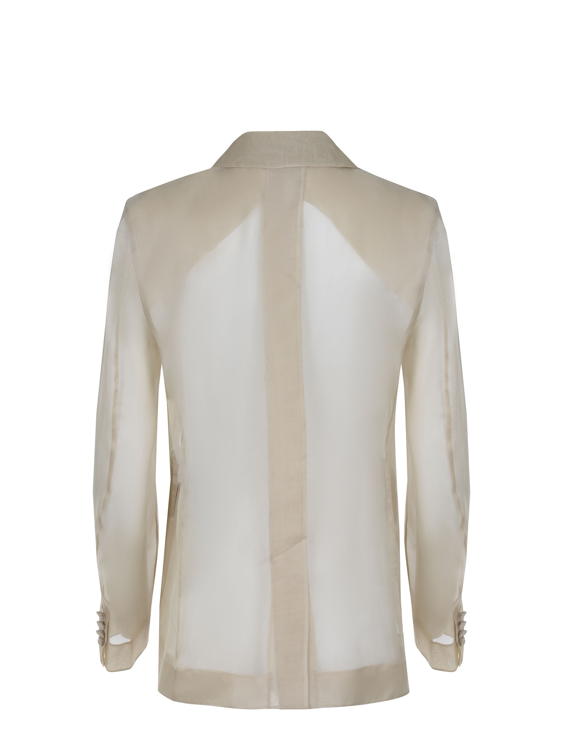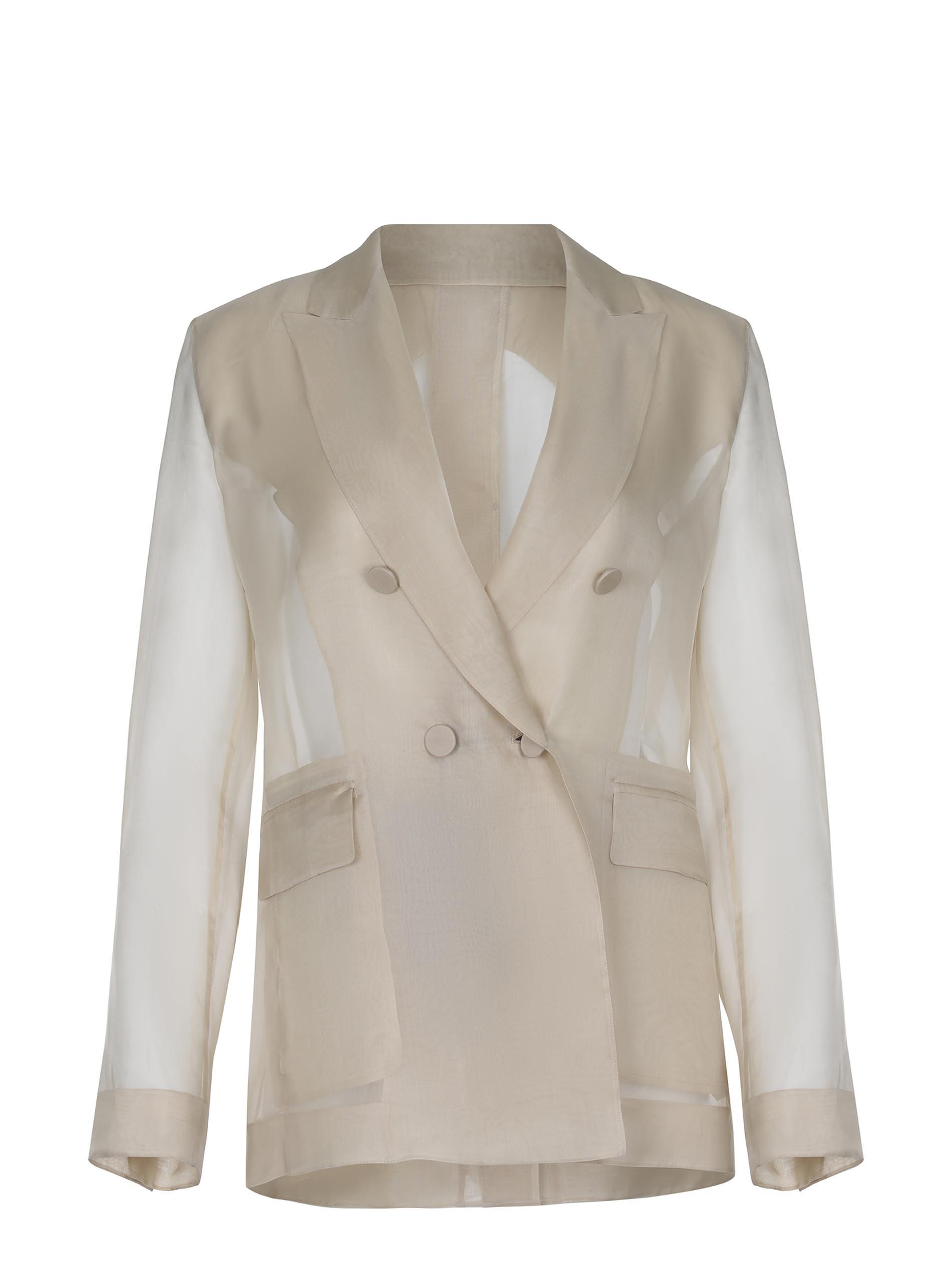 Blazer Max Mara "Mxeslogan" realizzato in organza di seta di colore Sabbia.
