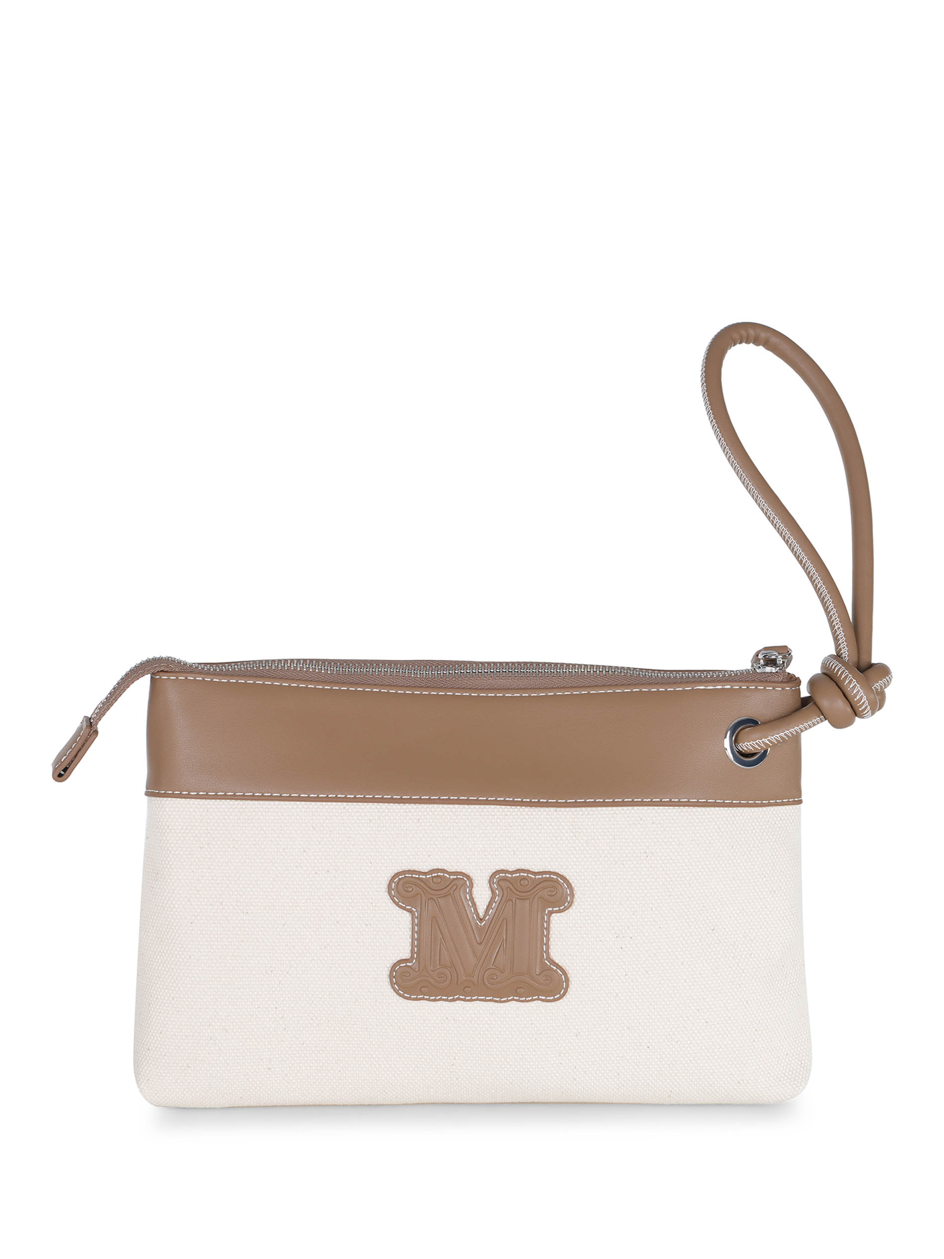 Pochette Max Mara "Frisia" realizzata in canvas di colore Crema.