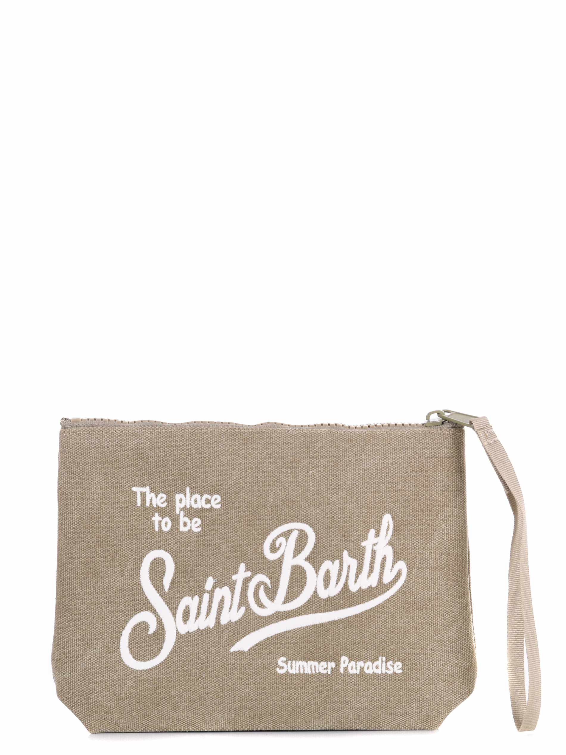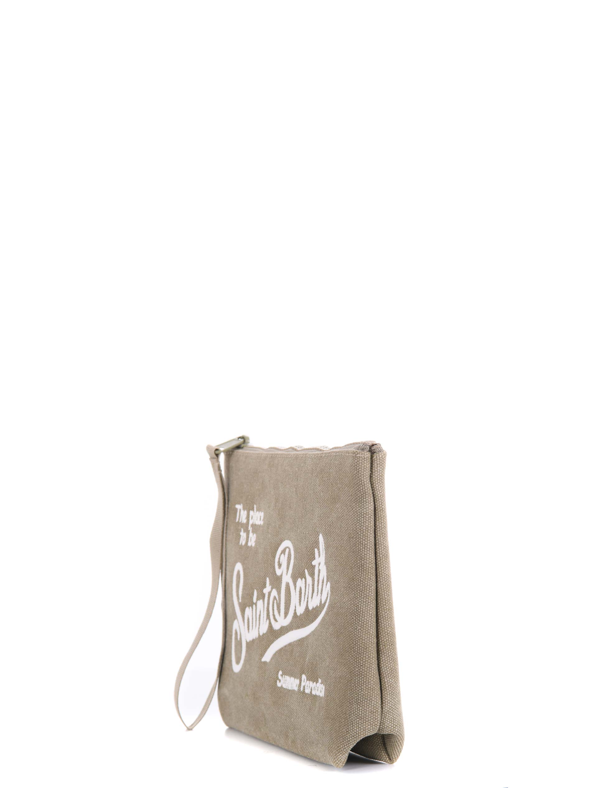 Pochette MC2 Saint Barth in canvas color Cachi. Manico in nylon. Chiusura con zip. Interno sfoderato. Logo ricamato su entrambi i lati
