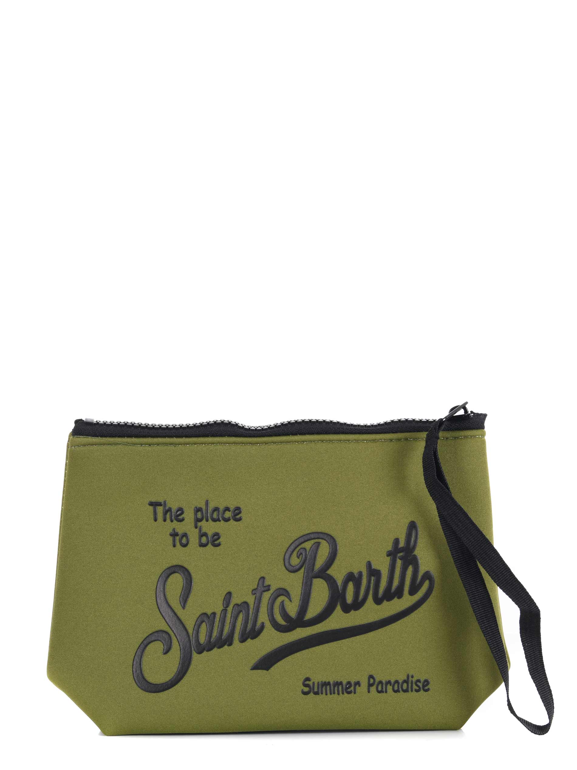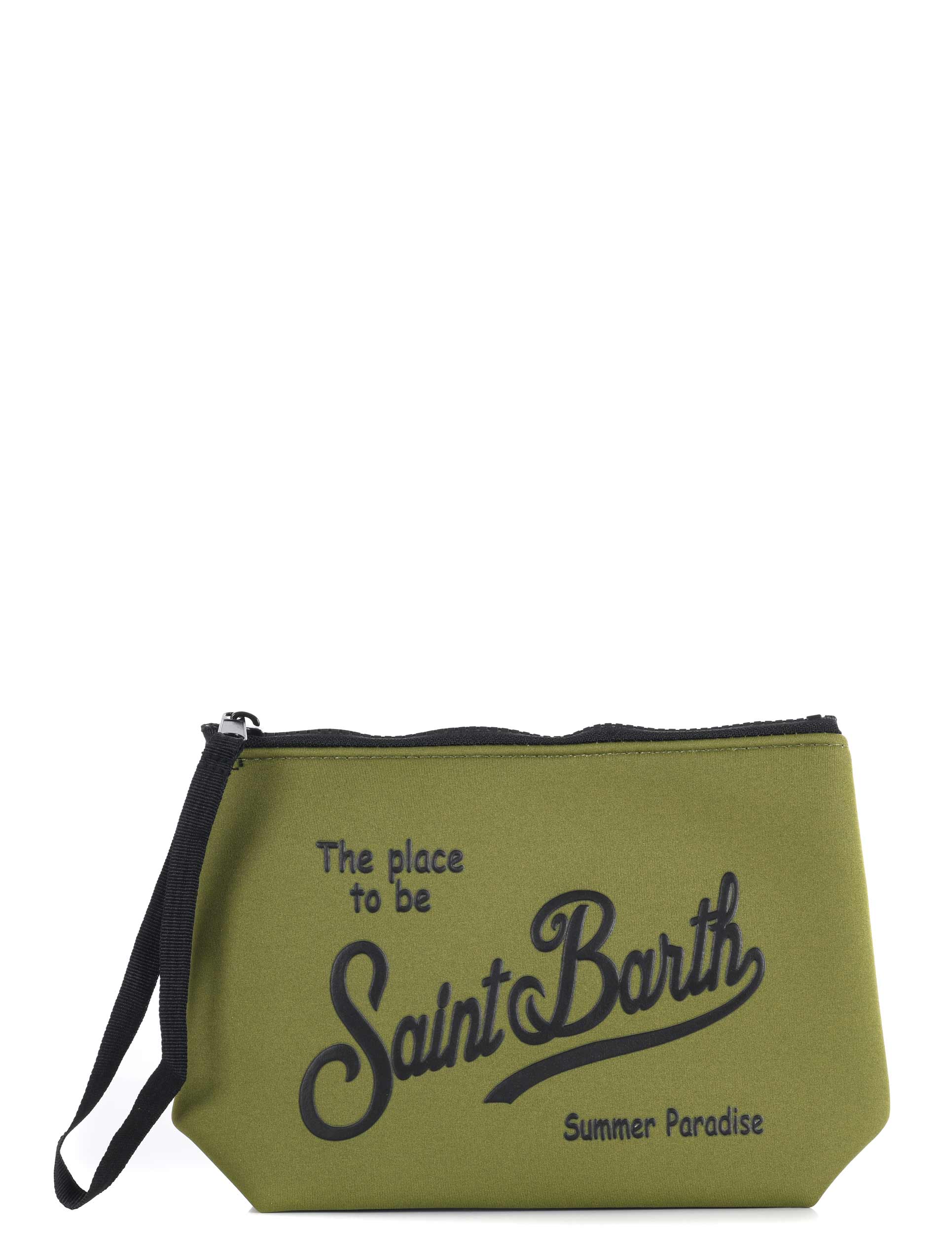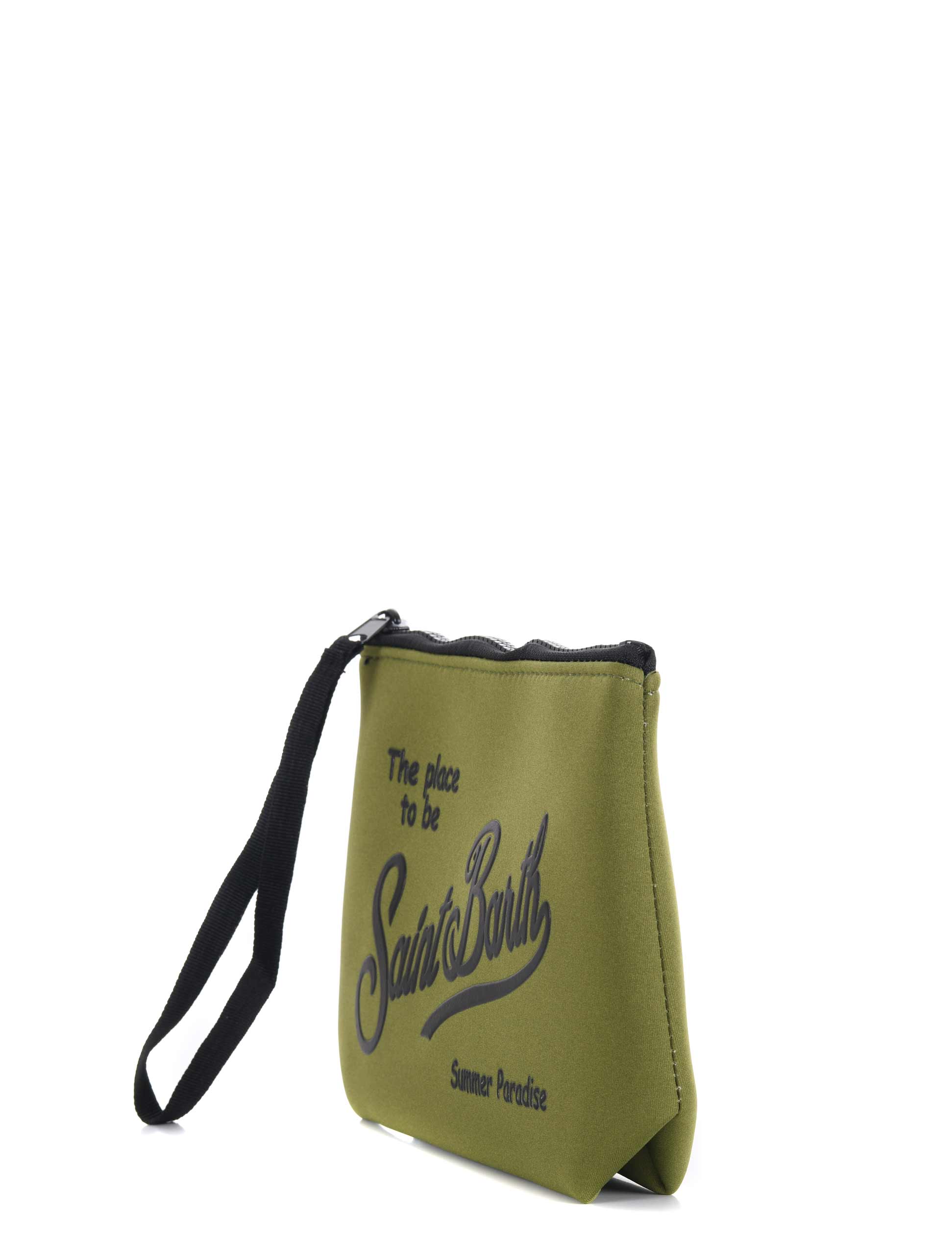 Pochette MC2 Saint Barth in neoprene Verde militare. Manico in nylon. Chiusura con zip. Interno sfoderato. Logo su entrambi i lati