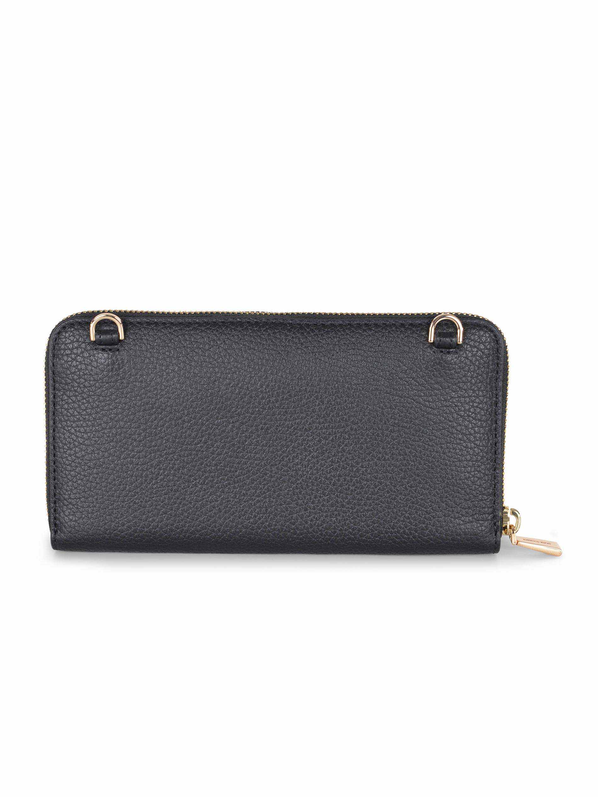 Scomparto principale con tasca a parete con zip e otto scomparti portacarte.