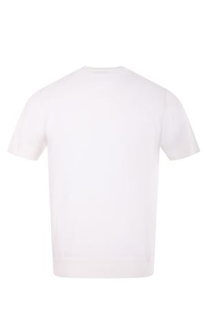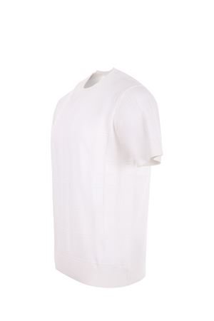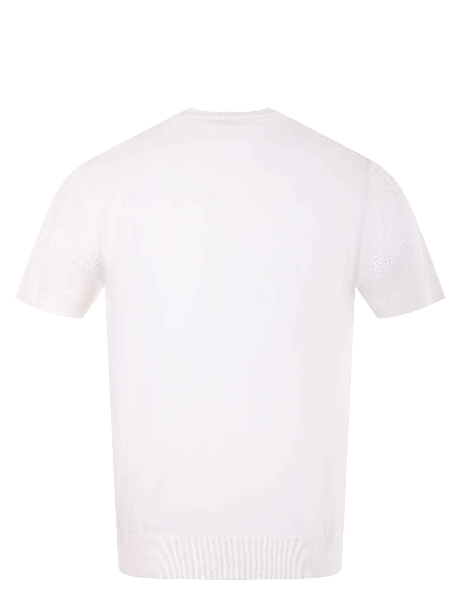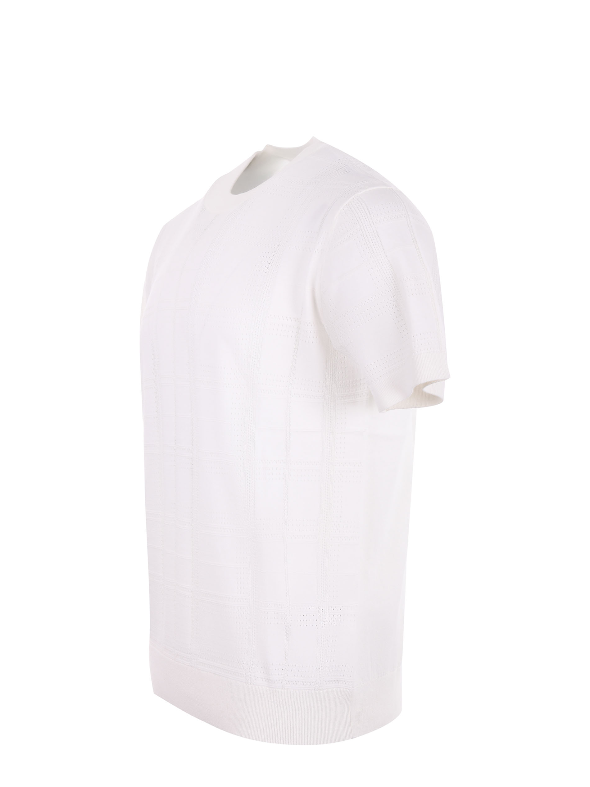 T-shirt Paolo Pecora in filo di cotone Bianco latte. Trama lavorata a quadri. Girocollo a costine. Maniche corte. Polsi e fondo a costine.