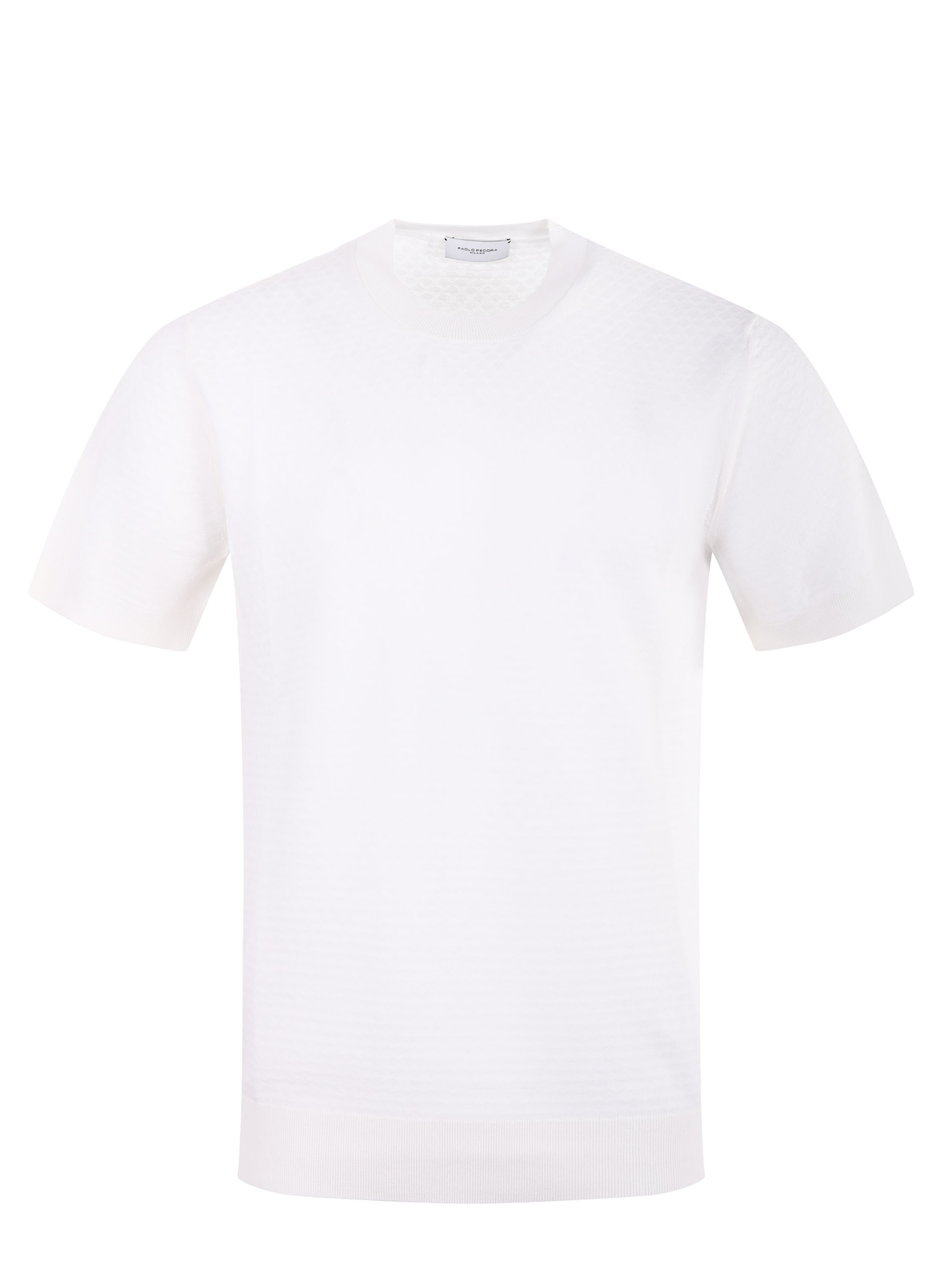 T-shirt Paolo Pecora in filo di cotone losangato Bianco. Girocollo. Maniche corte.