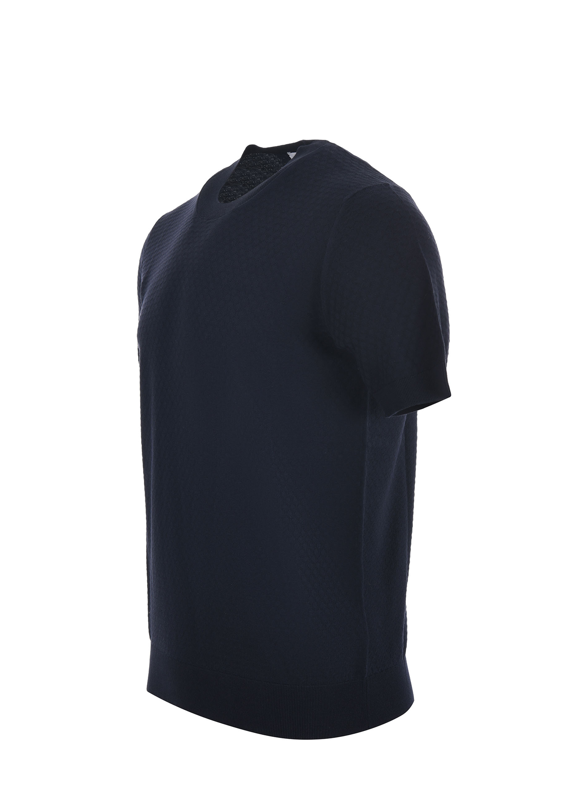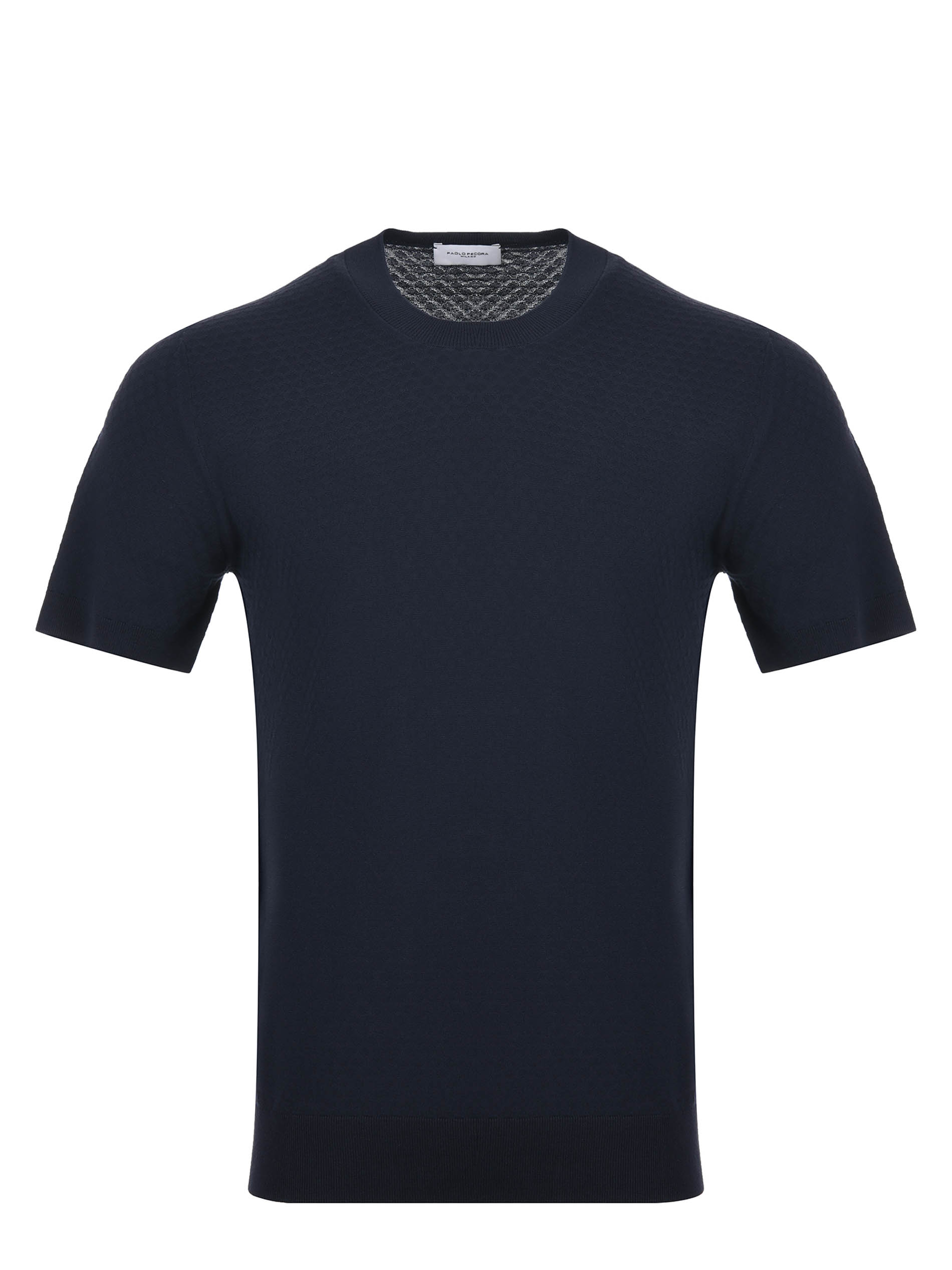 T-shirt Paolo Pecora in filo di cotone losangato Blu scuro. Girocollo. Maniche corte.