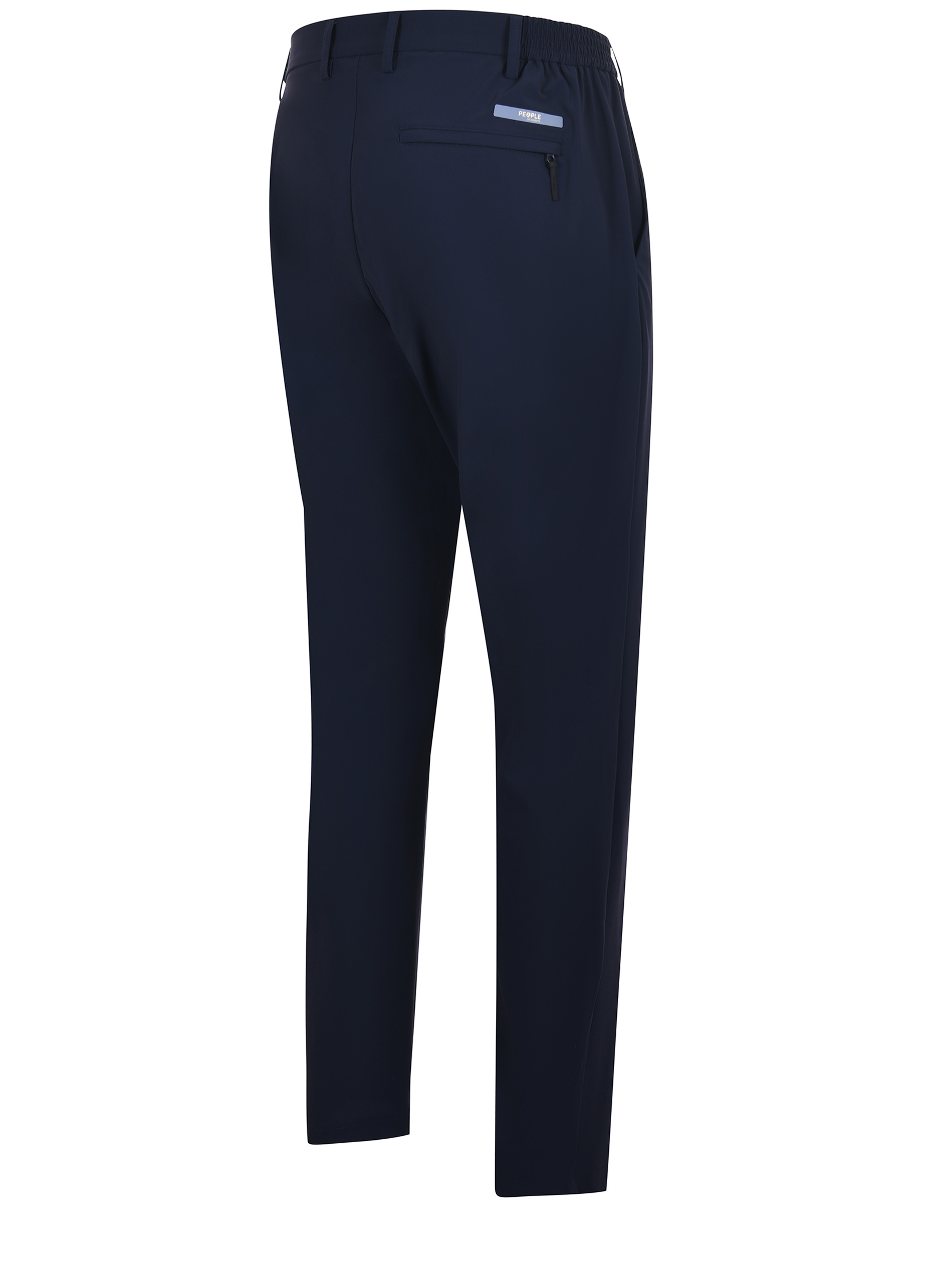 Pantaloni People of Shibuya in jersey punto milano Blu scuro. Elastico in vita. Pinces frontali. Tasche america. Tasca posteriore a filo. Passanti per cintura. Chiusura con zip e gancio.