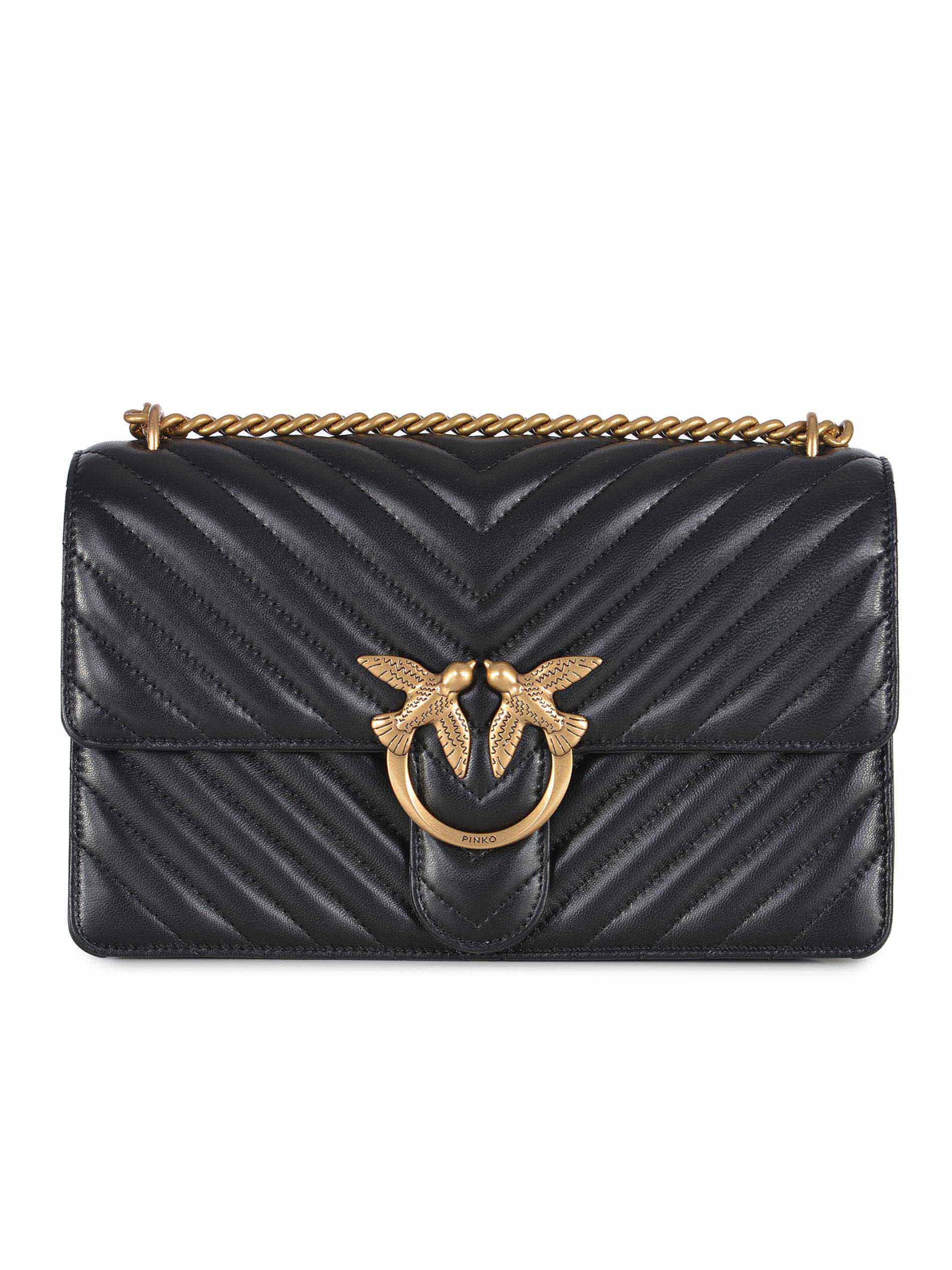 Borsa Pinko "Mini Love One Chevron " realizzata in nappa di colore Nero. Motivo chevron.
