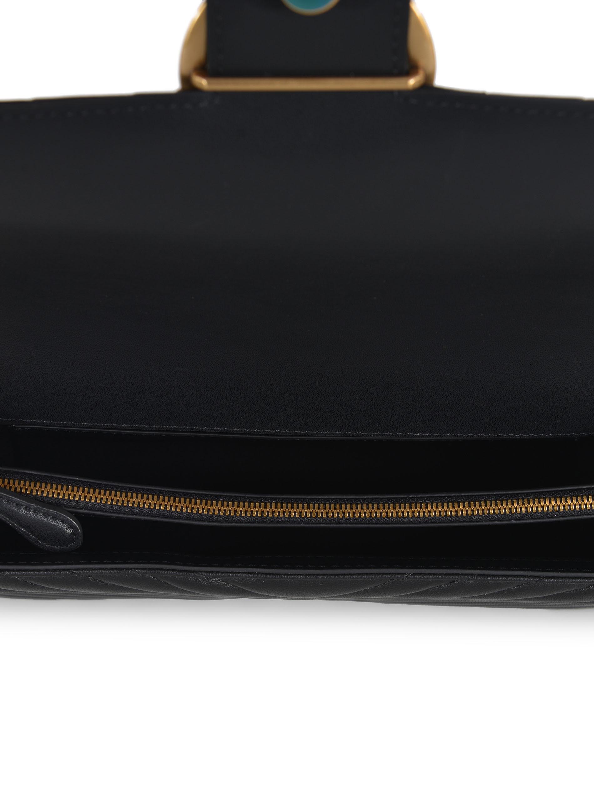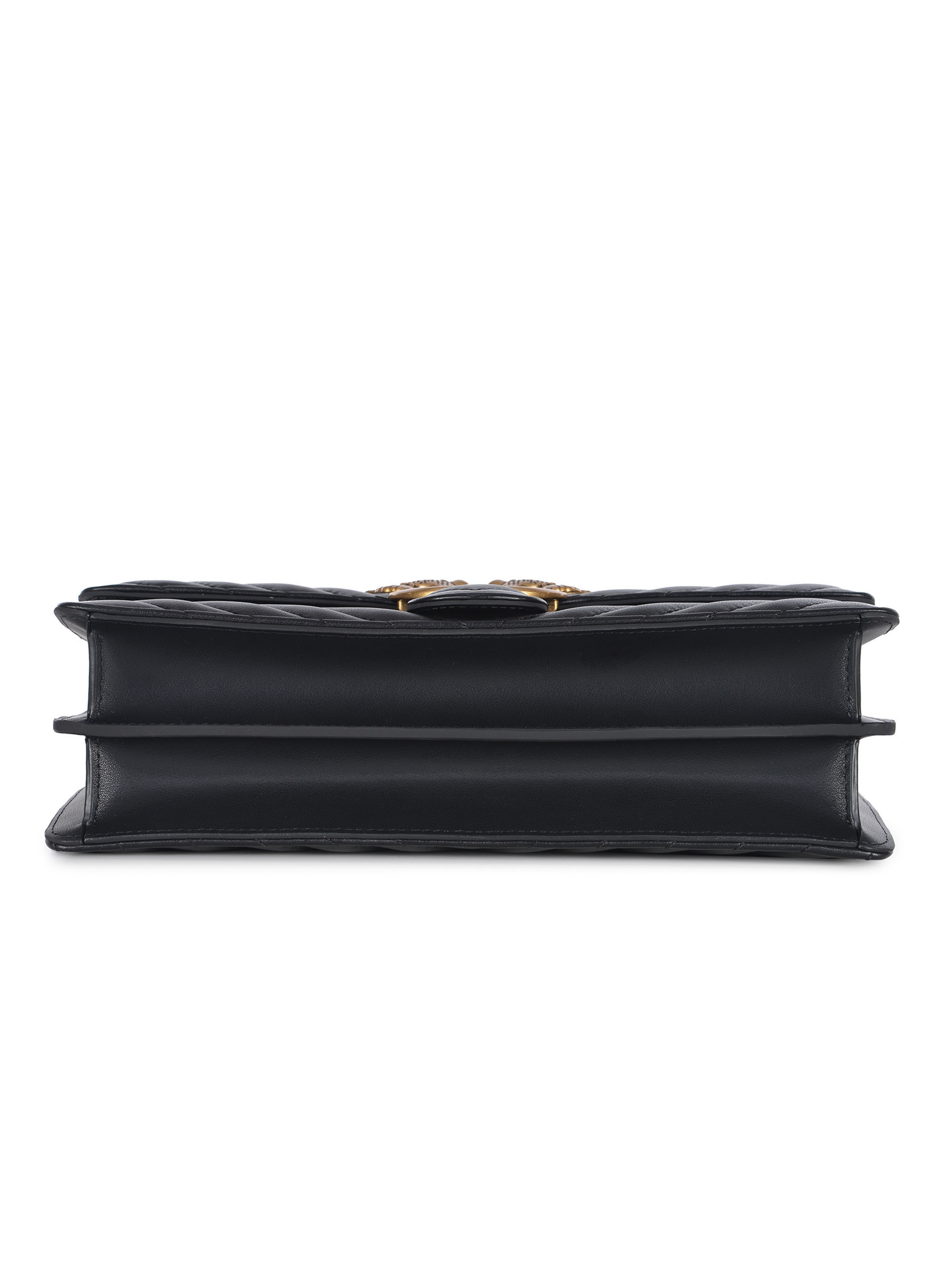 Chiusura con iconica fibbia "Love Birds Diamond Cut" in metallo Dorato, lettering "Pinko" inciso. Interno foderato in microfibra. Tasca a parete.